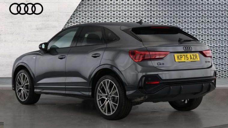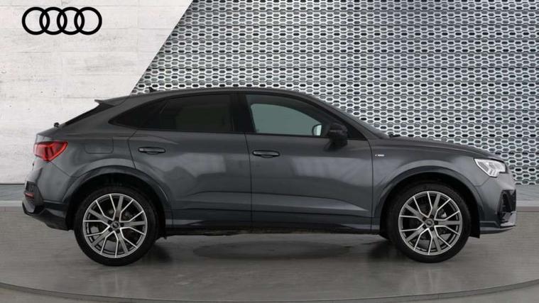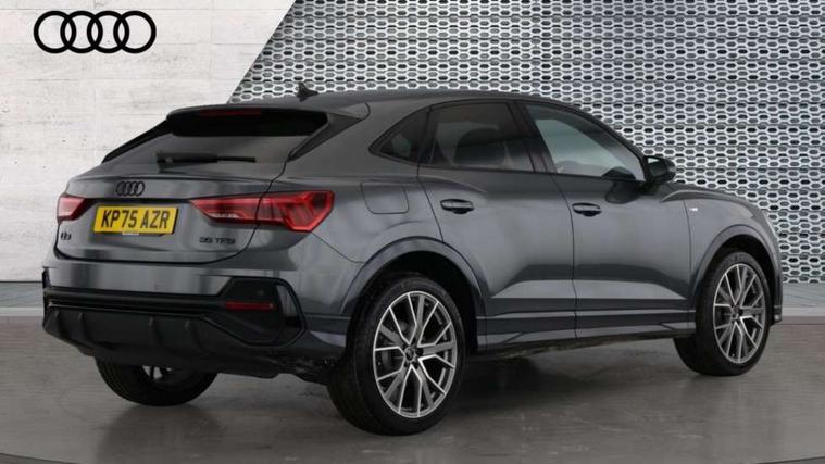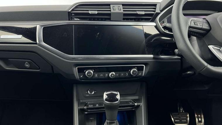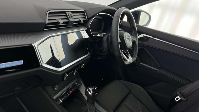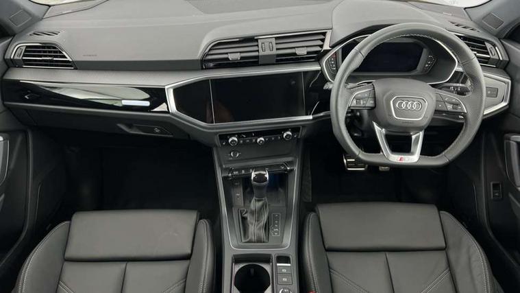 Audi connect safety and service, Audi drive select, Audi lane departure warning, Audi Virtual Cockpit - 10.25" display, Bluetooth interface, Camera based traffic sign recognition, Distraction and Fatigue warning, Legal emergency call, MMI Navigation Plus with high resolution 10.1 inch touchscreen colour display, Power operated tailgate, Progressive steering, Service interval indicator, Smartphone interface includes wireless Apple carplay/Android Auto, Start stop system with recuperation, Voice control system with natural language interaction, Sports suspension, 2 USB-C ports with charge and data functions, 6 passive loudspeakers, DAB digital radio module, Acoustic windscreen, Audi Beam uses LEDs to project the Audi logo onto the ground as you exit your Q3, Auto dimming door mirrors, Auto dimming frameless rear view mirror, Electrically folding, adjustable and heated door mirrors with integrated LED side indicators and kerb view function for passenger side, Front and rear electric windows, Front fog lights, Front underbody protection in manhattan grey paint finish, High gloss black finish B and C pillars, Honeycomb design radiator grille in matt anthracite black, LED Dynamic rear indicators, LED headlights with LED daytime running lights, LED rear lights, LED third brake light, Privacy glass dark tinted rear and rear-side windows (from B-pillar backwards), Rain and light sensors, Rear diffuser grille in grained matt black, Rear diffuser strip in matt anthracite black, Rear side wing doors, Rear underbody protection in matt black, Rear wiper, S line front and rear bumpers and side skirts in contrasting Manhattan grey paint finish, Variable front intermittent wipers, 12V socket in rear centre console, 3 seat bench in 2nd row, 40:20:40 folding with manual adjustment for 60:40 forwards/backwards position and backrest angle, Adjustable rear seat bench/backrest with centre armrest and cupholder, Black carpet mats, Black cloth headlining, Dual zone electronic climate control, Electric lumbar support, Front and rear black floor mats with contrast stitching in rock grey, Front and rear headrests, Front centre armrest, Height and reach adjustable steering wheel, Illuminated door sill trims with S logo, ISOFIX child seat mounting for front passenger with airbag deactivation and outer rear seat including top tether attachment point for outer rear seats, Luggage compartment sill protection in stainless steel, Manual front seats with height adjustment, Perforated leather gearknob, Single front passenger seat, Stainless steel pedals, Twin leather upholstery with front sport seats + S embossing, Black styling pack - Q3, Non smoking pack - Q3, 3x3 point rear seatbelts, 6 airbags - Driver, front passenger, curtain and side windows, Audi pre-sense front with pedestrain and cyclist recognition, Electrically operated child locks on rear doors, Electromechanical parking brake, Electronic stabilisation control including ABS, ASR and EDL, Front seatbelt reminder, Hill descent control, Hill hold assist, Pre sense basic, Seatbelt monitoring, Tyre pressure warning, Warning triangle and first aid kit, Anti theft wheel bolts, Immobiliser, Remote central locking, Thatcham approved category 1 anti theft alarm, Aluminium look interior elements, Detail dashboard around MMI touch colour display in glass look, black with surround in aluminium look, Leatherette door armrest, Piano black inlay,