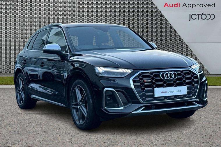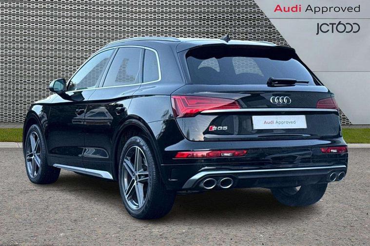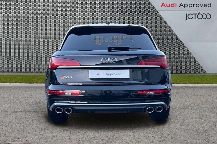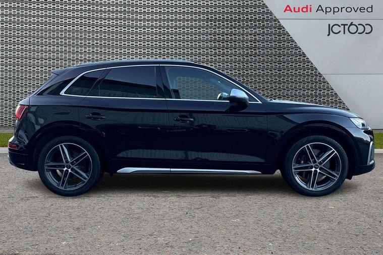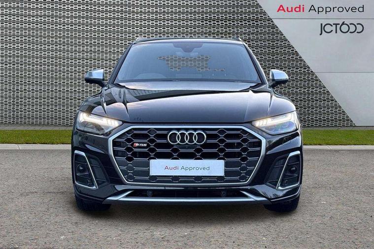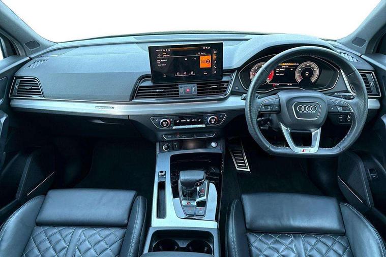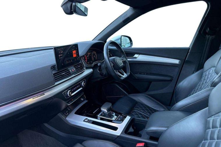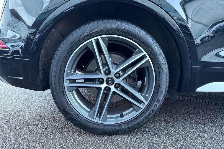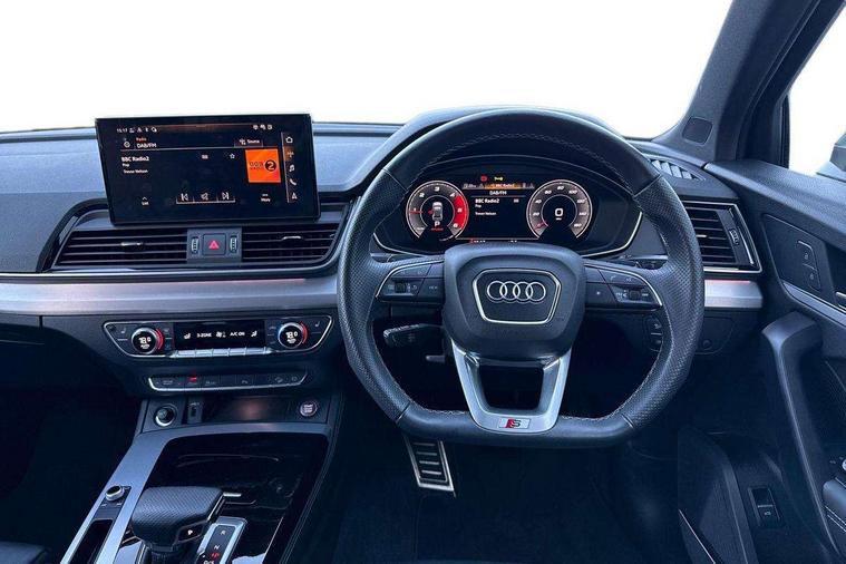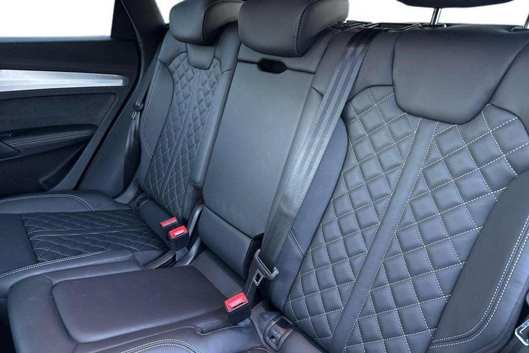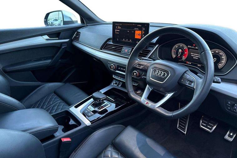 Acoustic front and rear parking sensor, Audi connect safety and service (e-call), Audi connect with Amazon Alexa Integration, Audi drive select, Audi virtual cockpit plus with 12.3" screen and three different layout designs, Audi wireless smartphone interface, Automatic start-stop system with coasting functionality and efficiency programme, Bluetooth interface, Electro - mechanical power assisted steering, MMI navigation plus with 10.1" touch screen, Power tailgate, Reversing camera, Service interval indicator, Voice control system with Audi hotword activation "Hey Audi", 70 litre fuel tank and 24 litre AdBlue tank, Diesel particulate filter, Quattro on demand, S sport suspension with damper control, 2 x USB charging port with aux input socket, Audi sound system, DAB Digital radio, Acoustic windscreen, Aluminium roof rails, Audi beam, Audi beam with Audi rings logo, Audi matrix LED headlights with dynamic front and rear indicators, Auto dimming door mirrors, Auto dimming frameless rear view mirror, Automatic headlight adjustment, Automatic headlights and windscreen wipers, Body colour bumpers, Body colour rear diffuser with matt aluminium silver surrounds, Body colour underbody protection, Chrome plated exhaust trims, Daytime running lights, Door sills in Selenite silver, Electric adjustable/heated/folding door mirrors, Front air inlet surrounds in aluminium, Front and rear electric windows, Front radiator grille in honeycomb design, Headlight washers, High gloss black B pillar trims and triangular rear door trim, High level LED brake light, Rear chrome trim strip below lights, Rear privacy glass and rear side windows, Rear side wing doors, Rear wiper, Roof bars, S front and rear bumpers, S Line rear spoiler, S Line side skirts, S specific rear diffuser, 3 rear headrests, 4 way electric lumbar support for driver and front passenger, 40:20:40 split folding 3 rear bench seat in 2nd row with rear centre armrest, Black cloth headlining, Comfort front centre armrest, Contrast stitching on seats, steering wheel and gear lever gaiter, Deluxe 3 zone electronic climate control, Fine Nappa leather upholstery with diamond pattern contrast stitching + front sport seats with S embossed logo, Front/rear floor mats, Fully electrically adjustable seats, Gear lever in black leather, Heated front seats, Height adjustable front head restraints, Height/reach adjustable steering column, Illuminated door sill trims with S logo, Luggage compartment cover, Massage function for front seats, Rear seat bench plus-adjust for forwards/backwards position/backrest angle, cupholders in the armrest, load through hatch and remote backrest release, Removable luggage compartment floor, Single front passenger seat, Stainless steel pedals, Sunvisors with vanity mirrors, Extended interior upholstery pack - Q5, High gloss pack - Q5, LED interior light pack - Q5, 3 point seatbelts on all seats, 6 airbags - Driver, front passenger, curtain and side airbags, Electrically operated child locks on rear doors, Electromechanical parking brake, Electronic stabilisation control including ABS, ASR and EDL, First aid kit with warning triangle and vests, Front passenger airbag deactivation, Hill descent control, Hill hold assist, ISOFIX child seat mounting for front passenger seat and ISOFIX child seat mounting with Top Tether for outer rear seats, Multi collision brake assist, Pop-up bonnet for pedestrian protection, Pre sense city, Seat belt force limiter, Seatbelt monitoring, Tyre pressure warning, Anti theft alarm, Anti-theft wheel bolts, Keyless Go access/ignition system, Remote central locking, Air vents inserts and centre console in gloss black, 20'' 5 twin star spoke design alloy wheels in gloss graphite grey,