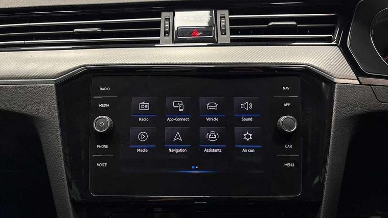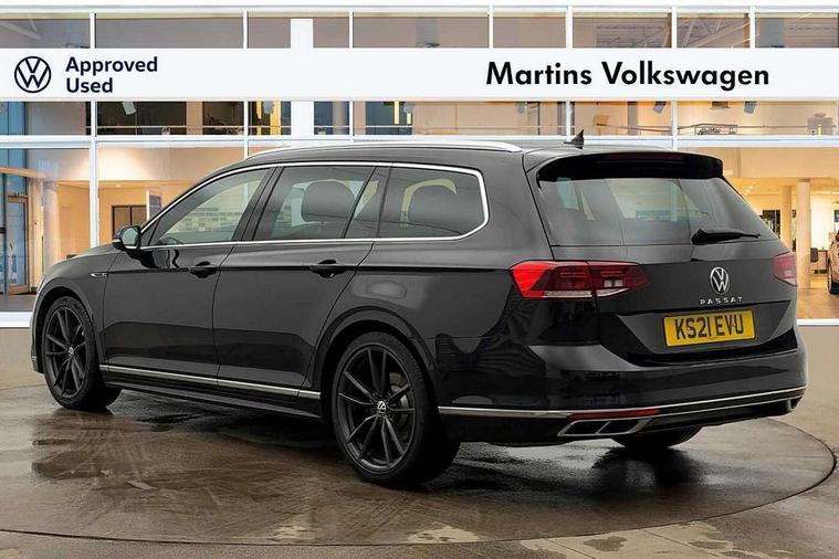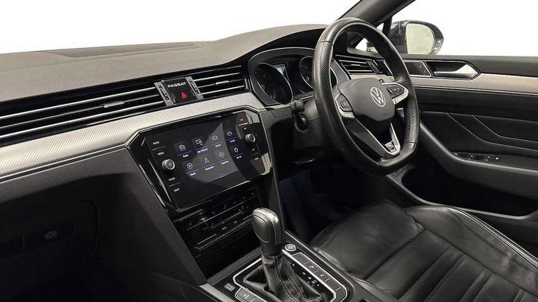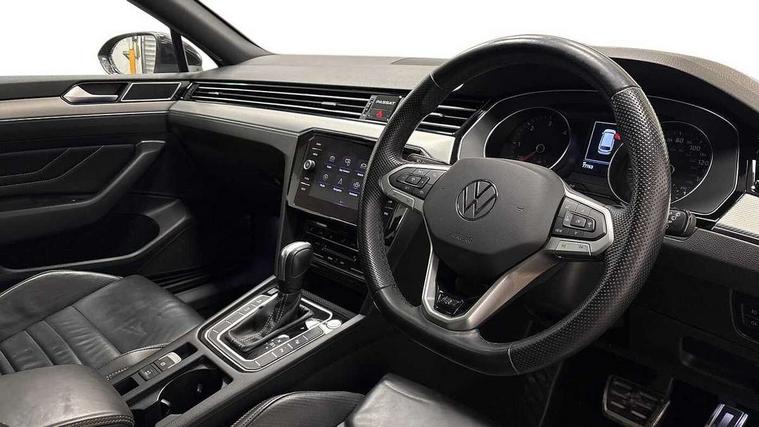 Adaptive cruise control including Front Assist, radar sensor controlled distance monitoring system, City emergency braking system, Driver alert system, Driver profile selection, Exterior temperature gauge with frost alarm, Lane assist, Low washer fluid warning light, Multifunction computer includes visual gear, One touch indicator turn signal, Proactive occupant protection, Security and service including e-call, Speed sensitive power steering, Speedo and rev counter, electronic odometer, trip, service interval display and fuel gauge, Start/Stop function, Traffic jam assist, Voice activation, Warning buzzer and light for front seatbelts unfastened, Battery regeneration during braking, Diesel particulate filter, Misfuel prevention device, Aerial for radio integrated into rear windscreen, DAB Digital radio receiver, Auto dimming interior rear view mirror, Automatic headlights with dusk sensor, Automatic leaving home and manual coming home lighting functions, Black radiator grille with chrome louvres, Body colour bumpers, Body colour door handles, Body coloured door mirrors with intergrated indicators, Chrome side window surrounds, Electric heated windscreen washer jets, Front and rear electric windows, Fully galvanised body, Gloss black finish on B pillar, Heated rear window, High level 3rd brake light, LED rear lights, LED rear number plate lights, Plastic load sill protection, Rain sensor, Rear tinted glass from B pillar backwards, approx 65% tinted, Rear window wash/wipe, Remote electrically adjustable and foldable heated door mirrors including automatic dimming function on drivers side door mirror puddle lights, Silver anodised roof rails, Warning lights for open tailgate and doors, White instrument lighting, Windscreen wipers/ intermittent wipe + 4 position delay, 12V socket in front centre console, 12V socket in luggage compartment, 40:20:40 split folding rear seats with backrest, Carbon optic side bolsters, Climate control - 3 Zone electronic air conditioning with automatic air recirculation, Driver's door storage compartment for 1.0 litre bottle, Extending luggage compartment cover with convenience opening, stowable, Front and rear interior lighting with delay and dimming function, Front centre armrest with storage compartment and two rear air vents, Front cupholders x2 with covers, Front passenger storage compartment for 1.5 litre bottle, Front seats with embroidered R Line logo on backrest, Height adjustable and removable variable boot floor, Height adjustable rear seat head restraints (x3), Height/reach adjust steering wheel, Illuminated vanity mirrors, Isofix child seat preparation, outer rear seats, Load lashing points x 4 in luggage compartment, Load through provision, Lockable, illuminated, cooled glovebox, Luggage compartment lighting, Nappa leather upholstery, Rear seat centre armrest with storage compartment, Stainless steel pedals, Storage compartment in rear doors, Storage compartment in roof console with cover, Unique R Line door sill protectors, Unique R Line front and rear carpet mats, Easy open package with full electric tailgate/ boot - Passat (Estate), R line styling pack - Passat (Estate), 3x3 point rear seatbelts, ABS (Anti locking brake system) includes BAS (Brake assist) and EBD (Electronic brake pressure distribution), Automatic post collision braking, Disc brakes front and rear, Door open warning reflectors, Driver/Front Passenger airbags, Drivers and front passengers safety optimised head restraints, longitudinal and height adjustable, Drivers knee airbag, Electronic parking brake with auto hold, First aid kit, Front and rear passenger curtain airbags, Front passenger airbag deactivation switch, Front side impact airbag, Height adjustable front 3 point seatbelts + pretensioners, Hill hold function, Pre crash preventive occupant protection, Rear seat side impact airbags, Rigid safety cell with front and rear crumple zones, Volkswagen roadside assistance, Warning light for rear seat belts if unfastened, Alarm with interior protection and deactivation via infotainment system, Electronic engine immobiliser, Chrome air vent and instrument surround, Unique R Line dark diamond flag decorative inserts in dash and door panels, Tyre mobility kit,
