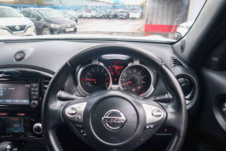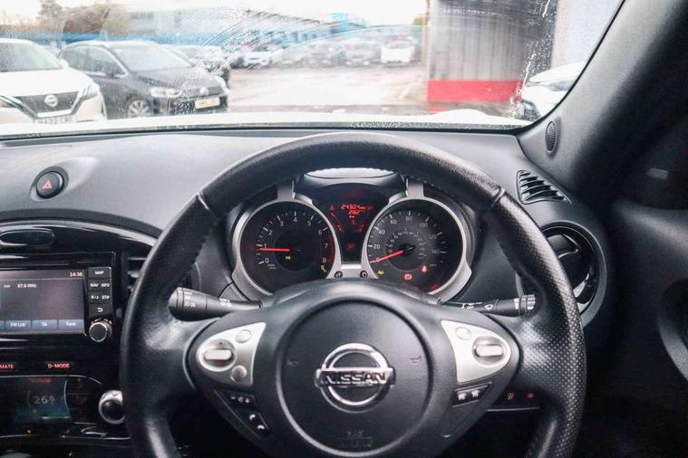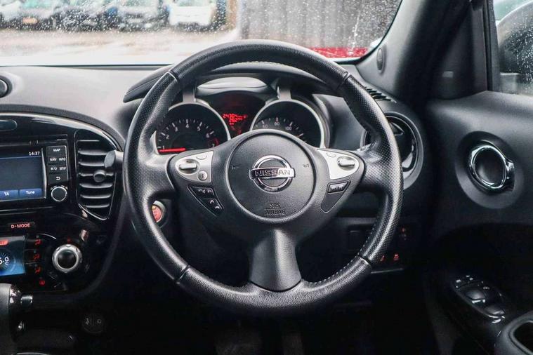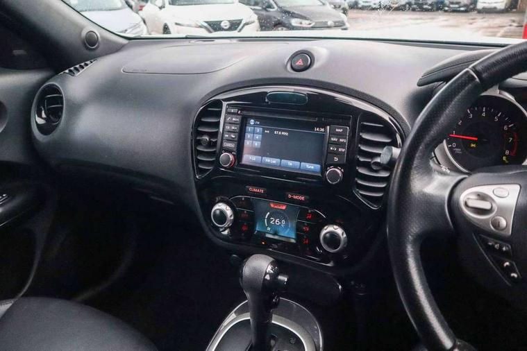 Around View Monitor, Blind spot monitoring, Bluetooth system, Colour rear view camera, Cruise control + speed limiter, Electric speed sensitive power steering, Lane departure warning system, Moving object detection, Nissan connect sat nav system, Push button starter, Service interval indicator, Trip computer, 6 speakers, Aux input, DAB Digital radio, Steering wheel mounted audio controls, Stereo radio/CD player and MP3 facility, USB port, 2 speed wipers+variable intermittent wipe, Automatic headlights, Body colour bumpers, Body colour door handles, Dusk sensor, Electric door mirrors, Electric folding door mirrors, Electric front/rear windows, Front fog lights, Heated door mirrors, LED daytime running lights, Privacy glass, Rain sensor, Rear wiper, 12V socket, 60/40 split folding rear seat, Climate control, Front armrest, Front cupholders x 2, Front door pockets with bottle holders, Front head restraints, Front seat belt pre-tensioners with load limiters, Gear shift indicator, Glovebox, Heated front seats, Height adjustable driver's seat, Internal chrome door handles, Isofix child seat preparation, Leather steering wheel and gear knob, Leather upholstery, Luggage area under floor storage box, Map reading lamp, Passenger seat back pocket, Pollen filter, Rear headrests, Rear tonneau cover integrated into tailgate, Sports seats, Steering wheel rake adjustment, ABS + EBD + EBA, Child locks on rear doors, Driver and passenger airbags, Driver and passenger side airbags, ESP + traction control, Front and rear curtain airbags, Height adjustable front seatbelts, Passenger airbag deactivate switch, Three 3 point rear seatbelts, Tyre pressure monitoring system, VDC Dynamic Vehicle Control, Warning triangle and first aid kit, Alarm, Immobiliser, Intelligent Key, Remote central locking, 17" Urban alloy wheels, Tyre repair kit,