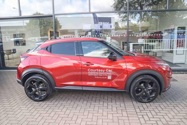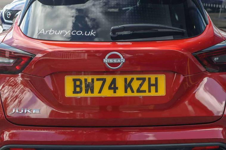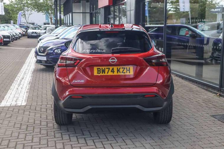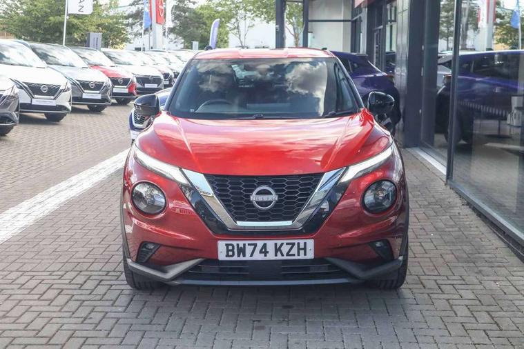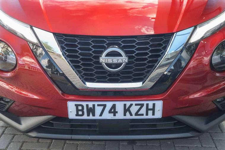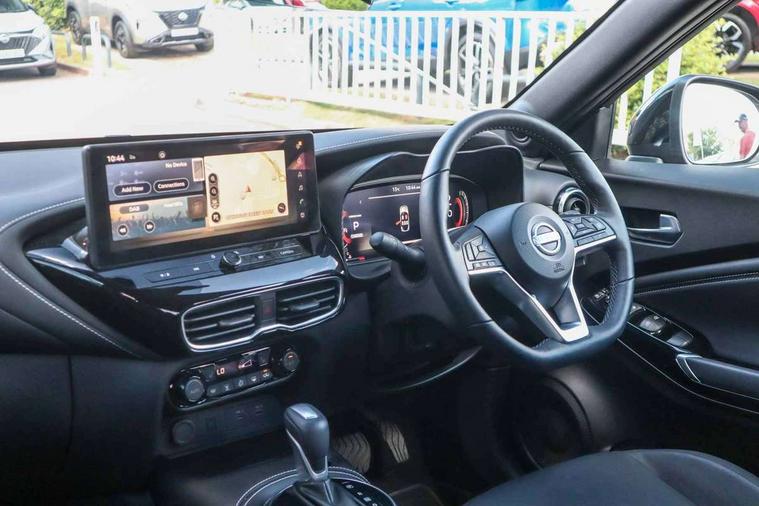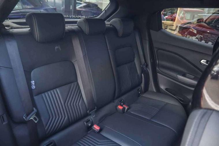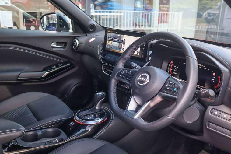12.3" full colour TFT screen combimeter, Drive modes select (Eco, normal and sport), Emergency and breakdown call, Front parking sensor, Idle start/stop system, Intelligent driver alert system, Intelligent lane intervention, Lane departure warning system, Nissan connect 12.3" touch screen entertainment system, Nissan connect nav with TomTom traffic, Nissan connect services, Outside temperature sensor, Power Steering, Rear parking sensor, Stop/start button, Traffic sign recognition, Trip computer, Voice recognition, WiFi connectivity, Wireless Apple CarPlay and Google Android auto, Wireless Smartphone charger, 10 Bose speakers 6 speakers and 2 headrest speakers for driver/passenger seats, 2 X Rear console USB port, Bluetooth system, USB, Aux-in and 12V socket, Bose personal sound stage control, DAB Digital radio, Auto dimming frameless rear view mirror, Automatic hazard signal with emergency stop signal, Body colour door handles, Electrically adjustable door mirrors with integrated indicators, Follow me home headlights, Front and rear electric window with one touch driver window, Heated and auto folding door mirrors, High beam assist, LED 3rd brake light, LED daytime running lights, LED front fog lights, LED headlamps, LED rear fog lamp, LED rear lamps, One touch passenger window, Rain sensor windscreen wipers, Rear privacy glass, Rear side wing doors, Rear wiper, Roof spoiler, Shark fin roof antenna in solid Black, Three blink turn signal, 3 height adjustable rear headrests, 3 seat bench in 2nd row, 60/40 split folding rear seat, Automatic climate control, Card holder on driver sunvisor, Door ambient lighting, Driver seat back pocket, Driver side rear coat hanger, Driver/passenger sunvisors and vanity mirrors, Front and rear cabin lights, Front armrest, Front door pockets with bottle holders, Front head restraints, Front/rear passenger grab handles, Gear console ambient circle lighting, Height adjustable driver's seat, Internal chrome door handles, Leather gearshift knob, Luggage board, Luggage space lighting, Monoform sporty seats, Multifunction steering wheel, Passenger seat back pocket, Rear door bottle holders, Single front passenger seat, Smooth synthetic leather steering wheel, Steering wheel mounted gearshift paddles, Synthetic leather kneepad, Synthetic leather upholstery, Telescopic steering wheel adjustment, Two cupholders in front centre console, Two rear isofix child seat anchorage points with top tether, Welcome light and console tray ambient lighting, Heat pack with height adjustable passenger seats - Juke, ProPilot pack - Juke Auto, ABS with EBD and brake assist, Active ride control, Active Trace Control, Driver and passenger airbags, Driver and passenger side airbags, Electric handbrake with auto hold function, Electronic Stability Programme (ESP), Front and rear curtain airbags, Height adjustable seatbelts, Hill start assist, Intelligent emergency braking with pedestrian and cyclist recognition, Rear door child safety locks, Seatbelt reminder for driver/front passenger and rear seats, Three 3 point rear seatbelts, Traction control, Tyre pressure monitoring system, VDC Dynamic Vehicle Control, Alarm, Immobiliser, Intelligent key and start push button with walk away lock and approach unlock functions, Remote central locking, 19" Alloy wheels, Tyre puncture repair kit,