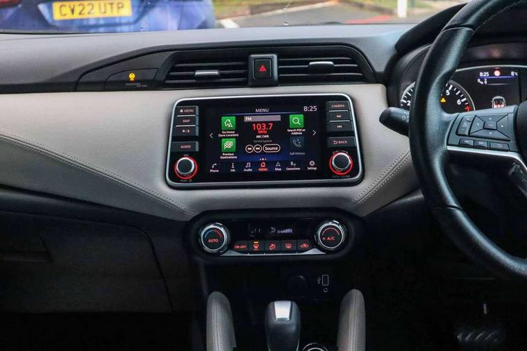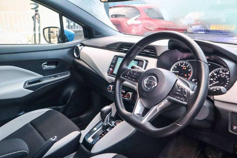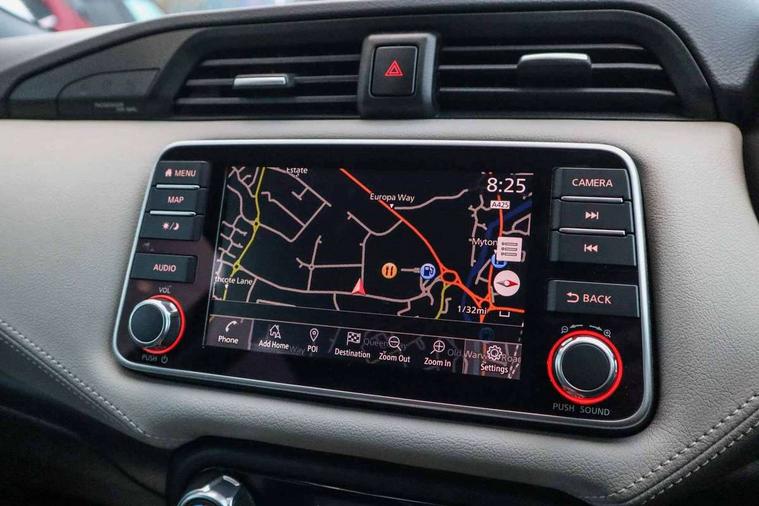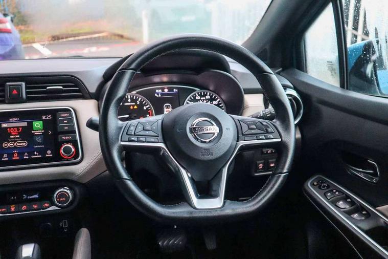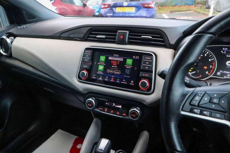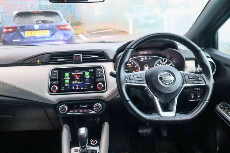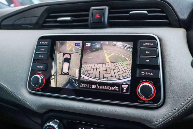 360 degree around view monitor, Adjustable speed limiter, Bluetooth system, Cruise control, Lane departure prevention, Lane departure warning system, Nissan Connect touchscreen navigation and Entertainment system, Outside temperature gauge, Power assist steering, Rear parking sensors, Rear view camera, Smartphone integration with Apple CarPlay and Android auto, Stop/start system, Traffic sign recognition, Trip computer, Audio system with MP3, BOSE sound system with 6 speakers, DAB Digital radio, USB/iPod connection, 4 pocket halogen headlights with signature finisher, Antenna, Auto dimming rear view mirror, Automatic activation of hazard warning lights, Automatic headlights, Body colour front door handles, Body coloured bumpers, Body coloured door mirrors, Concealed rear door handles, Electric folding door mirrors, Front and rear electric windows, Front fog lights, Heated door mirrors, High beam assist, High mounted stop lamp, Jacknife key type x1, LED daytime running lights, LED Headlights, Rain sensor windscreen wipers, Rear privacy glass, Rear roof spoiler, Rear wiper with reverse link, 12V power point front, 2 height adjustable rear headrests, 3 cupholders, 60/40 split folding rear seat, Automatic air conditioning, Boot compartment cover, Boot light, Chrome interior door handles, Driver's seat manual height adjust, Driver/passenger sunvisors and vanity mirrors, Front and rear door pockets with bottle holders, Front console storage box, Gear shift indicator, Height adjustable front headrests with satin sliver decoration, Illuminated electric window switch, Isofix front passenger and rear seat preparation, Leather wrapped gear shift knob, Leather wrapped parking break, Leather wrapped steering wheel, LED ambient lighting, Map reading lamp, Parcel shelf, Passenger seat back pocket, Reclining front seats, Synthetic leather front door pads, Synthetic leather instrumental panel inserts, ABS+EBD+Brake assist, Crash sensor, Driver/Front Passenger airbags, Front and rear curtain airbags, Front side airbags, Height adjustable front seatbelts with pre-tensioners and load limiters, Hill start assist, Intelligent emergency braking with pedestrian recognition, Passenger airbag deactivation system, Rear seatbelts with pre-tensioners and load limiters, Seatbelt warning, Three 3 point rear seatbelts, Tyre pressure monitoring system, Warning triangle and first aid kit, Anti-theft immobiliser, Intelligent key with push button ignition, Remote central locking, 17" Diamond cut alloy wheels, Tyre repair kit,