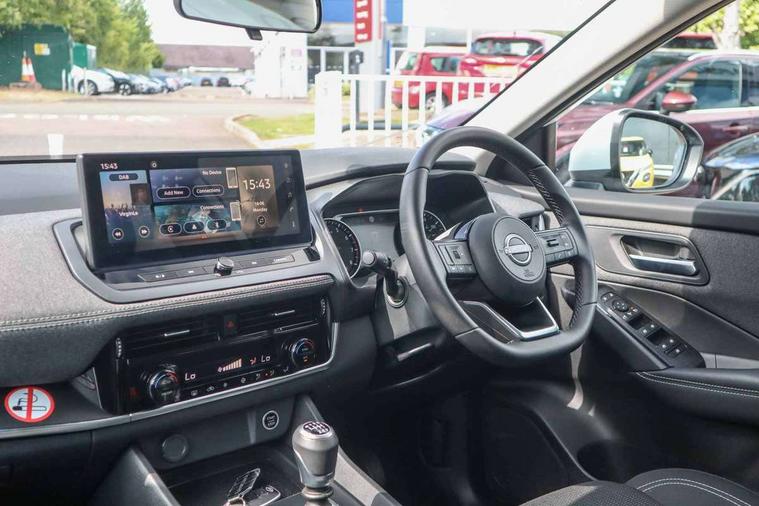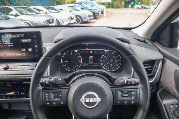 2 front USB-C ports, 7" High definition full colour TFT screen combimeter, Blind spot intervention, Blind spot warning, Drive assist custom mode, Drive modes (sport, normal, eco), Driver drowsiness and attention warning, Electric speed sensitive power steering, Emergency and breakdown call, Emergency lane keep assist, Emergency Stop Signal (ESS), Engine start/stop button, Event data recorder, Idle stop/start system, Intelligent Cruise control (ICC), Intelligent forward collision warning, Intelligent speed assist, Lane departure warning system, Nissan connect 12.3 inch touchscreen infotainment system, Outside temperature sensor, Rear cross traffic alert, Rear parking sensors, Rear view camera, Reversing detection, Wireless Apple CarPlay and wired Android Auto, Limited slip differential, 6 speakers, AM/FM audio system with DAB, Bluetooth audio streaming, Auto rear wiper when reversing, Body colour mirror caps, Body coloured door handles, Bodyside mouldings, Chrome side window finisher, Electric auto folding door mirrors, Electrically adjustable and heated door mirrors with LED turn indicator, Follow me home headlights, High beam assist, Intelligent auto headlights, LED 3rd brake light, LED daytime running lights, LED Headlights, LED rear lights, One touch front and rear electric windows with remote opening and closing, One touch passenger window, Partially body coloured bumpers, Rear roof spoiler, Rear side wing doors, Shark fin antenna, Splash free rain sensing wipers, Three blink turn signal, 3 bench rear seats in 2nd row, 3 rear headrests, 60/40 split folding rear seat bench, Chrome interior door handles, Cloth upholstery, Dark headlining, Dual zone automatic climate control with pollen filter, Front door with bottle holders, Height adjustable front headrests, Leather shift knob, Luggage space lighting, Multifunction steering wheel, Passenger seat back pocket, Rear door bottle holders, Single front passenger seat, TEP steering wheel, Tilt/telescopic adjustable steering wheel, Two rear isofix child seat anchorage points with top tether, White ambient light (Partial area coverage), 3x3 point rear seatbelt pretensioners + load limiters, Autonomous emergency braking, Child locks on rear doors, Curtain and front side, far side airbags, Driver and passenger airbags, Driver, passenger and 2nd row rear seat belt reminder, Electric handbrake with auto hold function, Front seatbelt pretensioners + load limiters, Height adjustable front seatbelts, Hill start assist, intelligent front emergency braking, Rear automatic braking, Tyre pressure monitoring system, Vehicle dynamic control, Engine immobiliser, Intelligent key with walk away lock and approach unlock functions, Remote central door locking with deadlocking, Thatcham alarm, 17" Alloy wheels, Tyre puncture repair kit,