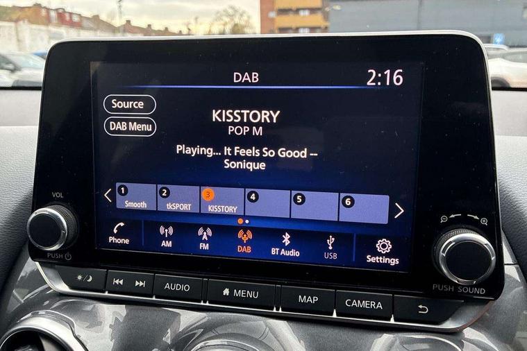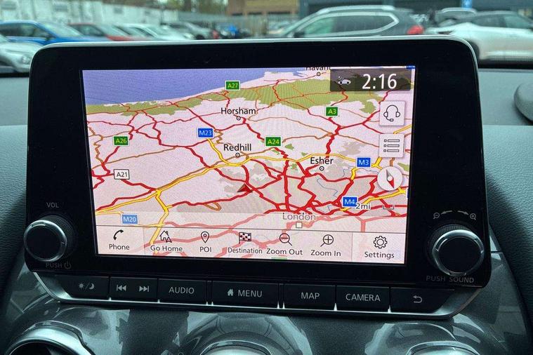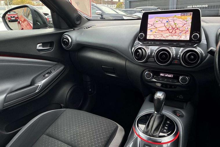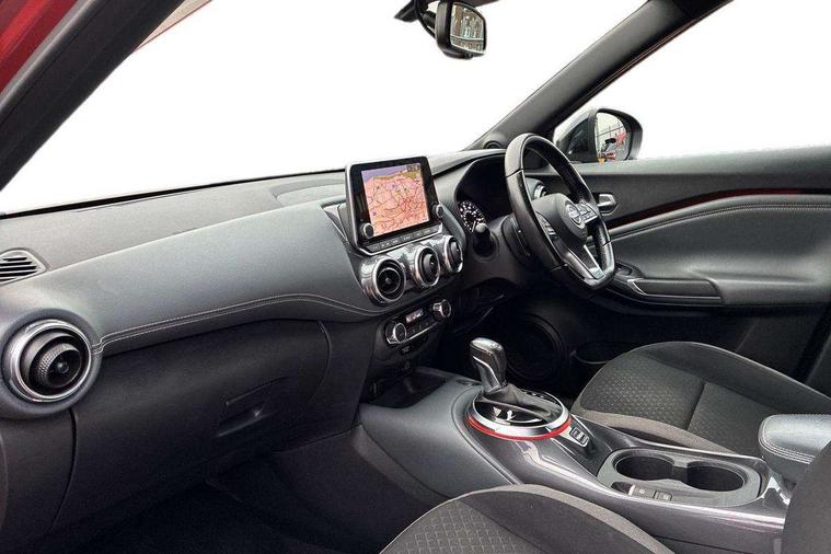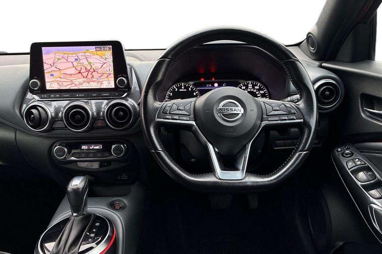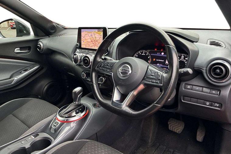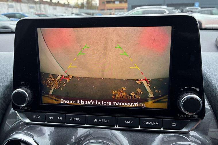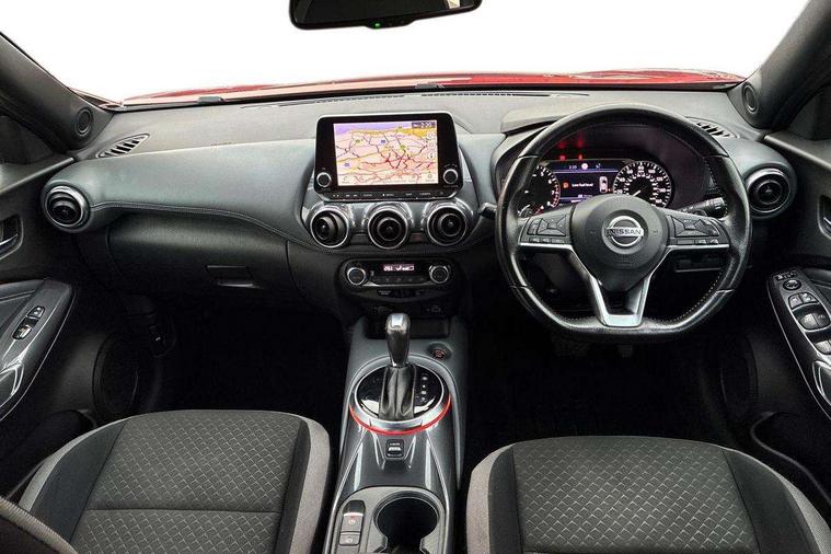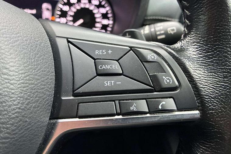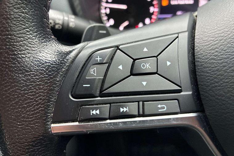 7" full colour TFT screen combimeter, 8" infotainment colour display with touch screen, Apple CarPlay and Google Android auto, Drive modes select (Eco, normal and sport), Emergency and breakdown call, Front parking sensor, Idle start/stop system, Intelligent lane intervention, Lane departure warning system, Nissan connect nav with TomTom traffic, Nissan connect services and Wifi connection, Outside temperature sensor, Power Steering, Rear parking sensor, Traffic sign recognition, Trip computer, Gasoline particulate filter, 6 speakers, Bluetooth system, USB, Aux-in and 12V socket, DAB Digital radio, Rear console USB port, Auto dimming interior rear view mirror, Automatic hazard signal with emergency stop signal, Body colour bumpers, Body colour door handles, Electrically adjustable door mirrors with integrated indicators, Follow me home headlights, Front and rear electric window with one touch driver and passenger window, Heated and auto folding door mirrors, High beam assist, LED daytime running lights, LED front fog lights, LED headlamps, LED rear fog lamp, LED rear lamps, Rain sensor windscreen wipers, Rear privacy glass, Rear spoiler, Rear wiper, Three blink turn signal, 3 height adjustable rear headrests, 60/40 split folding rear seat, Automatic climate control, Card holder on driver sunvisor, Cloth upholstery, Door ambient lighting, Driver and passenger sliding and reclining seats, Driver seat back pocket, Driver side rear coat hanger, Driver/passenger sunvisors and illuminated vanity mirrors, Front and rear cabin lights, Front armrest, Front door pockets with bottle holders, Front head restraints, Front/rear passenger grab handles, Gear console ambient circle lighting, Grey synthetic leather kneepad, Height adjustable driver's seat, Internal chrome door handles, Leather gearshift knob, Leather steering wheel, Luggage board, Luggage space lighting, Monoform sporty seats, Multifunction steering wheel, Passenger seat back pocket, Rear door bottle holders, Steering wheel mounted gearshift paddles, Telescopic steering wheel adjustment, Two cupholders in front centre console, Two rear isofix child seat anchorage points with top tether, Voice recognition switch on steering wheel, Welcome light and console tray ambient lighting, ABS with EBD and brake assist, Active ride control, Active Trace Control, Driver and passenger airbags, Driver and passenger side airbags, Electric handbrake with auto hold function, Electronic Stability Programme (ESP), Front and rear curtain airbags, Height adjustable seatbelts, Hill start assist, Intelligent emergency braking with pedestrian and cyclist recognition, Seatbelt reminder for driver/front passenger and rear seats, Single tone horn, Three 3 point rear seatbelts, Traction control, Tyre pressure monitoring system, VDC Dynamic Vehicle Control, Ventilated rear brake discs, Alarm, Immobiliser, Intelligent Key with push button starter, Remote central locking,