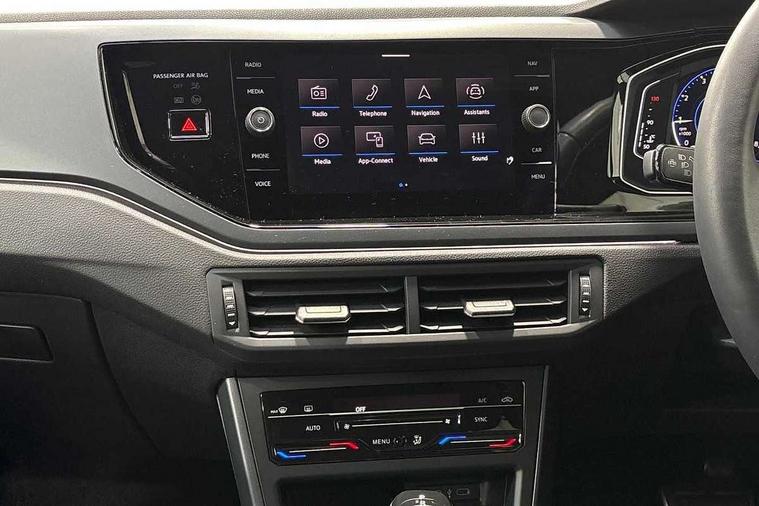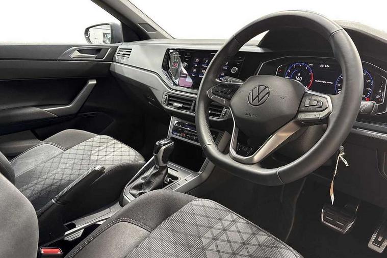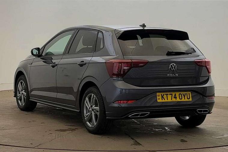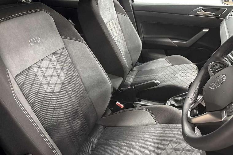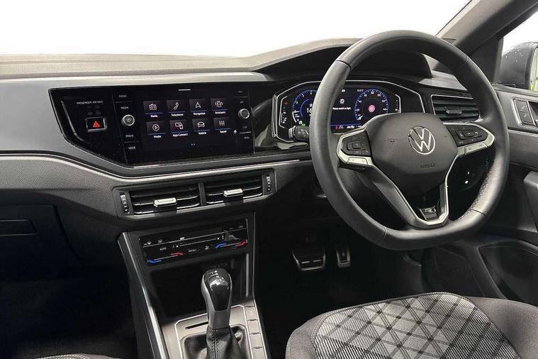 Adaptive cruise control with follow-to-stop and speed limiter, Advanced driver attention and drowsiness monitor, Bluetooth mobile phone interface, Digital Cockpit Pro with 10.25" Display, Dynamic road sign display, Emergency call service, Multifunction camera, Power assisted speed sensitive steering, Preparation for We connect and We connect plus, Speedo and rev counter, electronic odometer, trip, service interval display and fuel gauge, Standard rear axle, Travel Assist - Lane keeping system and traffic jam assist, Travel assist including emergency assist, Trip computer, Warning signal and warning light for front and rear seatbelts not fastened, Washer fluid level indicator, Wireless app connect, Front wheel drive, Rear shock absorpion, Start-stop system with battery regeneration (recuperation - energy recovery during braking), DAB Digital radio, Diversity antenna for FM reception, Front and rear 6 speakers, Body colour bumpers, Body colour door handles, Electric front windows, Front scuff plates with R-Line logo, Heat insulating glass windscreen, Power folding adjustable/heated exterior mirrors and front passenger exterior mirror lowering function, Rear electric windows, Rear fog light, Rear side wing doors, Rear windscreen washer and wiper with interval delay, Third brake light, 12V power socket in centre console, 2 USB-C ports in the front, 2 USB-C charging sockets on the center console in the rear, 3 rear head restraints, 60/40 split folding rear seat and rear seat bench not split, Air care climatronic air conditoning system with active combination filter and 2-zone temperature control, Black roof lining, Carpet mats, front and rear, Chrome plated radiator grille inserts, air vent surrounds and light switch surrounds, Door and side trim panel, Driver and front passenger seat height adjustment, Driver/passenger sunvisors with illuminated vanity mirrors, Front centre armrest, Front footwell illumination, Front seat backrest storage pockets, Front sports comfort seats, Handbrake lever handle in leather, Headliner in recycled material, Isofix child seat preparation easy-fit (for two outer rear seats, and front passenger seat) compatible with I-size, Karoso artvelours cloth upholstery, Leather trimmed gear knob, LED interior light with switch off delay and dimmer, 2 reading lights front and rear, Luggage compartment cover, Luggage compartment floor, Luggage compartment lighting, Lumbar adjustment for front seats, Single front passenger seat, Stainless steel pedals, Standard pedal cluster, Three spoke leather wrapped multifunction steering wheel with shifting paddles, Light and sight pack - Polo R-Line/Black Edition, 3 point height adj front seatbelts + pretensioners, 3x3 point rear seatbelts, ABS, Driver and front passenger airbag with front passenger airbag deactivation, Drivers and front passengers safety optimised head restraints, ESC (Electronic stability control) + EDL (Electronic Differntial lock) and ASR (Traction control), Extended and predictive pedestrian/ cyclist protection, Front curtain and side airbags with center airbag, Front/rear disc brakes, Hill hold control, Manual child lock in rear doors, Single tone horn, Tyre pressure loss indicator, Alarm with interior protection, Anti-theft alarm system with interior monitoring, backup horn, and towing protection, Anti-theft wheel bolts, Electronic engine immobiliser, Chrome applications on rotary light, mirror adjustment, window regulator switches, outlet with frame in black, Dark grey anodised matt decorative inserts in dash and front door panels, 16" Coventry alloy wheels, Low rolling resistance tyres,