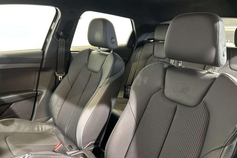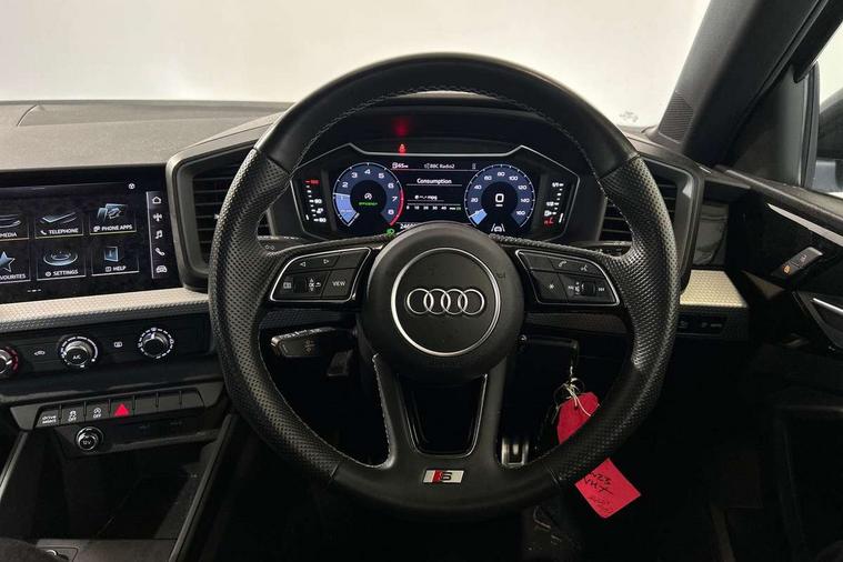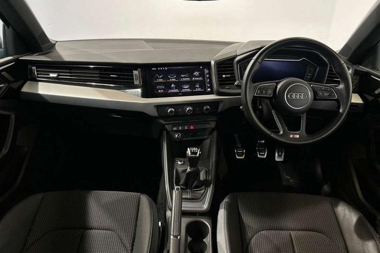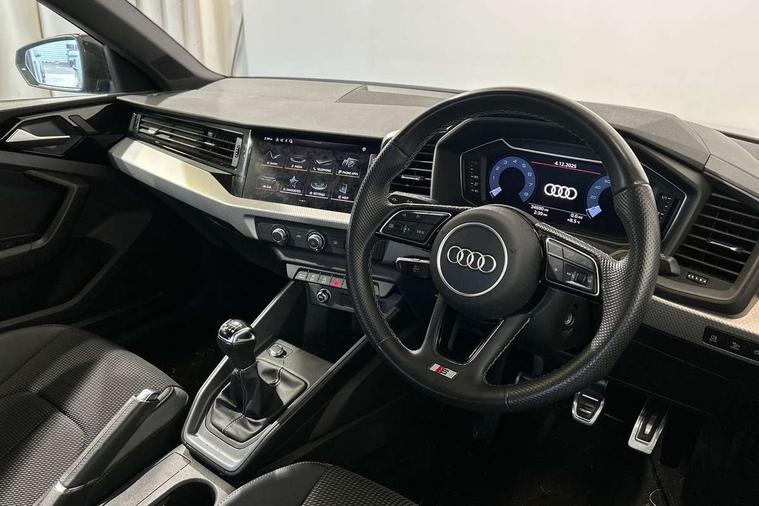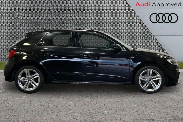 10.25" Digital instrument cluster display classis style instrument dials + speed, odometer, time, outside temperature, telephone menu + fuel level warning, Audi drive select - power steering assistance + engine, Audi smartphone interface with connect compatible smartphone via USB directly MMI display + Nav, music, third party apps controlled via MMI controller, Automatic start/stop system, Bluetooth interface, Cruise control, Driver's information system, Electromechanical power steering, Emergency e-call, Emergency services call system, Lane departure warning system, Service interval indicator, Speed limiter, Voice control system, Washer fluid level indicator, Sports suspension, 1 x SDXC card reader, 2 x USB type C connection points, DAB Digital radio, MMI radio plus with 8.8" colour MMI display screen and MMI touch, Auto dimming rear view mirror, Body coloured door mirrors, Door sills with aluminium inlays and S Line logo, Electric front and rear windows, Electrically adjustable, heated, folding door mirrors with integrated LED side indicator, Front side air inlets in grained matt black and C frame in anthracite black, Heat insulating glass windscreen and side windows, Heated rear windscreen, High level LED brake light, LED headlights with LED rear lights + dynamic rear indicators + headlight adjustment and high beam, turning light + LED daytime running lights, Radiator grille and rear diffuser in matt anthracite black, Radiator protective grille frame in matt aluminium silver, Rain and light sensors, Rear fog lights, Rear side wing doors, Rear wing door, Rear wiper, S line badges on front wings, Side front spoiler lips in grained matt black, 12V socket in centre console with two cup holders, 3 rear seats with headrests, 3 seat bench in 2nd row, 3 spoke leather multi-function plus steering wheel features S badging and grips in perforated leather with contrast stitching, 40:60 Split folding rear seat or folded fully, Black cloth headlining, Driver and passenger seat with manual height adjust with forward and backwards adjustment, Front and rear black floor mats with contrast stitching in fine silver, Front head restraints, Front passenger seat, Height and reach adjustable steering wheel, ISOFIX child seat mounting for front passenger and outer rear seats including top tether attachment point of outer rear seats, Leather gear knob with aluminium trim, Luggage compartment light with front and rear reading lights, Manually adjustable lumbar support in front seats, Stainless steel pedals, LED interior lighting pack - A1, Luggage compartment pack - A1, S line exterior styling pack - A1 Sportback, 3x3 point rear seatbelts, Audi pre-sense front with pedestrain and cyclist recognition, Brake assist function, Driver and front passenger airbag with front side and head airbags, Electronic Stability Control including ABS, EBD, ASR and EDL, Front passenger airbag deactivation switch, Hill hold assist, Manual rear child locks, Seatbelt height adjustment for front seats, Seatbelt monitoring, Tyre pressure warning light, Warning triangle and first aid kit, Anti theft alarm, Anti theft wheel bolts and loose wheel warning, Immobiliser, Remote central locking with 2 foldaway keys, Aluminium trim for control switches, air vents and digital instrument cluster, Silver grey inlays polygon structure in diamond paint finish, Structured grey accent areas including air vents, door handle recesses and centre console in quartz paint finish,