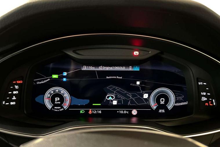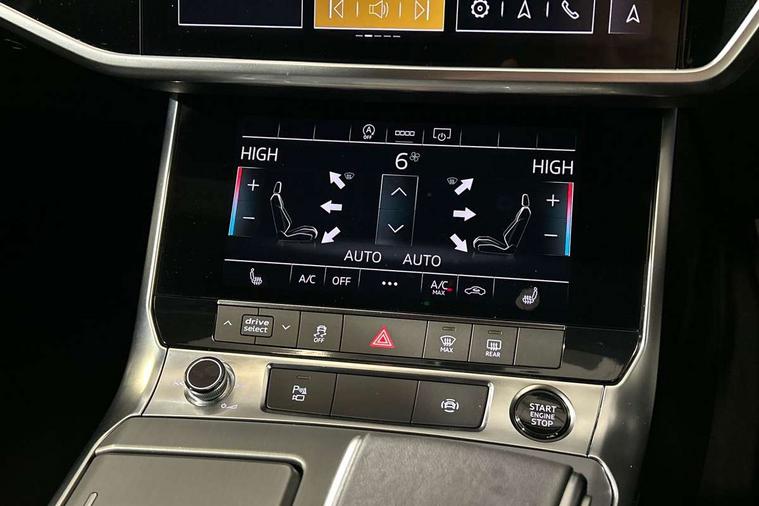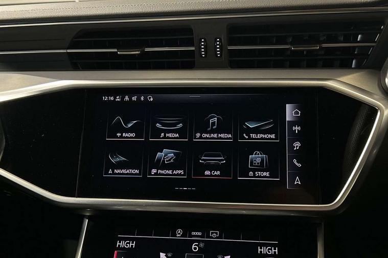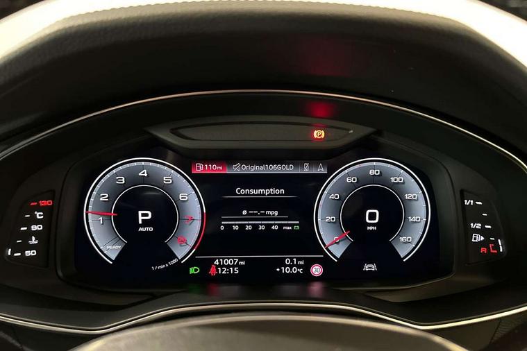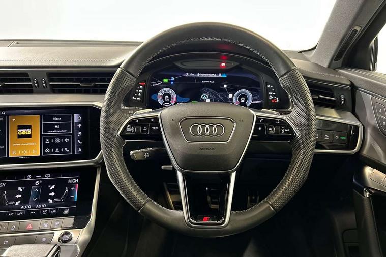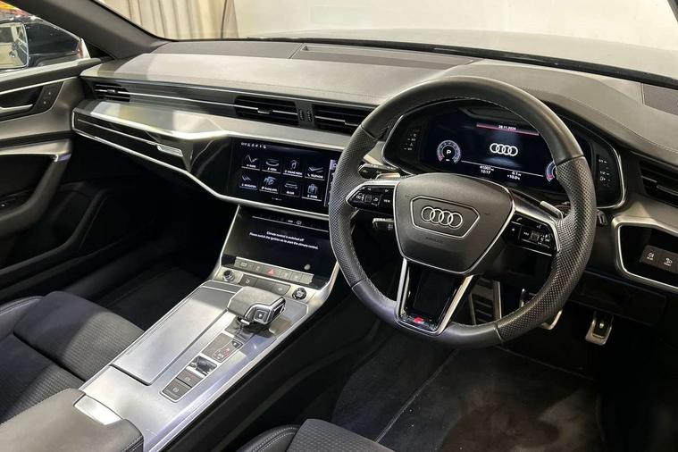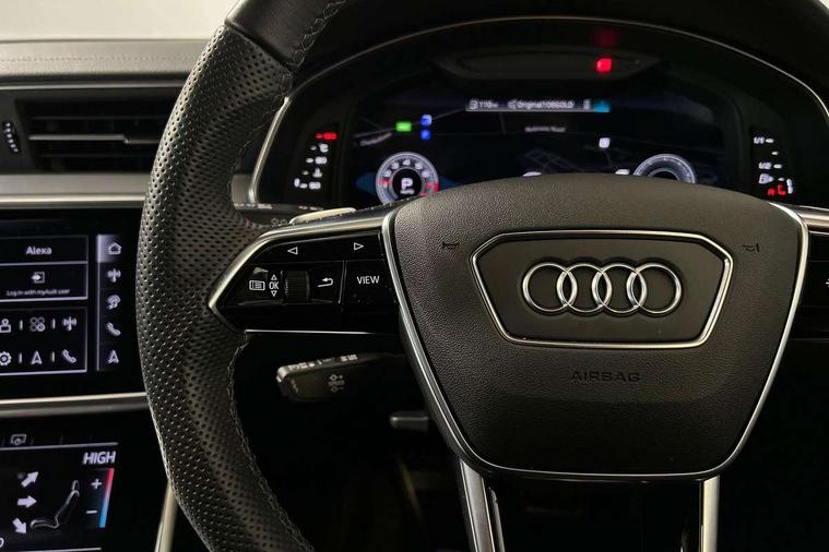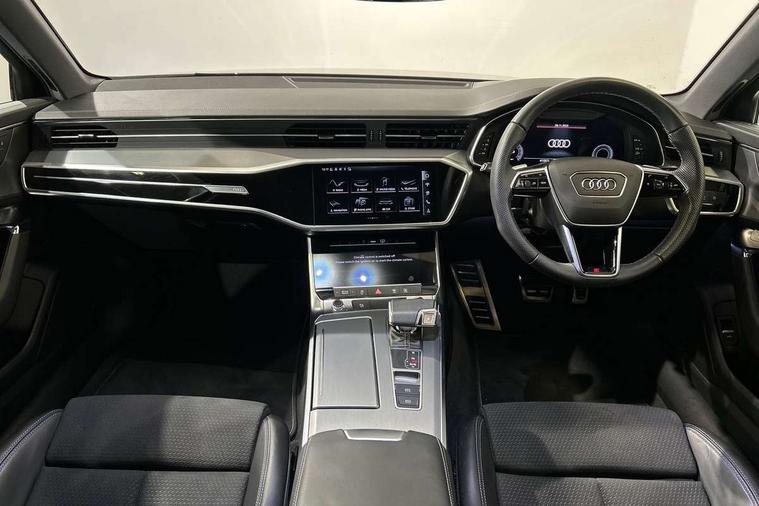 Audi connect safety and service (e-call), Audi connect with Amazon Alexa Integration, Audi drive select, Audi parking system plus - acoustic and visual park assist system for front and rear, Audi virtual cockpit, Automatic start/stop system with coasting functionality, Bluetooth interface, Camera based traffic sign recognition, Lane departure warning system, MMI navigation plus with 10.1" and 8.6" touch screens, Power operated tailgate, Progressive steering, Rear view camera, Service interval indicator, Smartphone interface includes wireless Apple carplay/Android Auto, Voice control system, Sports suspension, Audi front music interface, Audi sound system, Auxiliary input socket, DAB Digital radio, USB connection, Aluminium roof rails, Body colour rear roof spoiler, Body coloured door mirrors, Electric front/rear windows, Electrically adjustable heated and folding + automatically dimming exterior mirrors with memory function, Frameless auto dimming interior rear view mirror, Front intermittent wipers, Heat insulating darkened glass in side and rear windows, Heat insulating glass in windshield, LED rear lights with dynamic indicators, LED signature front daytime running light, LED third brake light, Matrix LED headlights, Matt black rear diffuser with diffuser strip and tailpipes in chrome, Matt black side air intake grille with inlay in matt aluminium, Privacy glass, Radiator grille in anthracite black matt, single frame in chrome and horizontal struts in matt aluminium silver, Rain and light sensors, Rear side wing doors, Rear wiper, 2 zone deluxe electronic climate control, 3 spoke high multi-function perforated leather steering wheel with contrast stitching and shift paddles, 40/20/40 split folding 3 rear seat bench in 3 parts with rear centre armrest, Audi phone box light, Black cloth headlining, Electrically adjustable front seats including seat height, fore/aft position, backrest angle and 4-way lumbar with memory for driver's seat, Front and rear floor mats, Front centre armrest, Front head restraints, Heated front seats, Height/reach adjust steering wheel, Illuminated door sill trims with S logo, Illuminated sun visors with vanity mirrors, Leather gear knob, Luggage compartment system, Rear headrests, Single front passenger seat, Stainless steel pedals and foot rest, Tool kit and car jack, LED Interior Ambient Lighting Pack - A6, Non smoking pack - A6, S line exterior style pack - A6, 3 point seatbelts on all seats, Airbags - Front side, front and rear including head, Audi pre-sense front, EBD - Electronic brakeforce distribution, Electromechanical parking brake, Electronic Stability Control (ESC) including ABS, ASR and EDL, Extended pedestrian protection measures, ISOFIX child seat mounting for front passenger seat and ISOFIX child seat mounting with Top Tether for outer rear seats, Manual child proof rear door locks, Seatbelt monitoring, Tyre pressure warning light, Warning triangle and first aid kit, Anti theft alarm with tow away protection, Anti-theft wheel bolts and wheel loosening detection, Immobiliser, Keyless Go, Remote central locking, Matt brushed aluminium inlays,