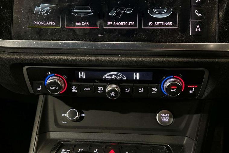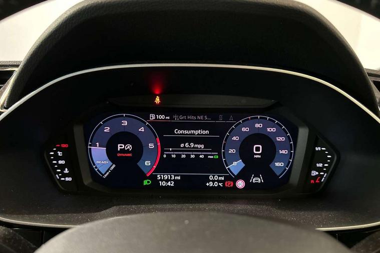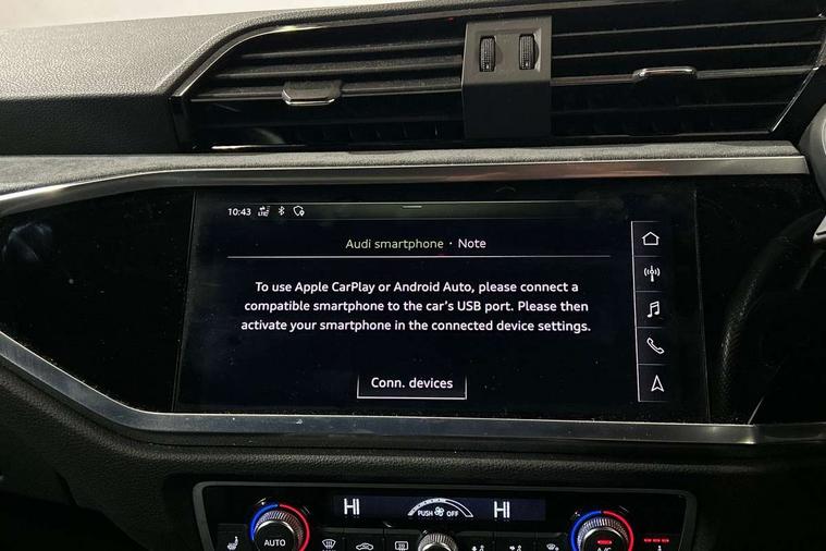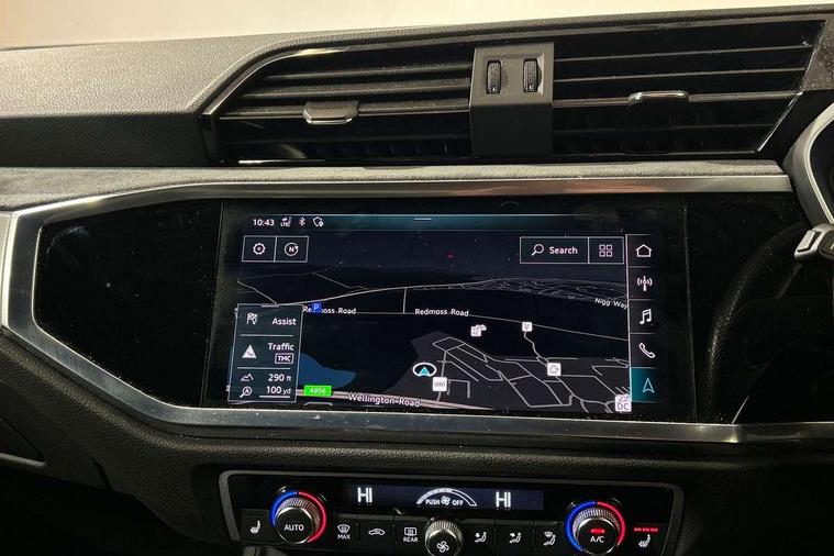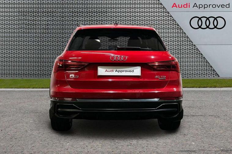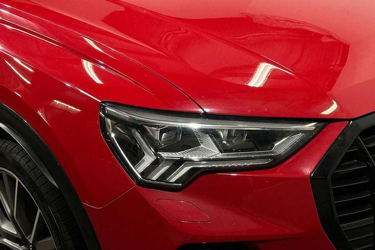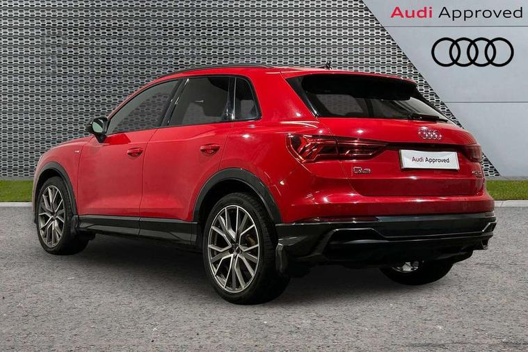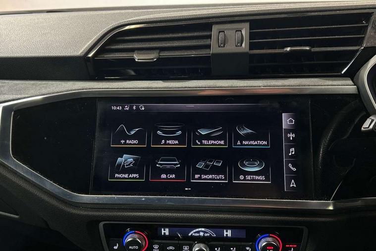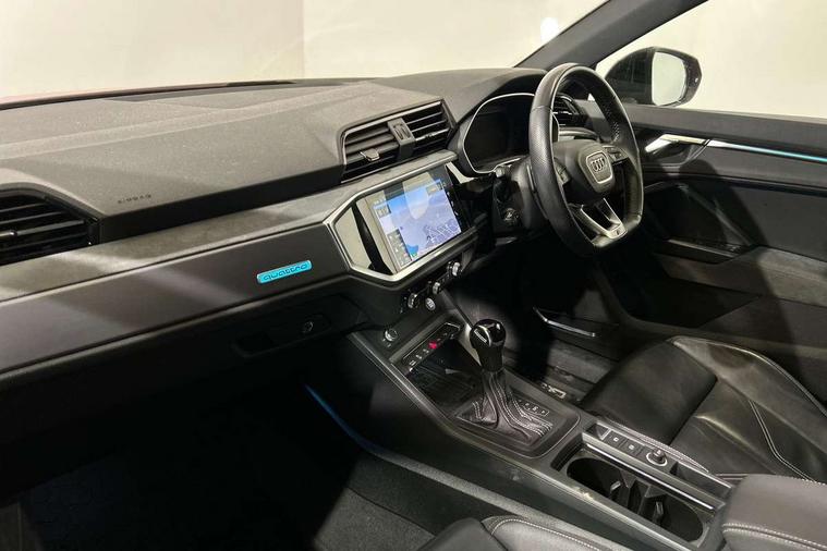 360 degree parking camera, Audi connect safety and service (e-call), Audi drive select, Audi lane departure warning, Audi parking system plus with front and rear sensors, Audi phone box with wireless charging, Audi side assist, Audi smartphone interface, Audi virtual cockpit plus, Bluetooth interface, MMI navigation plus with MMI touch, Power opening/closing tailgate, Progressive steering, Rear cross traffic alert, Service interval indicator, Stop/start system, Voice control system, Adaptive suspension with damping control, Diesel particulate filter, Bang & Olufsen 3D Premium Sound System, DAB digital radio module, Acoustic windscreen, Auto dimming and folding door mirrors, Auto dimming rear view mirror, Black roof rails, Contrast bumpers in Manhattan grey paint finish, Diffuser in matt Platinum grey, Electrically adjustable and heated door mirrors with integrated LED side indicators, Front and rear electric windows, Front fog lights, Front side air inlets in matt platinum grey, Front spoiler blade in matt platinum grey, Front spoiler in matt selenite silver, Grille vertical bars in aluminium silver/Matt, Headlight washers, High gloss black finish B and C pillars, Matrix LED headlights with LED rear lights and dynamic front and rear indicator, Panoramic opening glass sunroof, Privacy glass, Rain and light sensors, Rear diffuser strip in selenite silver, S line bumpers in contrasting Manhattan grey, 12V socket in rear centre console, 3 spoke flat bottomed high multi-function leather sport steering wheel with gearshift paddles, 4 way electric lumbar support for driver and front passenger, 40:20:40 split folding rear bench seat, Adjustable rear seat bench/backrest with centre armrest and cupholder, Aluminium door sill trims, Black cloth headlining, Dual zone climate control, Electrically adjustable front seats, Front and rear black floor mats with contrast stitching in rock grey, Front and rear headrests, Front centre armrest with storage compartment and angle adjustment, Heated front seats, ISOFIX child seat mounting and Top Tether with front passenger airbag deactivation, Perforated leather gearknob, Stainless steel luggage compartment sill finisher, Stainless steel pedals, Black styling pack - Q3, Driver Assistance Pack - Q3, Multi coloured extended ambient interior lighting pack - Q3, Non smoking pack - Q3, 3x3 point rear seatbelts, 6 airbags - Driver, front passenger, curtain and side windows, Audi pre-sense front with pedestrain and cyclist recognition, Electronic stabilisation control including ABS, ASR and EDL, Hill hold assist, Pre sense basic, Seatbelt monitoring, Tyre pressure warning, Warning triangle and first aid kit, Advanced key, Anti theft alarm, Anti theft wheel bolts, Remote central locking, Dark matt brushed aluminium inlay, MMI touch colour display in gloss black with aluminium surround,