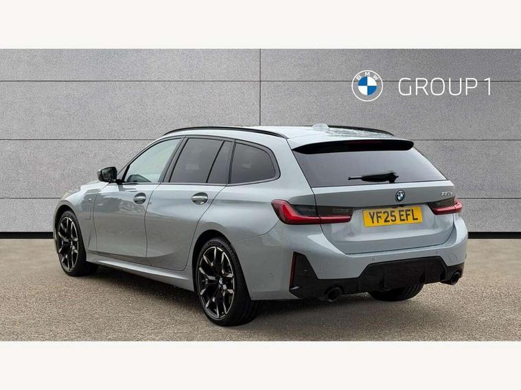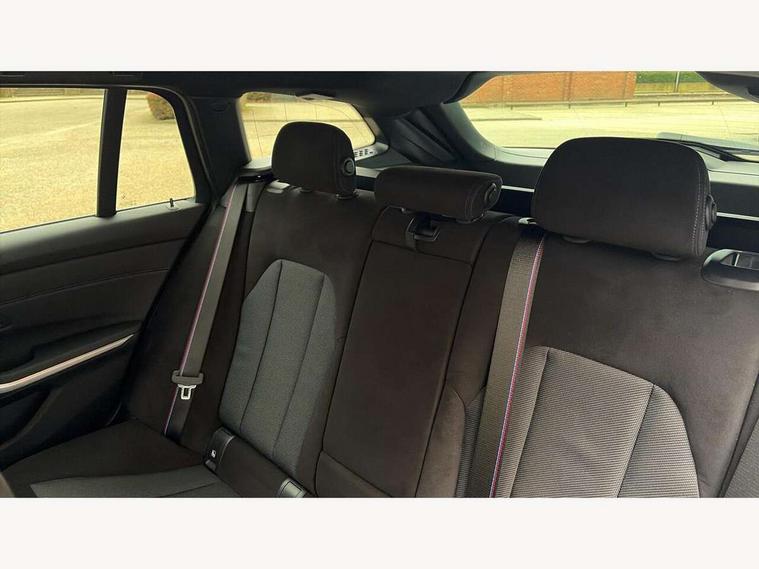 Active guard plus, Attentiveness assist, Automatic Start/stop button, Bluetooth Wi-Fi interface, BMW iDrive, BMW Teleservices, ConnectedDrive Services - last state call, Electric bootlid, Live cockpit plus with Navigation + 12.3" instrument display + 14.9" display, Intelligent voice assist, 2 USB, 4G LTE connect, Oil sensor for level and grade, Personal e-SIM, Shifting point display, Double joint spring strut front axle, Fuel tank breather system, Public mode 3 professional fast charging cable with 5m length, Steptronic Sport automatic transmission with steering wheel mounted gearshift paddles launch control and xtreme drive lever control, DAB tuner, 3rd brake light, Auto dimming rear view mirror, Automatic headlight beam throw control with load dependent regulating reaction, dynamic compensation of braking dive and acceleration squat, Bi-LED Low and high beam headlights, BMW emblem, engine compartment lid and tailgate, Body colour roof fin, Door sill strips, Electric windows - front and rear, with open/close fingertip control, anti-trap facility and comfort closing, Fading support, Follow me home headlight function, Front and rear bumper system with replaceable deformation elements, Front apron plastic in body colour, Fuel filler flap - right rear in body colour, Heat protection glazing on front windows and windscreen, Heated washer jets, High gloss chrome kidney frame with high gloss black kidney struts, High gloss shadow line roof rails, LED daytime running lights, LED rear lights, LED turn indicator, Licence plate panel integrated into front bumper and tailgate, M high gloss shadow line exterior trim, Matt black B-pillar finsher, Matt black window recess cover, Model designation on right side of tailgate, One piece front bumper cover including towing eye cover in body colour, Rain sensor with automatic headlight activation, Rear side wing doors, Rear wiper, Reversing lights, Side frame decorative moulding black matt, Trailer stabilisation logic, Visible exhaust tailpipe finisher, Welcome lights in interior and door handle area, 12V power socket in front storage compartment, 2 front cupholder in centre console with clamping elements and matt black inlay, 3 seat bench in 2nd row, 3 spoke M Sport multifunction flat bottom leather steering wheel, 3 zone automatic air conditioning, 40:20:40 split folding rear seat with loading system, Anthracite headlining, Armrest integrated in front and rear door trim + front centre console armrest, Battery in luggage compartment, BMW ID, Cruise control operation in steering wheel, Driving experience mode switch, Folding rear centre armrest with 2 cupholders, Front and rear headrests, Front and rear velour floor mats, Front reading light, Heated front seats, Height adjustable mechanically and infinitely variable steering column, Illuminated armrest storage compartment, Illuminated glove compartment, Illuminated luggage compartment, Lashing eyelets in luggage compartment, Single front passenger seat, Sunvisors with illuminated vanity mirrors and ticket pocket, Toolkit located in luggage compartment, Connected pack professional - 3 Series Saloon/Touring, Interior and exterior mirror pack - 3 Series Touring/Saloon, M sport exterior styling pack - 3 Series Saloon/Touring, Parking assistant pack - 3 Series, 3x3 point rear seatbelts, BMW emergency call, Child locks on rear doors, Crash sensor activating of airbags, Unlocking doors, hazard warning lights, interior light, safety battery terminal, Drive-off assistant, Driver and front passenger with seat occupancy detection for driver's and passenger side, Driver and passenger side airbags, body protection at side and airbags deploy from seat backrests, Dry braking, Dynamic brake control, Dynamic stability control + (DSC+) - Anti-lock Braking System (ABS) with brake assist and cornering brake control + Automatic Stability Control (ASC), Dynamic Traction Control - DTC, Electric parking brake including automatic hold function and automatic release of the parking brake when driving off, Electronic differential lock control (EDLC), Front airbag deactivation, Front airbags for driver and front passenger, Head airbags in 1st and 2nd row, head protection at side, curtain airbags open from headliner above 1st and 2nd row, Plastic fuel tank, Side impact protection, Tyre pressure sensors, Ventilated front and rear disc brakes, Warning triangle and first aid kit, Alarm system, Centre lock switch, Closing system with central locking, Electronic vehicle immobiliser, Locking wheel bolts, Tyre repair kit,