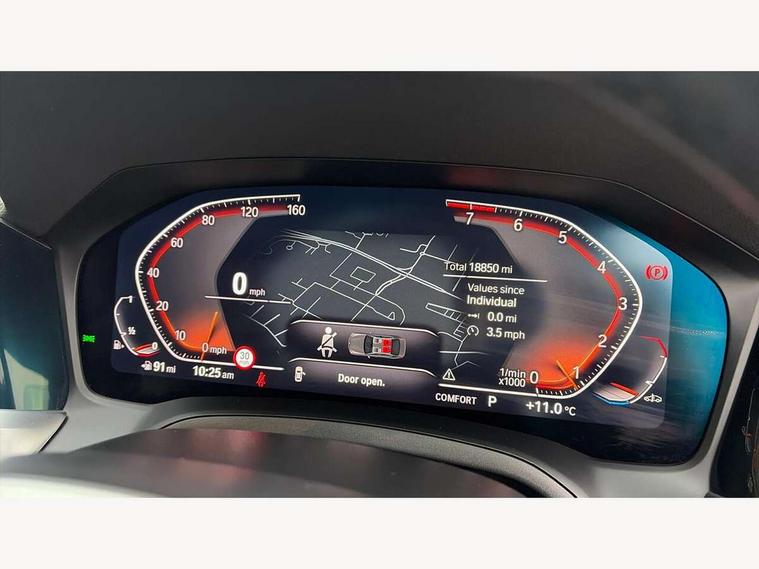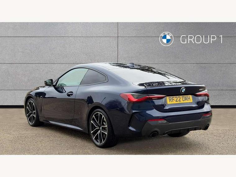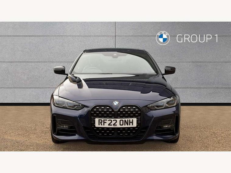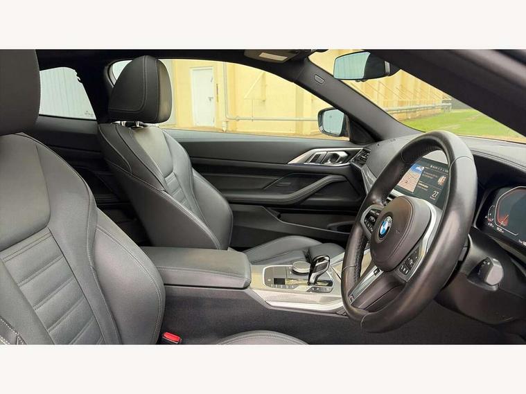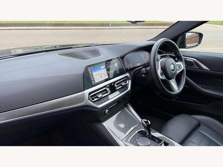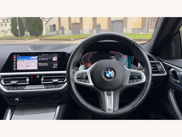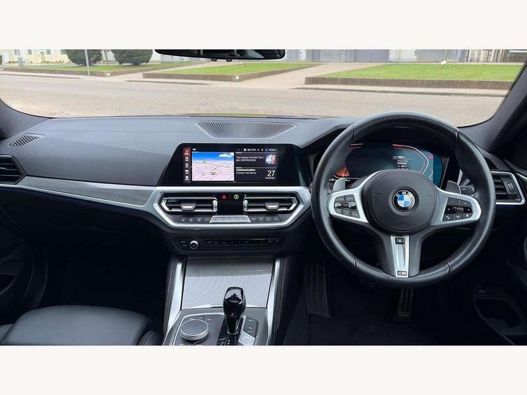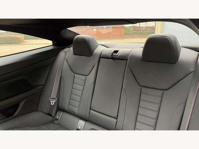 Active guard plus, Attentiveness assist, Auto start-stop, BMW ConnectedDrive online services, BMW iDrive controller on centre console, BMW Live Cockpit Professional Nav with 12.3" instrument display + 10.25" display, Intelligent Voice Assist, BMW OS 7, HDD, 2USB, 4G LTE connect, BMW service history, BMW Teleservices, Brake pad wear indicator in front and rear, Check Control warning system for monitoring of lights and door/luggage compartment open warning, Condition based service, Cruise control with brake assist, Electric power steering with Servotronic steering optimised at all speed ranges, Gearshift time display in manual mode, Instrument cluster with speedometer with mph readout, tachometer, fuel gauge and oil temperature gauge, Integrated owners handbook, Oil sensor for level and grade, warning by check control system, On board computer - average speed, fuel consumption, outside temp display with acoustic warning, clock/date, service interval, odometer/trip meter, Optimum shift indicator, Touch control functionality for BMW Live Cockpit Professional Nav, Variable sport steering, 8 speed automatic steptronic transmission with gearshift paddles, Active sound design, Adaptive M suspension, Balanced 50/50 weight distribution, Double VANOS, Drive performance control - ECO PRO, comfort and sport modes, High precision injection, Low centre of gravity, Petrol Particulate Filter, Sprint mode, Stroke dependent dampers, VALVETRONIC engine management, DAB tuner, Electronic service booklet, Acoustic glazing, Automatic headlight beam throw control with load dependent regulating reaction, dynamic compensation of braking dive and acceleration squat, Automatic windscreen wipers and automatic headlight, Automatically dimming electrochromatic rear view mirror, Black mirror caps, BMW emblem on engine compartment lid and tailgate, BMW Individual high gloss shadow line with extended contents, BMW individual lights shadow line, BMW Individual metallic paint work, BMW kidney grille with mesh grille front side of the nuggets in matt aluminium and frame in chrome high gloss, Body colour fuel filler flap, Body colour roof fin, Brushed aluminium inserts in the front door sill finishers with BMW designation, Dynamic brake lights, Electric windows - front and rear, with open/close fingertip control, anti trap facility and comfort closing function all round, Exhaust tailpipe - split left and right, Exterior mirrors - electrically folding with anti-dazzle, Fading support, Follow me home headlights, Front and rear bumper system, Front apron plastic in body colour, Green tinted heat protection glazing, Illuminated bow type door handles in body colour drivers side with door lock, Interior rear view electrochromatic mirror with automatic anti dazzle function, LED daytime running lights, LED front fog lights, Licence plate panel integrated into front bumper and tailgate, Lightweight engineering, M designation on front side panels, left and right, M rear spoiler in high gloss black, Model designation on right side of tailgate, One piece front bumper cover including towing eye cover in body colour, Preparation for high beam assistant, Rear boot, Reversing light, Side frame decorative moulding black matt, Sun protection glass, Two part LED tailights in L-shape with components in smoked glass, brake light, LED turn indicator and rear fog light, Visible VIN plate, Welcome lights in interior and door handle area, Widened track and increased camber values for max transverse dynamics, agility and steering precision, Window recess cover black high gloss, Windscreen wipers with integrated heated washing jets, 12V power socket in front centre console, 2 front cupholder in centre console with clamping elements and matt black inlay, 2 Rear seat headrests, 2 seat bench in second row, 3 spoke M sport leather multifunction steering wheel, 3 zone automatic air conditioning, 4 pieces lashing eyelets in luggage compartment, 40:20:40 split folding rear seat and rear centre armrest with two cupholders, Ambient lighting with welcome carpet light, Anthracite headlining, Armrest integrated in front and rear door trim + front centre console armrest, Driver seat backrest width adjustment, Four grab handles integrated in roof lining, Front and rear door pockets, Front and rear footwell lights, Front and rear reading lights, Front headrests, Front passenger seat, Front sport seats, Heated driver and front passenger seats, Height adjustable mechanically and infinitely variable steering column, Illuminated armrest storage compartment, Illuminated glove compartment with separate small compartment, Luggage compartment light, Make-up mirror lights, Storage compartment in rear centre console, Sunvisors with vanity mirrors and ticket pocket, Toolkit located in luggage compartment, USB type - C cable charging function in the rear centre console, Velour front floor mats, Connected professional package - 4 Series, M sport exterior styling pack - 4 Series, Park assist pack - 4 Series, 2 x 3-point rear seatbelts, Battery safety cut-off, BMW emergency call, Brake energy regeneration, Braking pre-tensioning, Child seat ISOFIX attachment for the two outer rear seats, Coasting in idle in ECO PRO mode, Cornering brake control (CBC), Crash sensor activating of airbags, Unlocking doors, hazard warning lights, interior light, safety battery terminal, Driver and front passenger side airbags, integrated in the door side seat backrest bolsters for all seat variants, Driver/Front Passenger airbags, Dry braking, Dynamic brake control, Dynamic stability control + (DSC+) - Anti-lock Braking System (ABS) with brake assist and cornering brake control + Automatic Stability Control (ASC), Dynamic Traction Control - DTC, Electric parking brake including automatic hold function and automatic release of the parking brake when driving off, Electronic differential lock control (EDLC), Front and rear ventilated brake disc, Front passenger manual airbag deactivation, Head airbags for