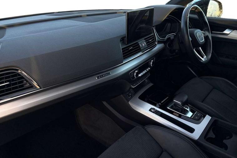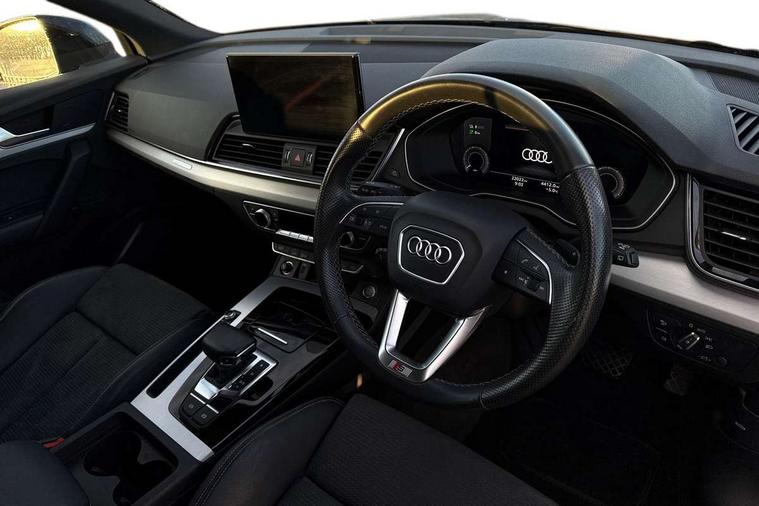 Audi connect safety and service (e-call), Audi connect with Amazon Alexa Integration, Audi drive select, Audi virtual cockpit plus with 12.3" screen and three different layout designs, Audi wireless smartphone interface, Automatic start-stop system with coasting functionality and efficiency programme, Bluetooth interface, Electro - mechanical power assisted steering, MMI navigation plus with 10.1" touch screen, Power tailgate, Reversing camera, Service interval indicator, Voice control system with Audi hotword activation "Hey Audi", 3 pin 10 amp domestic charging cable, Dynamic suspension, Quattro on demand, Type 2 mode 3 22kW 32 amp charging cable, Type 2 socket for AC charging, DAB Digital radio, Acoustic windscreen, Aluminium roof rails, Audi matrix LED headlights with dynamic front and rear indicators, Auto dimming rear view mirror, Automatic headlights and windscreen wipers, Body colour bumpers, Body colour door mirrors, Body colour rear diffuser with matt aluminium silver surrounds, Body colour underbody protection, Chrome plated exhaust trims, Door sills in Selenite silver, Electric adjustable/heated/folding door mirrors, Front air inlet surrounds in aluminium, Front and rear electric windows, Front radiator grille in honeycomb design, Headlight washers, Lower bumpers painted in contrast Manhattan grey, Rear chrome trim strip below lights, Rear privacy glass and rear side windows, Rear spoiler, Rear wiper, Roof bars, S Line badges on the front wings, S Line front and rear bumpers, S Line side skirts, 2 x USB charging port with aux input socket, 3 rear headrests, 40:20:40 split folding rear seat with rear centre armrest, Black cloth headlining, Comfort front centre armrest, Contrast stitching on seats, steering wheel and gear lever gaiter, Deluxe 3 zone electronic climate control, Front/rear floor mats, Gear lever in black leather, Heated front seats, Height adjustable front head restraints, Height/reach adjustable steering column, Illuminated door sill trims with S logo, ISOFIX child seat mounting and top tether, Manual seat adjustment with 4-way electric lumbar support, Rear seat bench plus, Sunvisors with vanity mirrors, Tool kit, Trunk roller cover, High gloss pack - Q5, LED interior light pack - Q5, 3 point seatbelts on all seats, 6 airbags - Driver, front passenger, curtain and side airbags, Electrically operated child locks on rear doors, Electromechanical parking brake, Electronic stabilisation control including ABS, ASR and EDL, Front passenger airbag deactivation, Hill descent control, Hill hold assist, Multi collision brake assist, Pop-up bonnet for pedestrian protection, Pre sense city, Seat belt force limiter, Seatbelt monitoring, Tyre pressure warning, Warning triangle and first aid kit, Anti theft alarm, Anti-theft wheel bolts, Keyless Go access/ignition system, Matt brushed aluminium inlays, Tyre repair kit,