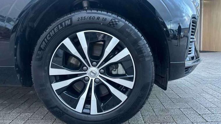12.3" Progressive Driver Display, 9" centre console touch screen, Adjustable steering wheel force, Apple carplay (wired), Bluetooth handsfree system, Drive mode settings, Driver alert control with lane keeping aid, Emergency services call system, Front and rear park assist, Google Automotive Services, Intelligent speed assistance, Oncoming Lane Mitigation, PAS, Power tailgate, Service interval indicator, Speed limiter, Speed sensitive steering, Trip computer, Volvo cars services with app, Volvo on call with App, Wireless/Inductive Mobile Phone Charging, 2 phase on board charger 6.4kW (home charging limited to 3.7kW), 7m 10amp charge cable with 3 pin plug and 6m 3 phase 16amp type 2/mode 3 charge cable, 8 speed automatic transmission with start/stop + manual change functions, Dynamic chassis, Electric rear axle drive, Recharging port located in nearside front wing, DAB Digital radio, Fresh air subwoofer, High performance sound, 2x USB Type C in front and 2x USB Type C in rear, 10 speakers/220W output, Low speed exterior sound speaker, Steering wheel remote infotainment controls, Adaptive brake lights with high level LED brake lights, Auto dimming interior + exterior mirrors, Automatic headlight levelling system, Automatic LED Headlights + Active high beam incorporating daytime running lights, Chrome front and rear bumper decoratives, Chrome lower side moulding trim with Recharge logo, Chrome window surround, Colour co-ordinated door mirrors, Electric adjustable/heated/auto power folding door mirrors, Electric front+rear windows, High gloss black grille with chrome inserts, Home safe and approach lighting, Integrated roof rails in Chrome, Power glass tilt and slide panoramic sunroof with sun curtain, Rain sensor with automatic windscreen wiper activation, Rear side wing doors, Rear wiper, Roof antenna, Roof spoiler, Tinted windscreen, Visible VIN plate, 12V socket in front tunnel console and luggage compartment, 2 zone electronic climate control with Clean zone air quality system and pollen filter, 3 seat bench in 2nd row, 3 Spoke tailored steering wheel with chrome trim, A-pillar parking ticket holder, B Pillar ventilation, Blond headlining, Centre console cupholders and storage, Charcoal floor mats, Front and rear courtesy lights, Front cupholder illumination, Front footwell illumination, Front reading lights, Glovebox compartment with illumination, Head restraints for all seats, Heated front seats, Height/reach adjustable steering column, Illuminated luggage compartment, Illuminated vanity mirrors + ticket holder, ISOFIX attachment on outer rear seats, Leather upholstery, Load cover, Load protection net, Power height adjustable drivers seat with lumbar support, Power passenger seat with lumbar support, Rear armrest with cupholder, Rear reading lights, Rear seat concealed storage, Recharge aluminium tread plates, Single front passenger seat, Synthetic leather sport gear knob, Underfloor stowage compartment, Versatile split folding rear seat - 60/40, 5 three point seatbelts, City safety with steering support with Pedestrian + cyclist + front collision warning with full auto brake and rear auto brake, Drivers knee airbag, Dual stage driver/passenger airbags, Electronic parking brake with auto hold, First aid kit, Front seats SIPS airbags, Hill descent control - Off-road drive mode, Hill start assist, IC (Inflatable Curtains) - Full Length, Passenger airbag cut-off device, Power child locks on rear doors, Road sign information display, Run off Road Mitigation, Run off Road Protection, Seatbelt reminder and pretensioners, SIPS (Side Impact Protection System), Slippery road and hazard light alert, Stability and Traction Control with Spin control, Engine Drag Control and Corner Traction Control, Tyre pressure monitoring system, Vehicle deceleration control with Anti-lock Brake System, Electronic Brake Distribution and Emergency Brake Assist, Warning triangle, WHIPS whiplash protection system - front, Anti-theft alarm including immobiliser/volume sensor + level sensor, Care key with user defined top speed, Key integrated remote control central locking + fuel flap with deadlocking system and auto open/close power windows, Keyless Start, Locking wheel nuts, Private locking for tailgate, Tyre sealant kit + 12v compressor,
