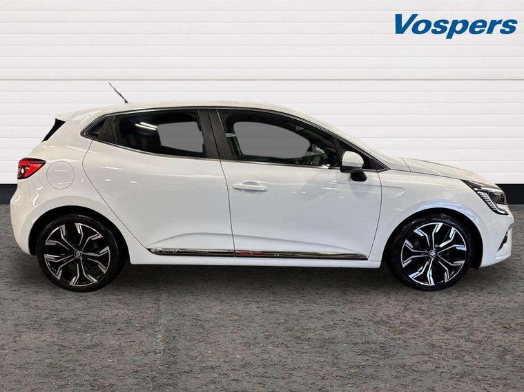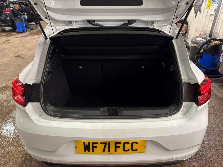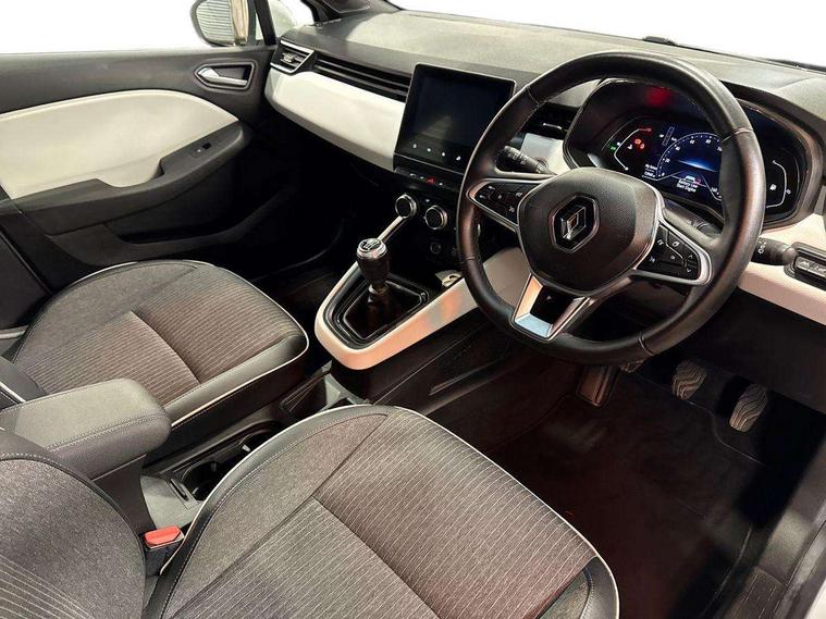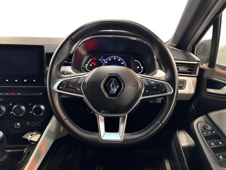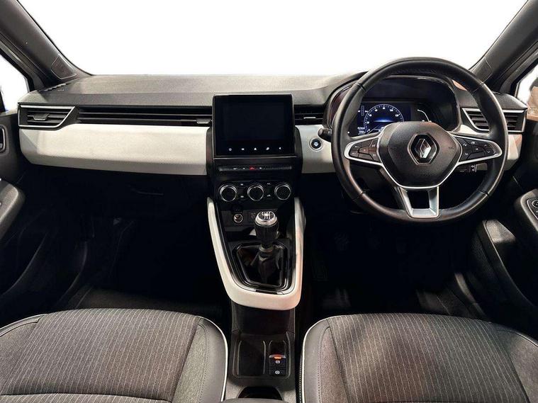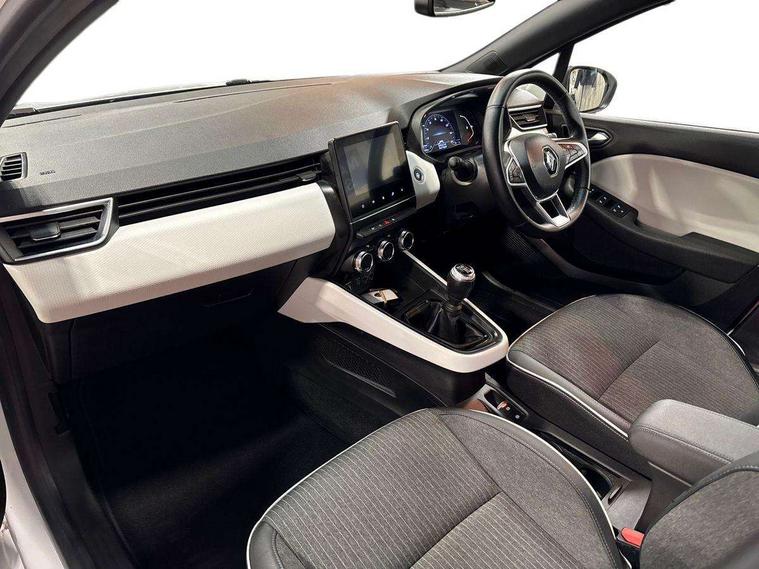 7" TFT colour instrumental display, Cruise control + speed limiter, E-call, Easy link navigation with 7" touchscreen+4x20W amplifier+FM DAB double tuner, sound auditorium, 2xUSB/1xjack/bluetooth, smartphone integration plus, Eco mode driving function, Gear change indicator, Lane departure warning system, Lane keep assist, Over speed prevention, Rear parking sensors, Traffic sign recognition, Trip computer, Variable assistance electric PAS, Auto dimming rear view mirror, Auto light control and rain sensing wiper, Automatic headlights, Body colour door handles, Body colour door mirrors, Body coloured bumpers, Body coloured rear spoiler, Chrome exhaust tailpipe, Chrome front grille, Chrome insert on lower side doors with Clio embossing, Drivers one touch window with anti-pinch feature, Electric adjustable/heated/folding door mirrors, Electric front windows, Electric rear windows, Exterior rear hidden door handles, Full LED front and rear headlamps integrating daytime running lights at the front and rear, LED front fog lights, LED Roof light, Rear fog lights, Rear side wing doors, Rear wiper, Tinted rear windows, Variable speed on front windscreen wipers, 12V Accessory socket, 3 rear height adjustable headrests, 3 seat bench in 2nd row, 3D Fabric velvet upholstery, 6.2L front glovebox, 60/40 split rear seats, Air recirculation control, Auto climate control, Black headlining, Dark interior roof lining, Driver's seat height adjustment, Front cupholders, Front door storage bin, Height adjustable front headrests, Height/reach adjust steering wheel, Isofix system on outer rear seats, Leather steering wheel, Multi function steering wheel, Pollen filter, Single front passenger seat, System for Restraint and Protection SRP-front seats, Vision grey interior detail includes light grey on doors, lower part of dash and gear stick, Parking Pack - Clio, Storage pack - Clio, 3 point seatbelts on all rear seats, ABS+EBD+Brake assist, Automatic emergency braking system, Curtain airbags, Distance warning alert, Driver and passenger front and side airbag deactivation, Driver/Front Passenger airbags, ESC - Electronic Stability Control + traction control, Front side airbags(head+thorax), Height adjustable driver's seatbelt, Hill start assist, Seatbelt warning, Tyre pressure warning, Central door locking, Deadlocking system, Hands free key card with push button, start and stop function, Locking fuel filler cap, RAID (Renault Anti-Intruder Device) with automatic door locking, Rear side wing door and window child locking function (front driver door control panel), Remote central locking with thatcham approved immobiliser, Grey dashboard trim, 17" Viva stella diamond cut grey alloy wheels,