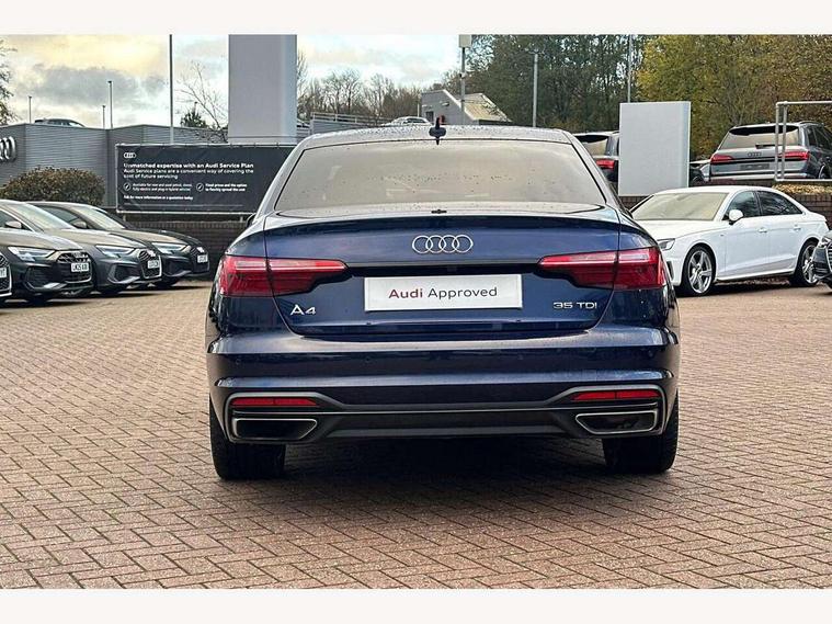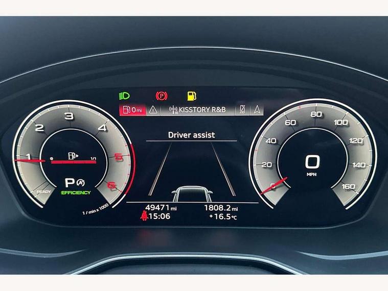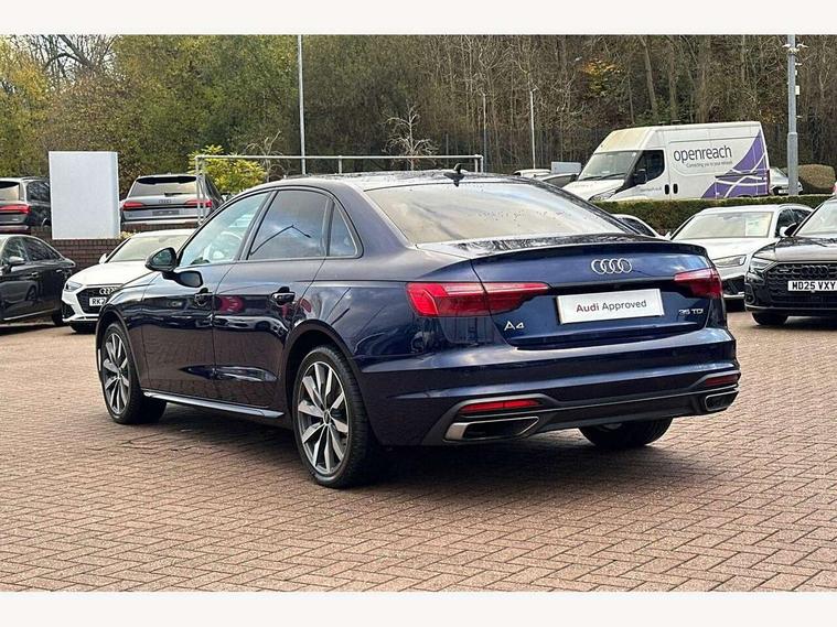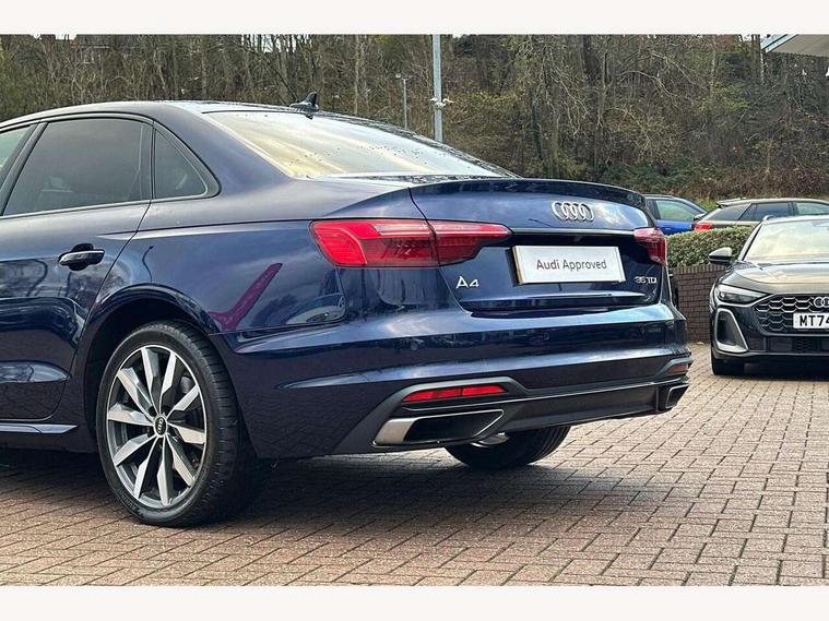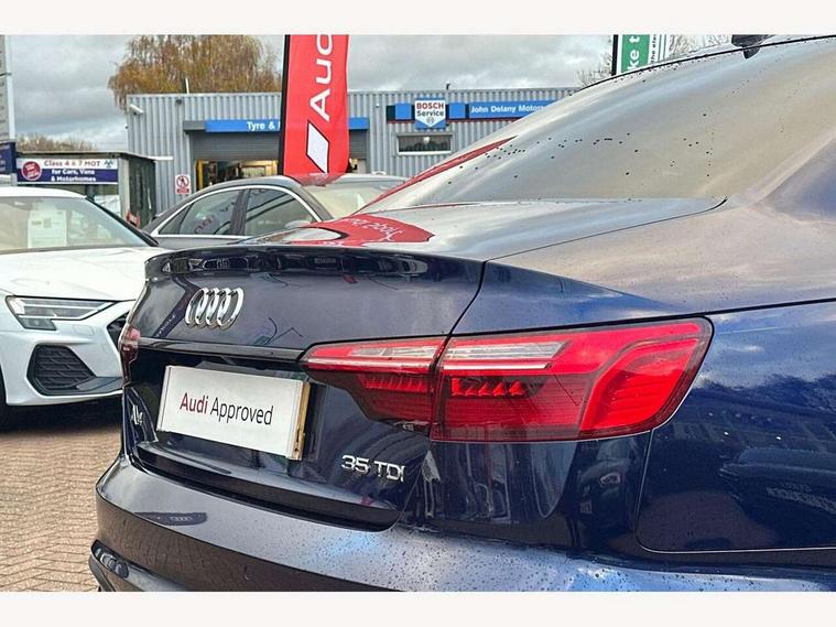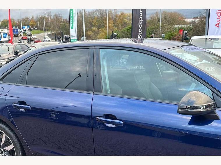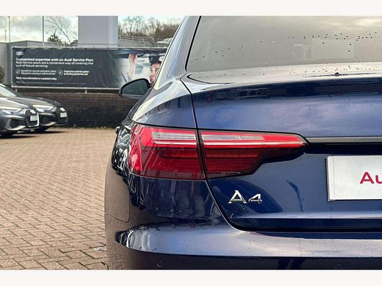 Audi connect safety and service (e-call), Audi connect with Amazon Alexa Integration, Audi drive select, Audi parking system plus with front and rear sensors, Audi smartphone interface, Audi virtual cockpit, Automatic start-stop system with coasting functionality and efficiency programme, Bluetooth interface, Cruise control system with speed limiter, Electric boot lid release, Electromechanical power steering, Email, calendar and text messages displayed via MMI, MMI Navigation plus with MMI touch includes 10.1" high resolution colour MMI display, 3D map, Rear view camera, Voice control system, Comfort dynamic suspension, 2 USB charging ports, 8 passive loudspeakers, DAB digital radio reception, Auto dimming rear view mirror, Body colour door handles, Body colour side sill trim, Body coloured door mirrors, Electrically folding auto dimming/adjustable/heated door mirrors with LED side indicators and kerb view function for passenger side, LED headlights and rear lights with LED daytime running lights, Matt aluminium silver tailpipe trim, Privacy glass, Rain and light sensors, Rear diffuser in matt titanium black with trim strip in matt aluminium silver, Sport front and rear bumpers with side skirts, Windscreen with acoustic glazing, 3 spoke high multi-function leather sport steering wheel with paddle shift and height and reach adjustable, 4 way electric lumbar support for driver and front passenger, 40/20/40 split folding 3 rear seat bench in 3 parts with rear centre armrest, Deluxe 3 zone electronic climate control, Door sill trims with aluminium inlay, Front and rear head restraints, Front centre armrest, Heated front seats, ISOFIX child seat mounting and top tether, Manual seat adjustment, Twin leather upholstery + front sports seats, High gloss package - A4, LED Interior light pack - A4/S4, Titanium black styling pack - A4 Saloon, 3 rear seatbelts, 6 airbags - Driver, front passenger, curtain and side windows, Electronic Stabilisation Control (ESC) including ABS, ASR and EDL, Hill hold assist, Multi collision brake assist, Pop-up bonnet for pedestrian protection, Pre sense city, Seatbelt monitoring, Warning triangle and first aid kit, Anti theft alarm, Anti theft wheel bolts, Keyless Go, Aluminium ellipse silver inlays, 18" 10 spoke dynamic design alloy wheels, Tool kit, Tyre repair kit,