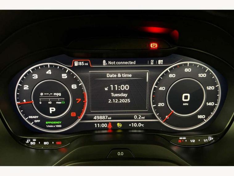 Audi connect navigation and infotainment includes innovative services, Audi connect remote and control connects your vehicle to your smartphone, Audi drive select, Audi smartphone interface, Audi virtual cockpit, Automatic start/stop system with recuperation, Bluetooth interface includes bluetooth audio streaming, Cruise control, MMI navigation plus with MMI touch, Power operated tailgate, Progressive steering, Rear parking sensors, 2 x SDXC card reader, 8 passive loudspeakers, DAB Digital radio, DVD Drive, Auto dimming rear view mirror, Black window trims, Body colour door mirrors, Electrically adjustable, folding, auto dimming and heated door mirrors with integrated LED side indicators, Front windscreen with grey tinted sunband, S Line badges on the front wings, S Line body styling - front and rear bumpers, side skirts, radiator grille, rear diffuser insert and front air intakes, Wheel arch trims in manhattan grey, 4-way electric lumbar support for front seats including seat height adjustment for both front seat, 60/40 split folding rear seat bench, Black cloth headlining, Front and rear head restraints, Front centre armrest, Front/rear floor mats, Height/reach adjust steering wheel, Illuminated door sill trims with S logo, ISOFIX child seat mounting for front passenger with airbag deactivation and outer rear seat including top tether attachment point for outer rear seats, Stainless steel pedals, Tool kit, 3x3 point rear seatbelts, 6 airbags - Front, curtain and front side airbags, Electromechanical parking brake, Electronic stabilisation control including ABS, ASR and EDL, Hill hold assist, Pre-sense front with pedestrian recognition, Seatbelt monitoring, Tyre pressure warning light, Warning triangle and first aid kit, Anti theft alarm, Anti theft wheel bolts, Electronically operated child locks, Aluminium interior element, Matt brushed aluminium trim inlays,