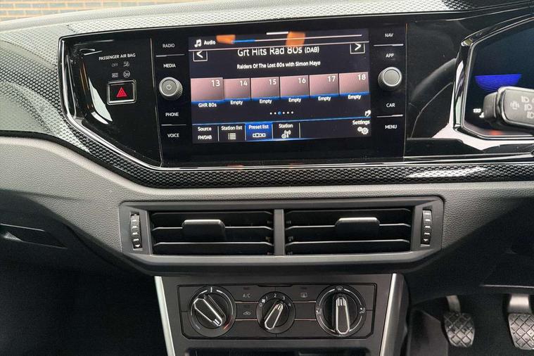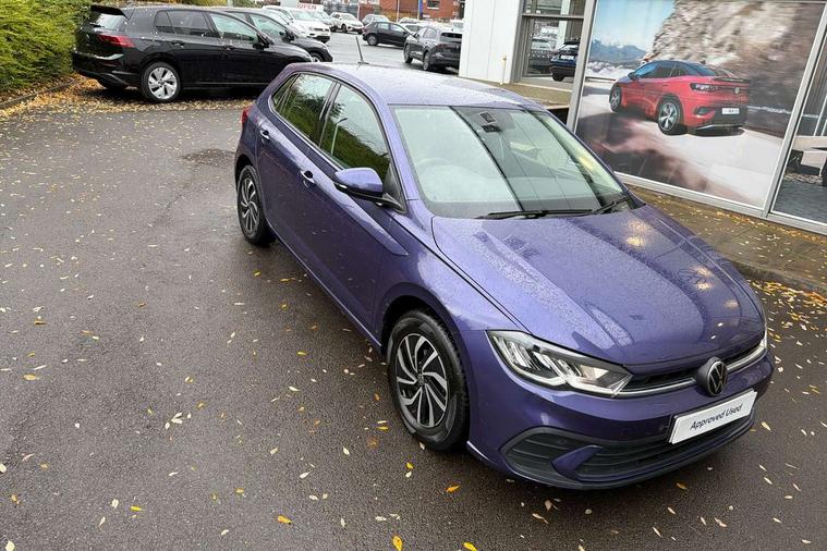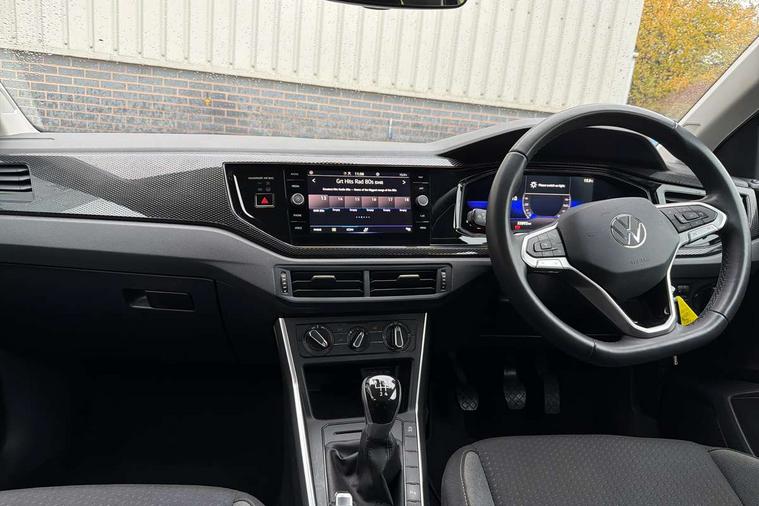 Adaptive cruise control without follow-to-stop and speed limiter, Bluetooth mobile phone interface, Driver alert system, Emergency call service, Front assist system, Power assisted speed sensitive steering, Preparation for We connect and We connect plus, Speedo and rev counter, electronic odometer, trip, service interval display and fuel gauge, Standard rear axle, Travel Assist - Lane keeping system and traffic jam assist, Travel assist including emergency assist, Trip computer, Warning signal and warning light for front and rear seatbelts not fastened, Washer fluid level indicator, Wireless app connect, Front wheel drive, Rear shock absorpion, Start-stop system with battery regeneration (recuperation - energy recovery during braking), DAB Digital radio, Diversity antenna for FM reception, Front and rear 6 speakers, Automatic dimming interior rear view mirror, Body colour bumpers, Body colour door handles, Body colour door mirrors, Electric front windows, Heat insulating darkened glass in side and rear windows, Heat insulating glass windscreen, Power folding adjustable/heated exterior mirrors and front passenger exterior mirror lowering function, Rain sensor, Rear electric windows, Rear fog light, Rear side wing doors, Rear windscreen washer and wiper with interval delay, Third brake light, 12V power socket in centre console, 2 front and 2 rear reading lights, 2 USB-C ports in the front, 2 USB-C charging sockets on the center console in the rear, 3 rear head restraints, 60/40 split folding rear seat and rear seat bench not split, Ceramique headliner, Chrome plated radiator grille inserts, air vent surrounds and light switch surrounds, Door and side trim panel, Driver and front passenger seat height adjustment, Driver/passenger sunvisors with illuminated vanity mirrors, Front centre armrest, Front seat backrest storage pockets, Front standard seats, Handbrake lever handle in leather, Hartley/Thomas cloth upholstery, Isofix child seat preparation easy-fit (for two outer rear seats, and front passenger seat) compatible with I-size, Leather trimmed gear knob, Luggage compartment cover, Luggage compartment floor, Luggage compartment lighting, Multifunction steering wheel, Single front passenger seat, Standard pedal cluster, Light and vision pack - Polo, 3 point height adj front seatbelts + pretensioners, 3x3 point rear seatbelts, ABS, Driver and front passenger airbag with front passenger airbag deactivation, Drivers and front passengers safety optimised head restraints, ESC (Electronic stability control) + EDL (Electronic Differntial lock) and ASR (Traction control), Extended and predictive pedestrian/ cyclist protection, Front curtain and side airbags with center airbag, Front disc brakes, Hill hold control, Manual child lock in rear doors, Rear drum brakes, Single tone horn, Tyre pressure loss indicator, Alarm with interior protection, Anti-theft alarm system with interior monitoring, backup horn, and towing protection, Anti-theft wheel bolts, Electronic engine immobiliser, Lava stone black gloss/matt decorative inserts in dash and front door panels, Low rolling resistance tyres,