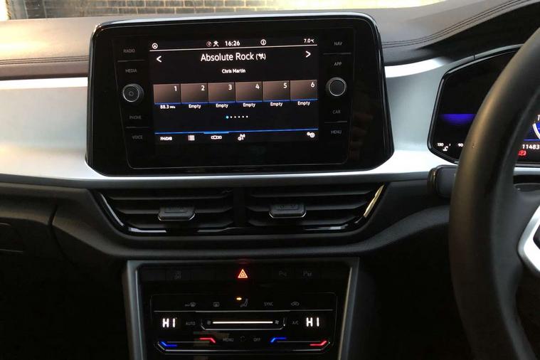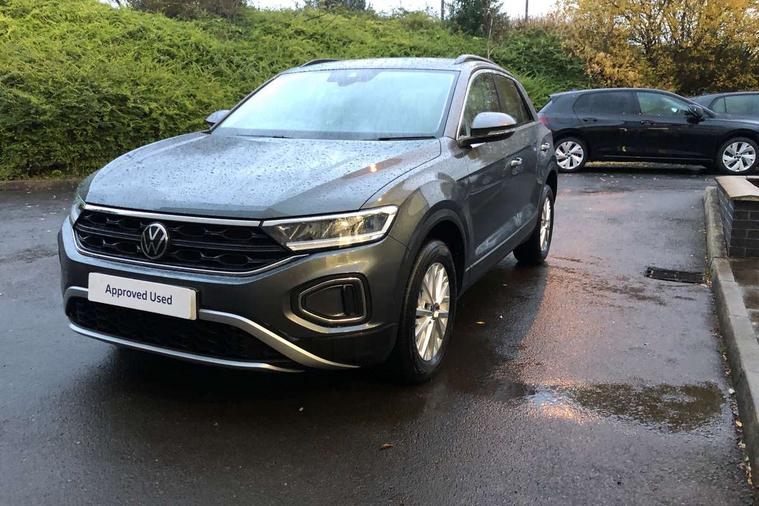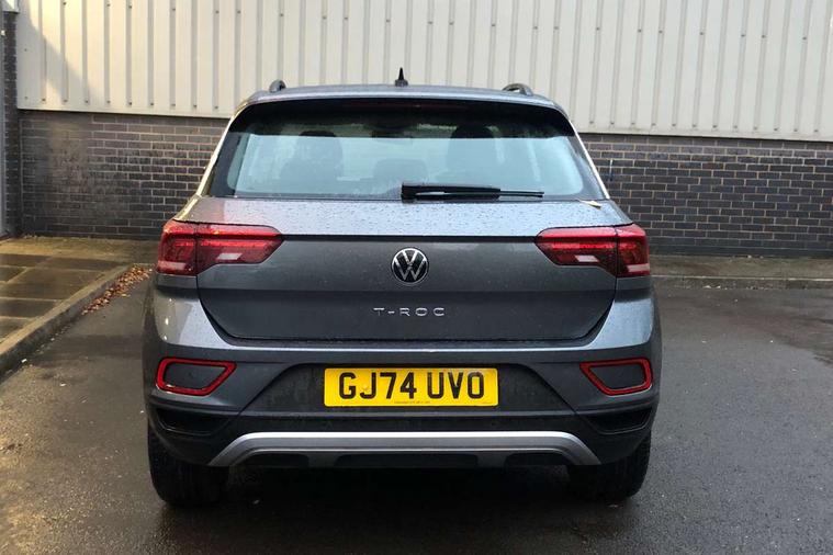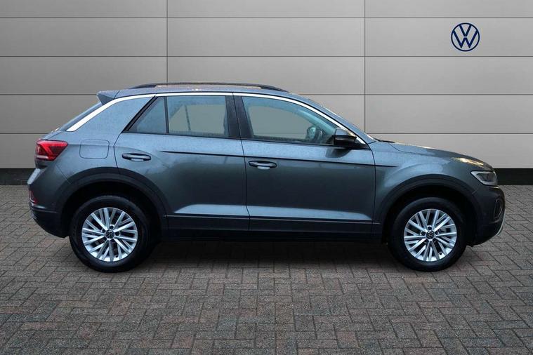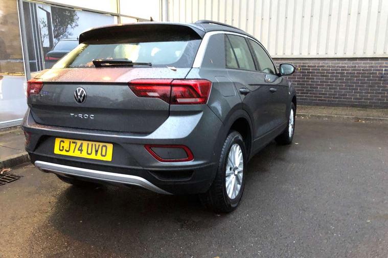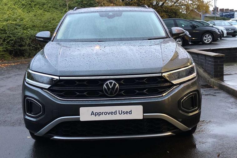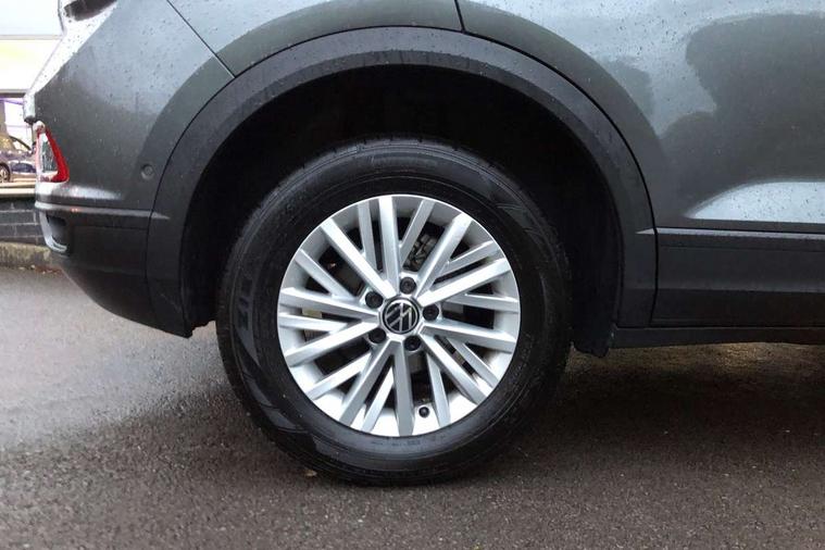 Advanced driver attention and drowsiness monitor, Dynamic road sign display, Emergency call service, Lane keeping system Lane Assist, Mobile phone interface, Modified key software - reduce switch off time for key status change to Long no motion, Online services, Park assist including front and rear parking sensors, Power assisted speed sensitive steering, Service interval indicator, Tailgate/trunk lid release from outside, Think blue trainer driver tips and journey analysis, Warning sound and light for front seatbelts unfastened, Wireless app connect, Wireless Smartphone charger, Battery regeneration during braking, Front shock absorption, Rear shock absorption chassis with increased ride height, Start/stop function with battery regeneration, DAB Digital radio, Diversity antenna for FM reception, Front and rear 6 speakers, Music playback - MP3, WMA and AAC files, Premium USB cable in choice of either Apple or Android smartphone compatibility, SD card slot, Simultaneous pairing of 2 compatible mobile devices, Title and cover art display, We Connect and We Connect Plus functionality, Auto dimming interior rear view mirror, Automatic hazard lights activation under emergency braking, Automatic headlight control with LED separate daytime running lights with coming/leaving home function, Black roof rails, Body coloured bumpers and radiator grille with chrome trim and front fog lamps with chrome bezel, Body coloured exterior mirror housings and door handles, Electrically adjustable and heated door mirrors, Extended roof spoiler, Exterior mirrors aspherical on driver side, convex on front passenger side, External USB type C socket and charging sockets, Front windscreen wiper with intermittent wipe and 4 position delay, Heated rear window, LED 3rd brake light, LED rear combination lamps, LED rear number plate lights, Power windows with comfort operation and circuit breaker, Rain sensor, Rear exhaust tailpipe, Rear fog light on one side and reversing lights on both sides, Rear side wing doors, Rear wash/wipe with intermittent wipe setting, Remote electrically foldable door mirrors, puddle lights and reverse activated passenger's door mirror, 12V power socket in centre console, 3 rear head restraints, 3 seat bench in 2nd row, 4 load lashing points in luggage compartment, Air care climatronic air conditoning system with active combination filter and 2-zone temperature control, Ambient lighting with mirror logo projection, Cloth upholstery, Door and side trim panel in cloth, Drawer under drivers seat, Driver/front passenger seat height adjustment, Front centre armrest, Front comfort sports seats, Front cupholders x 2, Front reading light, Front seat back storage pockets, Glove compartment door with light, Instrument lighting, white adjustable panel illumination, Interior light delay, Isofix child seat preparation, Leather gearshift handle, Load-through provision with cup holder when folded down ('Unsplit rear seat bench, split folding backrest, with centre armrest), Luggage compartment lighting, Lumbar support for driver's and front passengers seat, Non-folding front passenger seat backrest, Single front passenger seat, Storage compartment in left and right luggage area, Storage compartment in rear doors, Storage compartments in driver and front passenger doors, Sunvisors with illuminated vanity mirrors, Variable boot floor, height adjustable and removable, Driver assistance pack without proactive passenger protection - T-Roc Life/Match, 3 point height adj front seatbelts + pretensioners, 3 point seatbelts in outer rear with ECE label, ABS, Child locks on rear doors, City emergency braking and pedestrian monitoring, Driver and front passenger airbag with front passenger airbag deactivation, Driver and front passenger safety-optimised head restraints, Drivers seatbelt reminder, Electronic parking brake, Electronic Stability Control (ESC) inc EDL (Electronic Differential Lock) and ASR (Traction Control), Front and rear passengers curtain airbag system including front side airbags, Front disc brakes, Hill start assist, Predictive pedestrian protection, Rear disc brakes, Two tone horn, Tyre pressure loss indicator, Volkswagen roadside assistance, Alarm with interior protection, Pewter matt decorative inserts for intrument panel, centre console and door panels at the front, Trims for alloy wheels,