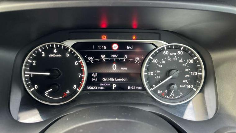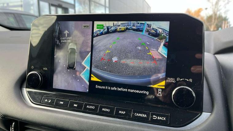 Android auto/Apple CarPlay (Wired), Blind spot warning, Drive modes (sport, normal, eco), Electric speed sensitive power steering, Emergency and breakdown call, Full Digital 12.3" TFT Digital Combimeter, Google maps services - search, weather, 3D maps and Google street view, Idle stop/start system, Intelligent around view monitor, Intelligent Cruise control (ICC), Intelligent driver alert system, Intelligent forward collision warning, Intelligent lane intervention, Lane departure prevention, Lane departure warning system, Maximum speed limiter, Moving object detection, Nissan connect 12.3 inch touchscreen infotainment system, Nissan connect navigation, Push button starter, Rear cross traffic alert, Rear parking sensors, Rear view camera, Remote control services - door locks, lights, horn and car locator, Telematics - notifications and connectivity services, TomTom live traffic services, Traffic sign recognition with legal speed adjustment, Trip computer, Virtual personal assistant and firmware over the air capability, Wireless apple carplay, 6 speakers, AM/FM audio system with DAB, Bluetooth audio streaming, Front USB connections (Type-A and Type-C), Rear USB charging only ports (Type-A and Type-C), Auto dimming rear view mirror, Auto rear wiper when reversing, Automatic hazard signal with emergency stop signal, Body colour mirror caps, Body coloured door handles, Bodyside mouldings, Chrome side window finisher, Door handle with button, Dusk sensor, Electric auto folding door mirrors, Electrically adjustable and heated door mirrors with LED turn indicator, Follow me home headlights, High beam assist, Intelligent auto headlights, LED daytime running lights, LED Headlights, LED rear lights, One touch front and rear electric windows with remote opening and closing, Partially body coloured bumpers, Privacy glass, Rear bumper with graphite insert, Rear reversing light (bulb lighting), Rear roof spoiler, Rear side wing doors, Rear styling plate, Shark fin antenna, Splash free rain sensing wipers, Super UV and infrared cut glass, Three blink turn signal, 12v power socket in dashboard and luggage, 2 way electrical driver lumbar adjustment, 2x Rear coat hooks, 3 bench rear seats in 2nd row, 3 rear headrests, 4 folding assist grip, 6 Luggage hooks - 4 on floor, 2 on side, 6-way manually adjustable driver's seat, 60/40 split folding rear seat bench, Ambient lighting around centre console, Centre console storage tray, Chrome interior door handles, Cloth monoform upholstery, Driver and front passenger sunvisors with illuminated vanity mirrors, Driver seat back pocket, Dual zone automatic climate control with pollen filter, Front and rear door storage, Front centre console and armrest, Front cupholders x 2, Front door with bottle holders, Glovebox with light, Hard trunk cover, Height adjustable front headrests, Height adjustable passenger seat, Leather steering wheel, Luggage board system, Luggage space lighting, Manually adjustable passenger (slide recline + lifter), Multifunction steering wheel, Passenger seat back pocket, Rear armrest with 2 cupholders, Rear door bottle holders, Single front passenger seat, Soft PVC kneepad, Steering wheel gearshift paddles, Steering wheel switches, Sunglasses holder, Tilt/telescopic adjustable steering wheel, Two rear isofix child seat anchorage points with top tether, Welcome light and console tray ambient lighting, 3x3 point rear seatbelt pretensioners + load limiters, ABS with EBD and brake assist, Active brake limited slip, Auto hold function, Child locks on rear doors, Curtain and front side, far side airbags, Driver and passenger airbags, Driver, passenger and 2nd row rear seat belt reminder, Electronic parking brake, Front seatbelt pretensioners + load limiters, Height adjustable front seatbelts, Hill start assist, Intelligent blind spot intervention, Intelligent front emergency braking with pedestrian, cyclist recognition and junction assist, Intelligent rear automatic braking, Tyre pressure monitoring system, Vehicle dynamic control, Capless fuel filler, Engine immobiliser, Nissan i-key, Remote central door locking with deadlocking, Thatcham Cat.1 alarm, Interior instrumental panel B finisher, 18" Diamond cut alloy wheels, Tyre puncture repair kit,