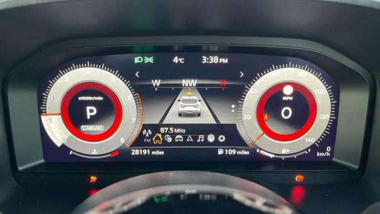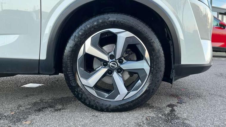 Android auto/Apple CarPlay (Wired), Blind spot warning, Drive modes (sport, normal, eco), Electric speed sensitive power steering, Emergency and breakdown call, Full Digital 12.3" TFT Digital Combimeter, Google maps services - search, weather, 3D maps and Google street view, Idle stop/start system, Intelligent around view monitor, Intelligent Cruise control (ICC), Intelligent driver alert system, Intelligent forward collision warning, Intelligent lane intervention, Lane departure prevention, Lane departure warning system, Maximum speed limiter, Moving object detection, Nissan connect 12.3 inch touchscreen infotainment system, Nissan connect navigation, Push button starter, Rear cross traffic alert, Rear parking sensors, Rear view camera, Remote control services - door locks, lights, horn and car locator, Telematics - notifications and connectivity services, TomTom live traffic services, Traffic sign recognition with legal speed adjustment, Trip computer, Virtual personal assistant and firmware over the air capability, Wireless apple carplay, 6 speakers, AM/FM audio system with DAB, Bluetooth audio streaming, Front USB connections (Type-A and Type-C), Rear USB charging only ports (Type-A and Type-C), Auto dimming rear view mirror, Auto rear wiper when reversing, Automatic hazard signal with emergency stop signal, Body colour mirror caps, Body coloured door handles, Bodyside mouldings, Chrome side window finisher, Door handle with button, Electric auto folding door mirrors, Electrically adjustable and heated door mirrors with LED turn indicator, Follow me home headlights, High beam assist, Intelligent auto headlights, LED daytime running lights, LED Headlights, LED rear lights, One touch front and rear electric windows with remote opening and closing, Partially body coloured bumpers, Privacy glass, Rear bumper with graphite insert, Rear reversing light (bulb lighting), Rear roof spoiler, Rear side wing doors, Rear styling plate, Shark fin antenna, Splash free rain sensing wipers, Super UV and infrared cut glass, Three blink turn signal, 12v power socket in dashboard and luggage, 2x Rear coat hooks, 3 bench rear seats in 2nd row, 3 rear headrests, 4 folding assist grip, 6 Luggage hooks - 4 on floor, 2 on side, 6-way manually adjustable driver's seat, 60/40 split folding rear seat bench, Ambient lighting around centre console, Centre console storage tray, Chrome interior door handles, Cloth monoform upholstery, Driver and front passenger sunvisors with illuminated vanity mirrors, Driver seat back pocket, Dual zone automatic climate control with pollen filter, Electrically adjustable lumbar support for driver, Front and rear door storage, Front centre console and armrest, Front cupholders x 2, Front door with bottle holders, Glovebox with light, Hard trunk cover, Height adjustable driver's seat, Height adjustable front headrests, Height adjustable passenger seat, Leather steering wheel, Luggage board system, Luggage space lighting, Manually adjustable passenger (slide recline + lifter), Multifunction steering wheel, Passenger seat back pocket, Rear armrest with 2 cupholders, Rear door bottle holders, Single front passenger seat, Soft PVC kneepad, Steering wheel gearshift paddles, Steering wheel switches, Sunglasses holder, Tilt/telescopic adjustable steering wheel, Two rear isofix child seat anchorage points with top tether, Welcome light and console tray ambient lighting, 3x3 point rear seatbelt pretensioners + load limiters, ABS with EBD and brake assist, Active brake limited slip, Auto hold function, Child locks on rear doors, Curtain and front side, far side airbags, Driver and passenger airbags, Driver, passenger and 2nd row rear seat belt reminder, Electronic parking brake, Front seatbelt pretensioners + load limiters, Height adjustable front seatbelts, Hill start assist, Intelligent blind spot intervention, Intelligent front emergency braking with pedestrian, cyclist recognition and junction assist, Intelligent rear automatic braking, Tyre pressure monitoring system, Vehicle dynamic control, Capless fuel filler, Engine immobiliser, Intelligent Key, Remote central door locking with deadlocking, Thatcham Cat.1 alarm, Interior instrumental panel B finisher, 18" Diamond cut alloy wheels, Tyre puncture repair kit,