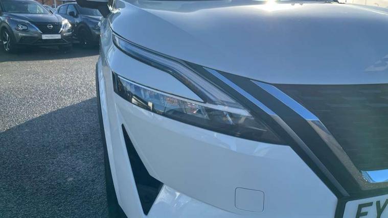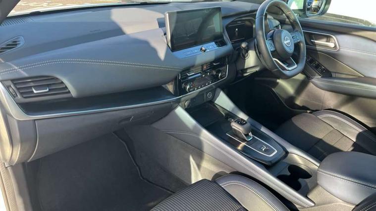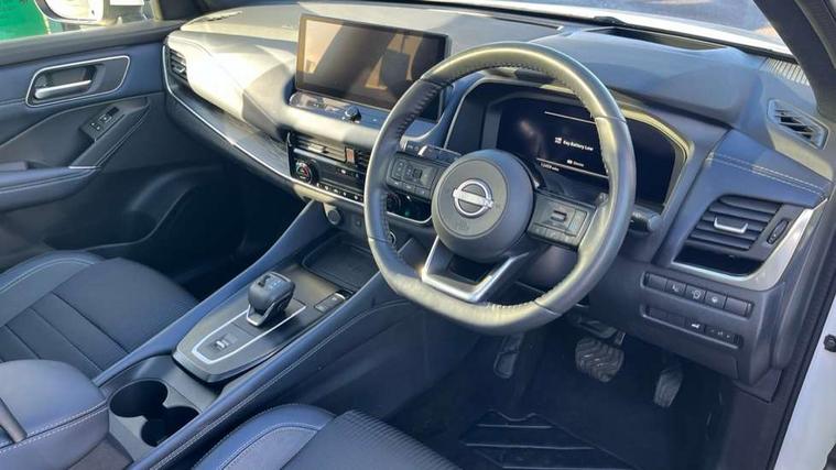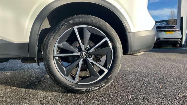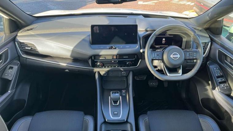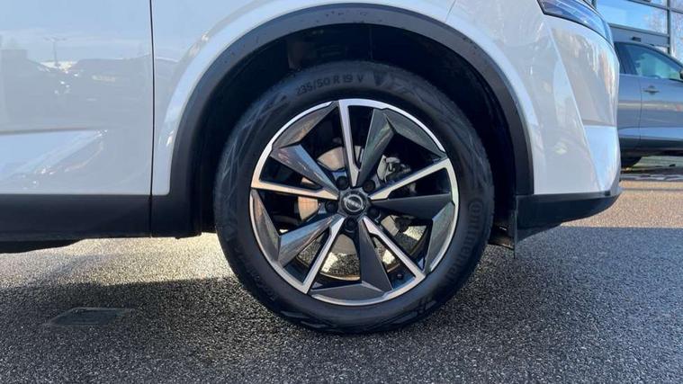 Advanced windscreen head up display, Android auto/Apple CarPlay (Wired), Blind spot warning, Drive modes (sport, normal, eco), Electric speed sensitive power steering, Emergency and breakdown call, Front and rear parking sensors, Full Digital 12.3" TFT Digital Combimeter, Google maps services - search, weather, 3D maps and Google street view, Hands free power tailgate, Idle stop/start system, Intelligent around view monitor, Intelligent Cruise control (ICC), Intelligent driver alert system, Intelligent forward collision warning, Intelligent lane intervention, Lane departure prevention, Lane departure warning system, Lane keep assist, Moving object detection, Nissan connect 12.3 inch touchscreen infotainment system, Nissan connect navigation, ProPilot, Push button starter, Rear cross traffic alert, Rear view camera, Remote control services - door locks, lights, horn and car locator, Telematics - notifications and connectivity services, TomTom live traffic services, Traffic jam pilot, Traffic sign recognition with legal speed adjustment, Trip computer, Virtual personal assistant and firmware over the air capability, Wireless apple carplay, Wireless charging pad, 6 speakers, AM/FM audio system with DAB, Bluetooth audio streaming, Front USB connections (Type-A and Type-C), Rear USB charging only ports (Type-A and Type-C), Auto dimming rear view mirror, Auto rear wiper when reversing, Automatic hazard signal with emergency stop signal, Body colour mirror caps, Body coloured door handles, Bodyside mouldings, Chrome side window finisher, Door handle with button, Electric auto folding door mirrors, Electrically adjustable and heated door mirrors with LED turn indicator, Follow me home headlights, Front and rear LED turning signals, Headlights auto levelling system, Intelligent auto headlights, LED daytime running lights, LED headlights with adaptive driving beam, LED rear lights, One touch front and rear electric windows with remote opening and closing, Partially body coloured bumpers, Privacy glass, Rear bumper with graphite insert, Rear reversing light (bulb lighting), Rear roof spoiler, Rear side wing doors, Rear styling plate, Shark fin antenna, Splash free rain sensing wipers, Super UV and infrared cut glass, Thermaclear heated windscreen, Three blink turn signal, 12v power socket in dashboard and luggage, 2x Rear coat hooks, 3 bench rear seats in 2nd row, 3 rear headrests, 4 folding assist grip, 6 Luggage hooks - 4 on floor, 2 on side, 60/40 split folding rear seat bench, Ambient lighting around centre console, Ambient lighting in front doors, Centre console storage tray, Chrome interior door handles, Cloth/syntech leather monoform upholstery, Dark black/blueish PVC wrapping, Dark headlining, Driver and front passenger sunvisors with illuminated vanity mirrors, Driver seat back pocket, Dual zone automatic climate control with pollen filter, Electrically adjustable driver seat, Electrically adjustable lumbar support for driver, Front and rear door storage, Front centre console and armrest, Front cupholders x 2, Front door with bottle holders, Glovebox with light, Hard trunk cover, Heated front seats, Heated steering wheel, Height adjustable driver's seat, Height adjustable front headrests, Height adjustable passenger seat, Leather steering wheel, Luggage board system, Luggage space lighting, Manual lumbar support on passenger seat, Manually adjustable passenger (slide recline + lifter), Multifunction steering wheel, Passenger seat back pocket, Rear armrest with 2 cupholders, Rear door bottle holders, Single front passenger seat, Soft PVC kneepad, Steering wheel gearshift paddles, Steering wheel switches, Tilt/telescopic adjustable steering wheel, Two rear isofix child seat anchorage points with top tether, Welcome light and doors with console tray ambient lighting, Glass roof pack with roof rails - Qashqai, 3x3 point rear seatbelt pretensioners + load limiters, ABS with EBD and brake assist, Active brake limited slip, Auto hold function, Child locks on rear doors, Curtain and front side, far side airbags, Driver and passenger airbags, Driver, passenger and 2nd row rear seat belt reminder, Electronic parking brake, Front seatbelt pretensioners + load limiters, Height adjustable front seatbelts, Hill start assist, Intelligent blind spot intervention, Intelligent front emergency braking with pedestrian, cyclist recognition and junction assist, Intelligent rear automatic braking, Tyre pressure monitoring system, Vehicle dynamic control, Capless fuel filler, Engine immobiliser, Intelligent Key, Remote central door locking with deadlocking, Thatcham Cat.1 alarm, Interior instrumental panel C finisher, 19" Alloy wheels, Tyre puncture repair kit,