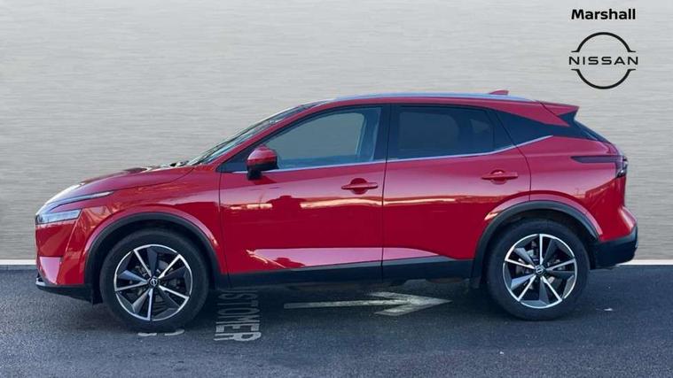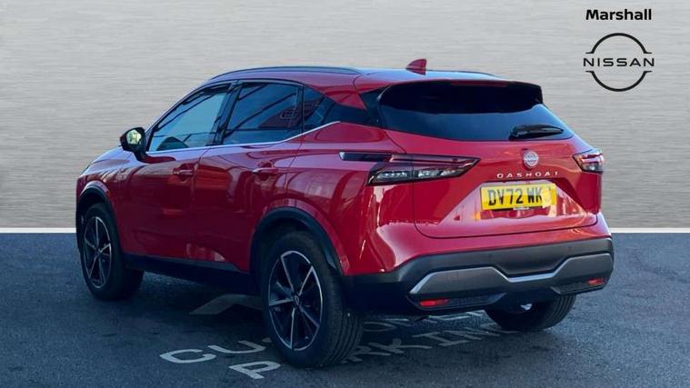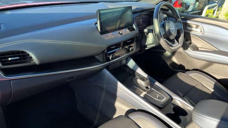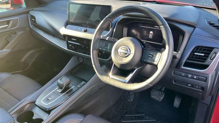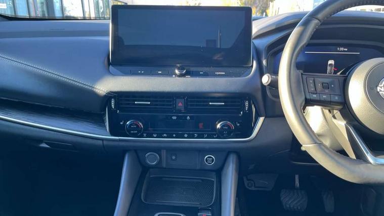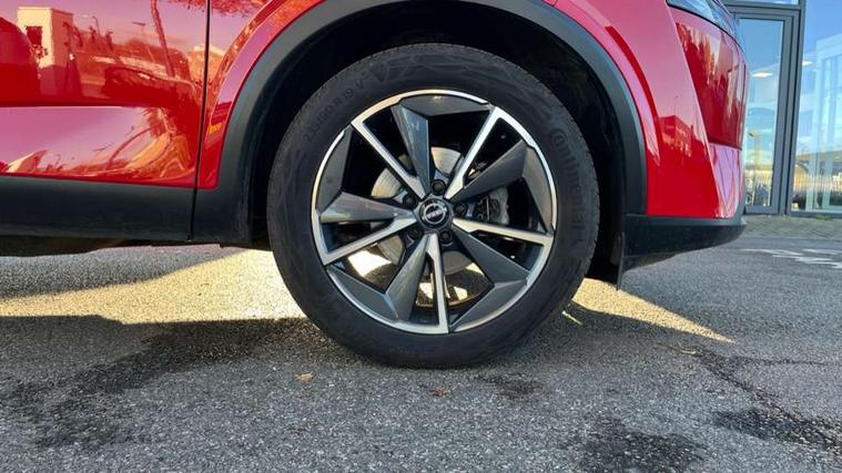 Advanced windscreen head up display, Android auto/Apple CarPlay (Wired), Blind spot warning, Drive modes (sport, normal, eco), Electric speed sensitive power steering, Emergency and breakdown call, Front and rear parking sensors, Full Digital 12.3" TFT Digital Combimeter, Google maps services - search, weather, 3D maps and Google street view, Hands free power tailgate, Idle stop/start system, Intelligent around view monitor, Intelligent Cruise control (ICC), Intelligent driver alert system, Intelligent forward collision warning, Intelligent lane intervention, Lane departure prevention, Lane departure warning system, Lane keep assist, Moving object detection, Nissan connect 12.3 inch touchscreen infotainment system, Nissan connect navigation, ProPilot, Push button starter, Rear cross traffic alert, Rear view camera, Remote control services - door locks, lights, horn and car locator, Telematics - notifications and connectivity services, TomTom live traffic services, Traffic jam pilot, Traffic sign recognition with legal speed adjustment, Trip computer, Virtual personal assistant and firmware over the air capability, Wireless apple carplay, Wireless charging pad, 6 speakers, AM/FM audio system with DAB, Bluetooth audio streaming, Front USB connections (Type-A and Type-C), Rear USB charging only ports (Type-A and Type-C), Auto dimming rear view mirror, Auto rear wiper when reversing, Automatic hazard signal with emergency stop signal, Body colour mirror caps, Body coloured door handles, Bodyside mouldings, Chrome side window finisher, Door handle with button, Electric auto folding door mirrors, Electrically adjustable and heated door mirrors with LED turn indicator, Follow me home headlights, Front and rear LED turning signals, Headlights auto levelling system, Intelligent auto headlights, LED daytime running lights, LED headlights with adaptive driving beam, LED rear lights, One touch front and rear electric windows with remote opening and closing, Partially body coloured bumpers, Privacy glass, Rear bumper with graphite insert, Rear reversing light (bulb lighting), Rear roof spoiler, Rear side wing doors, Rear styling plate, Shark fin antenna, Splash free rain sensing wipers, Super UV and infrared cut glass, Thermaclear heated windscreen, Three blink turn signal, 12v power socket in dashboard and luggage, 2x Rear coat hooks, 3 bench rear seats in 2nd row, 3 rear headrests, 4 folding assist grip, 6 Luggage hooks - 4 on floor, 2 on side, 60/40 split folding rear seat bench, Ambient lighting around centre console, Ambient lighting in front doors, Centre console storage tray, Chrome interior door handles, Cloth/syntech leather monoform upholstery, Dark black/blueish PVC wrapping, Dark headlining, Driver and front passenger sunvisors with illuminated vanity mirrors, Driver seat back pocket, Dual zone automatic climate control with pollen filter, Electrically adjustable driver seat, Electrically adjustable lumbar support for driver, Front and rear door storage, Front centre console and armrest, Front cupholders x 2, Front door with bottle holders, Glovebox with light, Hard trunk cover, Heated front seats, Heated steering wheel, Height adjustable driver's seat, Height adjustable front headrests, Height adjustable passenger seat, Leather steering wheel, Luggage board system, Luggage space lighting, Manual lumbar support on passenger seat, Manually adjustable passenger (slide recline + lifter), Multifunction steering wheel, Passenger seat back pocket, Rear armrest with 2 cupholders, Rear door bottle holders, Single front passenger seat, Soft PVC kneepad, Steering wheel gearshift paddles, Steering wheel switches, Tilt/telescopic adjustable steering wheel, Two rear isofix child seat anchorage points with top tether, Welcome light and doors with console tray ambient lighting, Glass roof pack with roof rails - Qashqai, 3x3 point rear seatbelt pretensioners + load limiters, ABS with EBD and brake assist, Active brake limited slip, Auto hold function, Child locks on rear doors, Curtain and front side, far side airbags, Driver and passenger airbags, Driver, passenger and 2nd row rear seat belt reminder, Electronic parking brake, Front seatbelt pretensioners + load limiters, Height adjustable front seatbelts, Hill start assist, Intelligent blind spot intervention, Intelligent front emergency braking with pedestrian, cyclist recognition and junction assist, Intelligent rear automatic braking, Tyre pressure monitoring system, Vehicle dynamic control, Capless fuel filler, Engine immobiliser, Intelligent Key, Remote central door locking with deadlocking, Thatcham Cat.1 alarm, Interior instrumental panel C finisher, 19" Alloy wheels, Tyre puncture repair kit,