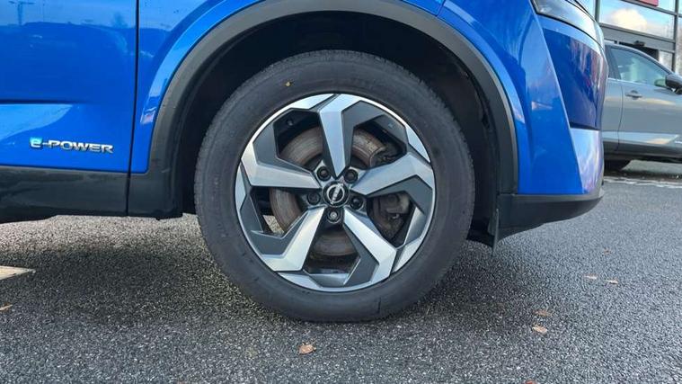 Blind spot warning, Drive modes (sport, normal, eco), e-Pedal step, Electric speed sensitive power steering, Emergency and breakdown call, Front and rear parking sensors, Full Digital 12.3" TFT Digital Combimeter, Google maps services - search, weather, 3D maps and Google street view, Idle stop/start system, Intelligent around view monitor, Intelligent Cruise control (ICC), Intelligent driver alert system, Intelligent forward collision warning, Intelligent lane intervention, Lane departure prevention, Lane departure warning system, Maximum speed limiter, Moving object detection, Nissan connect 12.3 inch touchscreen infotainment system, Nissan connect navigation, Push button starter, Rear cross traffic alert, Rear view camera, Remote control services - door locks, lights, horn and car locator, Telematics - notifications and connectivity services, TomTom live traffic services, Traffic sign recognition with legal speed adjustment, Trip computer, Virtual personal assistant and firmware over the air capability, Wireless Apple CarPlay and wired Android Auto, 6 speakers, AM/FM audio system with DAB, Bluetooth audio streaming, Front USB connections (Type-A and Type-C), Rear USB charging only ports (Type-A and Type-C), Auto dimming rear view mirror, Auto rear wiper when reversing, Automatic hazard signal with emergency stop signal, Body colour mirror caps, Body coloured door handles, Bodyside mouldings, Chrome side window finisher, Door handle with button, e-POWER badging, Electric auto folding door mirrors, Electrically adjustable and heated door mirrors with LED turn indicator, Follow me home headlights, High beam assist, Intelligent auto headlights, LED 3rd brake light, LED daytime running lights, LED Headlights, LED rear lights, One touch front and rear electric windows with remote opening and closing, Partially body coloured bumpers, Privacy glass, Rear bumper with graphite insert, Rear reversing light (bulb lighting), Rear roof spoiler, Rear side wing doors, Rear styling plate, Shark fin antenna, Splash free rain sensing wipers, Super UV and infrared cut glass, Three blink turn signal, 12v power socket in dashboard and luggage, 2x Rear coat hooks, 3 bench rear seats in 2nd row, 3 rear headrests, 4 folding assist grip, 6-way manually adjustable driver's seat, 60/40 split folding rear seat bench, Ambient lighting around centre console, Centre console storage tray, Chrome interior door handles, Cloth monoform upholstery, Driver and front passenger sunvisors with illuminated vanity mirrors, Driver seat back pocket, Dual zone automatic climate control with pollen filter, e-POWER shifter, Front and rear door storage, Front centre console and armrest, Front cupholders x 2, Front door with bottle holders, Glovebox with light, Hard trunk cover, Height adjustable driver's seat, Height adjustable front headrests, Height adjustable passenger seat, Luggage board system, Luggage space lighting, Manually adjustable passenger (slide recline + lifter), Multifunction steering wheel, Passenger seat back pocket, Rear armrest with 2 cupholders, Rear door bottle holders, Single front passenger seat, Soft PVC kneepad, Steering wheel switches, Sunglasses holder, Tilt/telescopic adjustable steering wheel, Two rear isofix child seat anchorage points with top tether, Welcome light and console tray ambient lighting, 3x3 point rear seatbelt pretensioners + load limiters, ABS with EBD and brake assist, Active brake limited slip, Auto hold function, Child locks on rear doors, Curtain and front side, far side airbags, Driver and passenger airbags, Driver, passenger and 2nd row rear seat belt reminder, Electronic parking brake, Front seatbelt pretensioners + load limiters, Height adjustable front seatbelts, Hill start assist, Intelligent blind spot intervention, Intelligent front emergency braking with pedestrian, cyclist recognition and junction assist, Intelligent rear automatic braking, Tyre pressure monitoring system, Vehicle dynamic control, Capless fuel filler, Engine immobiliser, Intelligent Key, Remote central door locking with deadlocking, Thatcham Cat.1 alarm, Interior instrumental panel B finisher, 18" Diamond cut alloy wheels, Tyre puncture repair kit,