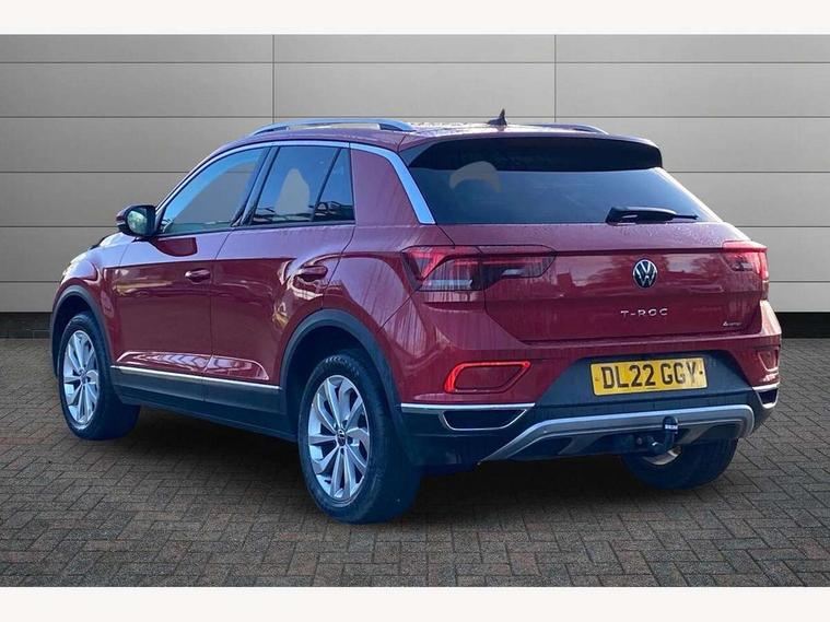10.25" Digital cockpit pro, Bluetooth mobile phone interface, Driver alert system with fatigue detection, Driver tips and journey analysis, Emergency call service, Lane keeping system Lane Assist, Modified key software - reduce switch off time for key status change to Long no motion, Online services, Park assist including front and rear parking sensors, Service interval indicator, Tailgate/trunk lid release from outside, Think blue trainer driver tips and journey analysis, Warning sound and light for front seatbelts unfastened, Wireless app connect, Battery regeneration during braking, Four wheel drive, Start/stop function with battery regeneration, Diversity antenna for FM reception, Front and rear 6 speakers, Music playback - MP3, WMA and AAC files, Premium USB cable in choice of either Apple or Android smartphone compatibility, SD card slot, Simultaneous pairing of 2 compatible mobile devices, Title and cover art display, We Connect and We Connect Plus functionality, 3rd brake light, Auto dimming interior rear view mirror, Automatic hazard lights activation under emergency braking, Automatic headlight control with LED separate daytime running lights with coming/leaving home function, Body colour sports bumpers with silver metallic underbody fascia, Dynamic headlight range control with self adjusting whilst driving, Extended roof spoiler, Exterior mirrors aspherical on driver side, convex on front passenger side, External USB type C socket and charging sockets, Front windscreen wiper with intermittent wipe and 4 position delay, Heated rear window, LED Plus headlamps, LED rear combination lamps, LED rear number plate lights, LED tail lamp rear comination lamps, Light mode for poor weather, rain, fog or snow, Power windows with comfort operation and circuit breaker, Rain sensor, Rear exhaust tailpipe, Rear fog light on one side and reversing lights on both sides, Rear side wing doors, Rear wash/wipe with intermittent wipe setting, Remote electrically foldable door mirrors, puddle lights and reverse activated passenger's door mirror, 12V power socket in centre console, 3 rear head restraints, 3 seat bench in 2nd row, 4 load lashing points in luggage compartment, Air care climatronic air conditoning system with active combination filter and 2-zone temperature control, Chrome plated radiator grille inserts, air vent surrounds and light switch surrounds, Door and side trim panel with leatherette insert, Drawer under drivers seat, Front + rear carpet mats, Front centre armrest, Front comfort sports seats, Front cupholders x 2, Front footwell illumination, Instrument lighting, white adjustable panel illumination, Interior ambient lighting and surround lighting, Interior light delay, Isofix child seat preparation, Leather gearshift handle, LED interior light with switch off delay/dimmer and 2 front/rear LED reading lights, Load-through provision with cup holder when folded down ('Unsplit rear seat bench, split folding backrest, with centre armrest), Luggage compartment lighting, Non-folding front passenger seat backrest, Single front passenger seat, Storage compartment in left and right luggage area, Storage compartment in rear doors, Storage compartments in driver and front passenger doors, Sunvisors with illuminated vanity mirrors, Variable boot floor, height adjustable and removable, Driver assistance pack without proactive passenger protection - T-Roc, 3 point height adj front seatbelts + pretensioners, 3 point seatbelts in outer rear with ECE label, ABS, Child locks on rear doors, Driver and front passenger airbag with front passenger airbag deactivation, Driver and front passenger safety-optimised head restraints, Drivers seatbelt reminder, Electronic parking brake, Electronic Stability Control (ESC) inc EDL (Electronic Differential Lock) and ASR (Traction Control), Front and rear passengers curtain airbag system including front side airbags, Front assist with city emergency braking and pedestrian monitoring, Front seat side impact airbags, Hill descent control, Hill start assist, Predictive pedestrian protection, Rear disc brakes, Single tone horn, Tyre pressure loss indicator, Volkswagen roadside assistance, Alarm with interior protection, Anti-theft alarm system with interior monitoring, backup horn, and towing protection, Remote central locking with SAFELOCK, radio remote control with 2 remote control folding keys, Trims for alloy wheels,