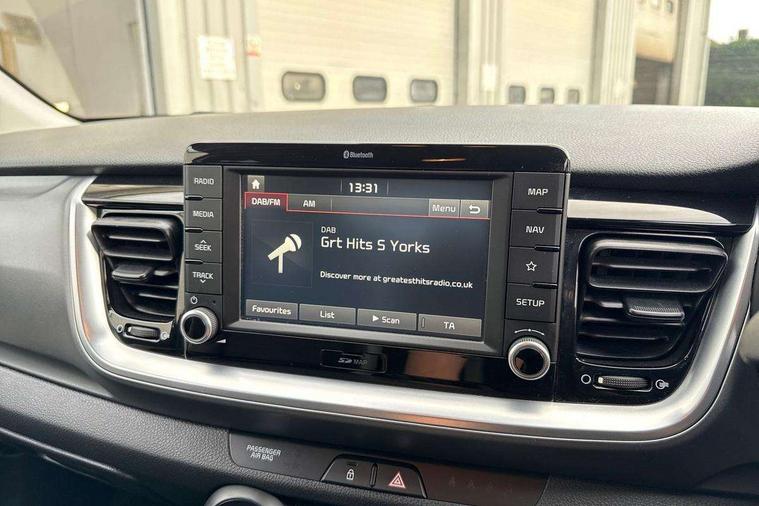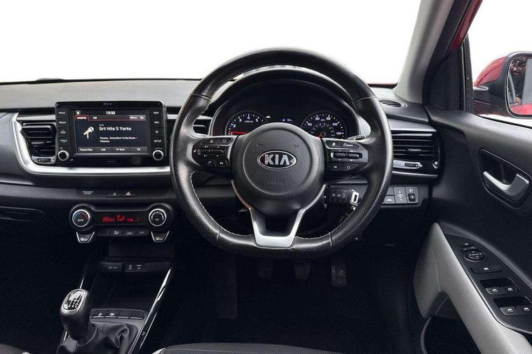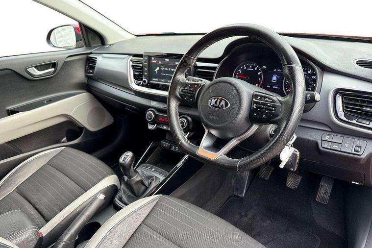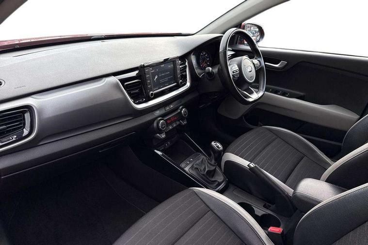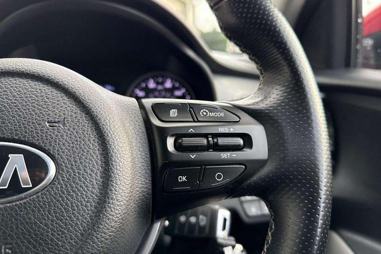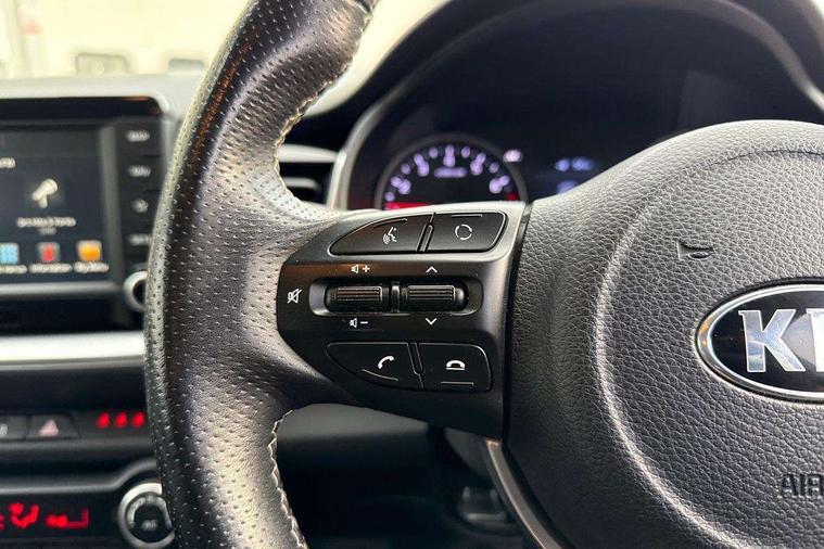 7" touch screen sat nav with TMC, Apple car play/Android Auto, Bluetooth connectivity with voice control, Cruise control + speed limiter, Driver alert system, Electric power steering, Emergency stop signalling system, Gear selection indicator, Instrument cluster- 3.5" Monochrome TFT Display, Kia connected services, Lane keep assist, Outside temperature display, Rear parking sensor with On/Off switch button, Reversing camera, Trip computer, Windscreen washer level indicator, 'Shark fin' mobile antenna, 6 speakers, 7" LCD screen, Bluetooth audio streaming, DAB Digital radio, RDS radio with MP3 player, Rear USB port, Steering wheel mounted audio controls, USB and auxiliary socket, Auto dimming rear view mirror, Automatic defog system, Automatic front rain sensing wipers, Automatic lighting control, Black side sills, Black wheel arch extensions, Body colour bumpers, Body colour door handles, Body colour door mirrors, Dual projection headlights, Electric adjustable/heated/folding door mirrors, Electric front windows + drivers one touch, Follow me home headlights, Front fog lights, Front skid plate - silver, Gloss black grille with satin chrome surround, Headlamp levelling, Heated rear window, High beam assist, High level brake light, LED daytime running lights, LED Indicators, LED rear lights, Matt black lower mirror housing, Rear electric windows, Rear fog lights, Rear privacy glass, Rear skid plate - silver, Rear spoiler, Rear wash/wipe, Roof rails, Speed sensitive front wipers, Visible VIN plate, Welcome home function, 12V power point front, 3 passenger grab handles, 60/40 split/folding 2nd row of seats, Air filter, Automatic air conditioning, Centre console storage box/armrest, Centre console with cupholders, Cloth/faux leather upholstery, D-cut steering wheel, Dash illumination dimmer switch, Door pockets with bottle holder, Driver's seat height adjuster, Driver/passenger front seatback pockets, Driver/passenger sunvisors and illuminated vanity mirrors, Front map lights, Glovebox illumination, Height adjustable headrests, Ignition key lock illumination, ISOFIX top tethers and lower anchor points, Leather trimmed gearshift, Luggage area lamp, Luggage net with hooks, Overhead console with sunglasses holder, Rear parcel shelf, Satin chrome interior door handles, Tilt/telescopic adjustable steering wheel, 3 point front seat belts, 3x3 point rear seatbelts, ABS/EBD, Auto city emergency braking, Automatic unlocking of doors in case of impact, Dual curtain airbags, Dual front airbags, Dual front side airbags, ESC + BAS + VSM + HAC, Front seatbelt pretensioners + load limiters, Height adjustable front seatbelts, Passenger airbag deactivate switch, Seatbelt warning, Traction control, Tyre pressure monitoring system, Anti theft alarm, Deadlocking system, Engine immobiliser, Folding key, Locking wheel nuts, Remote central door locking, Speed sensitive auto door locking, High gloss black centre fascia, 17" Alloy wheels, Tyre mobility system,