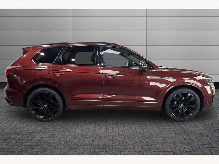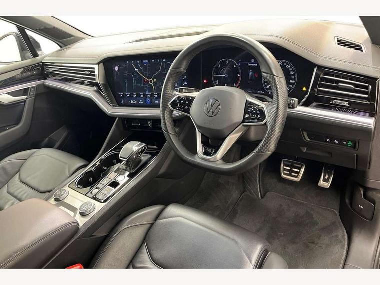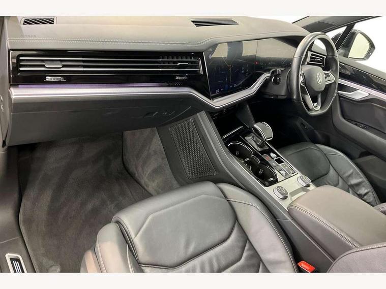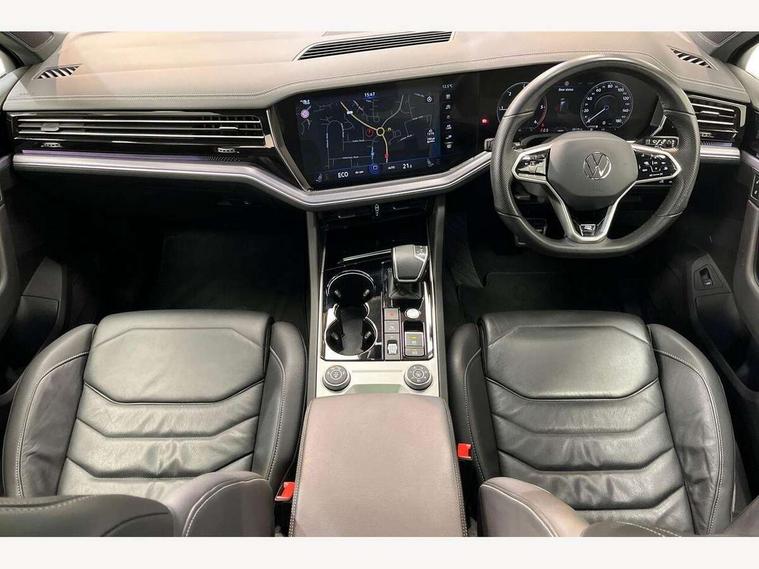 2D/3D map view, ACC - Adaptive cruise control with front assist, forward collision warning, distance monitoring, city emergency brake and speed limiter, Apple car play/Android Auto, Audible and visual fatigue detection system, Bluetooth hands free telephone connection, Car information display, Drive select with Damper control, Driver alert system, Driver profile selection, Dynamic road sign display camera controlled system with visual warning for traffic and road signs, eCall emergency system, Fully electric tailgate + keyless entry and start, Instrument cluster, MirrorLink, Multifunction camera, Multifunction computer premium with 7" colour display, One touch indicators with repeat function, Service interval indicator, Speed sensitive power steering, Start/stop system with regenerative braking, Tailgate power latch, Think blue trainer driver tips and journey analysis, Traffic sign recognition, Voice control system, Wireless Smartphone charger, 24 litre AdBlue tank, Torsen limited slip differential, DAB Digital radio, Dynamic navigation based on TMC+, Gesture control for infotainment system, Multi device interface (MDI) with illuminated USB-C connection, Music playback - MP3, WMA and AAC files, SD card slot, Simultaneous pairing of 2 compatible mobile devices, SMS functionality - read, compose and send SMS messages using touch-screen display, Title and cover art display, Volkswagen media control, Adaptive low beam for urban and motorway use, Auto dimming rear view mirror, Automatic coming/leaving home lighting function, Automatic headlights, Black anodised roof rails, Black door mirrors, Black rear diffuser, Black side window surrounds, Black upper and lower grille louvres extending into headlights and radiator grille, Body colour door handles, Body coloured wheel arches, C signature gloss black front air intake, Chromed tailpipe on the left and right integrated in the bumper with trapezoid design, Dusk sensor, Dynamic headlight range control, Electric front tilt/slide panoramic sunroof and fixed rear sunroof, Electrically power adjustable, heated, folding, auto dimming, front passenger exterior door mirror lowering function, Front and rear electric windows, Galvanised body, Gloss black finish B pillar, Gloss black rear diffuser, Headlight washers, Heat insulating darkened glass in side and rear windows, Heated windscreen washer jets, IQ.Light-LED matrix headlight, daytime running light with dynamic cornering light and indicator, LED 3rd brake light, LED rear fog light, LED rear number plate lights, Plastic scuff plates in door apertures, Poor weather light, Puddle lights, Rain sensor, Rear side wing doors, Rear wiper, 12V socket in front and rear centre console and boot, 2 Coat hooks on B pillar, 3 rear head restraints, 3 seat bench in 2nd row, 3 spoke sport heated leather multi-function sports steering wheel with gear shift paddles - generation 2, 4 way adjustable front head restraints, 4 way electric lumbar support for driver and front passenger, 4 zone climate control, 40:20:40 split folding slide/recline rear seat, B pillar vents, Black lower edge of door extending sills, Branded points of interest, Double sun visor for drivier and passenger with LED illuminated vanity mirrors, Electric luggage compartment cover, Folding rear centre armrest with 2 cupholders, Front + rear carpet mats, Front centre armrest with storage box, Gear shift indicator, Height/reach adjust steering wheel, Illuminated air conditioned glovebox, Isofix preparation for 2 rear child seats, Jack and tool kit, Leather trimmed gear knob with gloss black inlay/aluminum trim, Leatherette door trim, LED luggage compartment lighting, Load through provision, Luggage compartment with load lashing rings, Plastic loading edge protection, Rear seat remote release levers, Single front passenger seat, Soul black headlining, Stainless steel pedals, Innovision cockpit pack - Touareg, 3 point front seatbelts with pre-tensioners, ABS, Active bonnet, Automatic post collision braking system, Curtain airbags, Driver/Front Passenger airbags, EBD + Brake Assist, EDL, Electronic parking brake with auto hold, ESC with ASR, Front seat side impact airbags, Hill descent control, Hill start assist, Passenger airbag deactivate switch, Seatbelt warning lamp and buzzer, Three 3 point rear seatbelts, Two tone horn, Volkswagen roadside assistance, Warning triangle and first aid kit, Alarm with interior monitoring in cab, backup horn and towing protection, Child security locks for front and rear doors, Electronic engine immobiliser, Remote central locking, Black decorative trims on the side windows, High gloss black centre console,