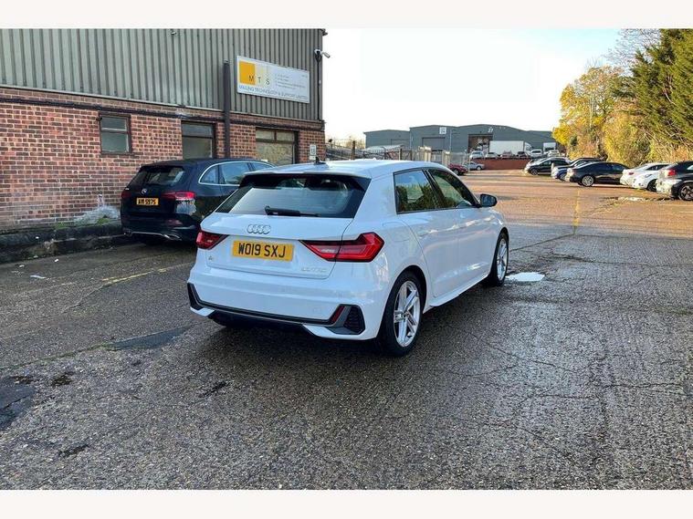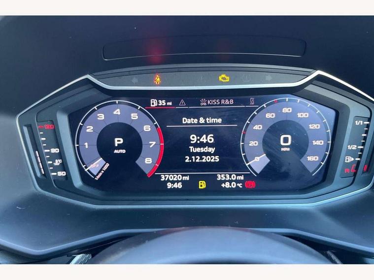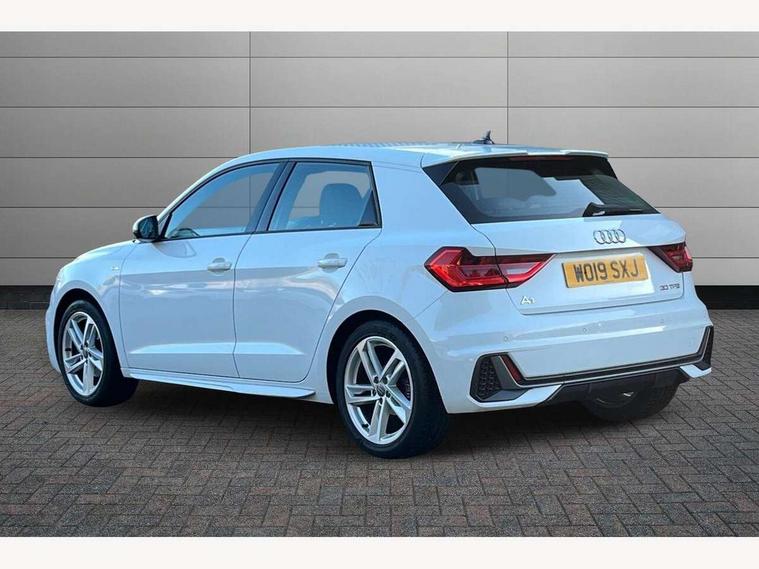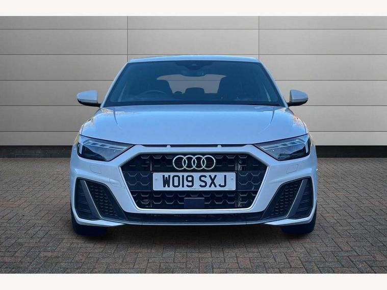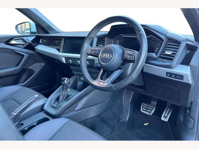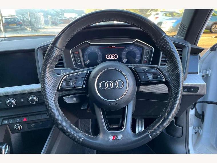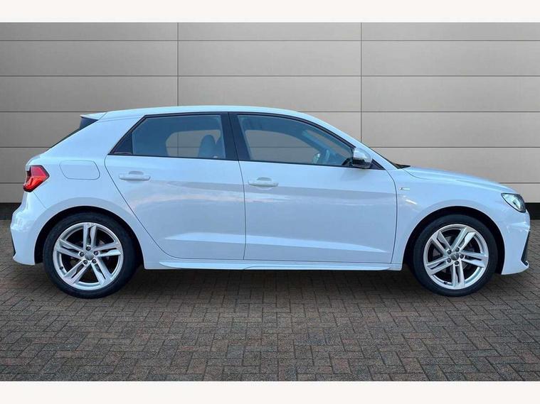 10.25" Digital instrument cluster display screen, Audi connect safety emergency and service including E-call, Audi drive select, Audi smartphone interface, Automatic start/stop system, Bluetooth interface, Driver's information system, Electromechanical power steering, Lane departure warning system, Service interval indicator, Speed limiter, Voice control system, Washer fluid level indicator, Sports suspension, 1 x SDXC card reader, 1 x USB type C and 1 USB type A charging points, Audi music interface, Bluetooth audio streaming, DAB Digital radio, MMI radio plus with 8.8" colour MMI display screen and MMI touch, Auto dimming rear view mirror, Body colour side sill mouldings, Body coloured bumpers, Body coloured door mirrors, Door sills with aluminium inlays and S Line logo, Electric front and rear windows, Front side air inlets in grained matt black and C frame in titanium black, Heat insulating glass windscreen and side windows, Heated rear windscreen, LED headlights with LED rear lights + dynamic rear indicators, Matt aluminium silver tailpipe trim, Matt black radiator grille frame, Matt platinum grey in front spoiler clip and rear diffuser clip, Rain and light sensors, Rear fog lights, Rear wiper, S line badges on front wings, S line exterior bumpers, S line roof spoiler, Side air inlet frames titanium black, Side front spoiler lips in grained matt black, 12V socket in centre console with two cup holders, 3 rear seats, Black cloth headlining, Driver and passenger seat with manual height adjust with forward and backwards adjustment, Front and rear black floor mats with contrast stitching in fine silver, Front head restraints, Height and reach adjustable steering wheel, ISOFIX child seat mounting in front passenger and rear outer seats, Leather gear knob with aluminium trim, Leatherette handbrake grip, Luggage compartment light with front and rear reading lights, Lumbar adjustment for front seats, Rear head restraints, Split folding rear seats, Stainless steel pedals, 3x3 point rear seatbelts, Audi pre-sense front with pedestrain and cyclist recognition, Brake assist function, Driver and front passenger airbag with front side and head airbags, Electronic Stability Control including ABS, EBD, ASR and EDL, Front and rear seatbelt reminder, Front passenger airbag deactivation switch, Hill hold assist, Seatbelt height adjustment for front seats, Seatbelt monitoring, Tyre pressure warning light, Warning triangle and first aid kit, Anti theft alarm, Anti theft wheel bolts and loose wheel warning, Immobiliser, Remote central locking with 2 remote folding keys, Aluminium trim for control switches, air vents and digital instrument cluster, Silver grey inlays polygon structure in diamond paint finish, Structured grey accent areas including air vents, door handle recesses and centre console in quartz paint finish,