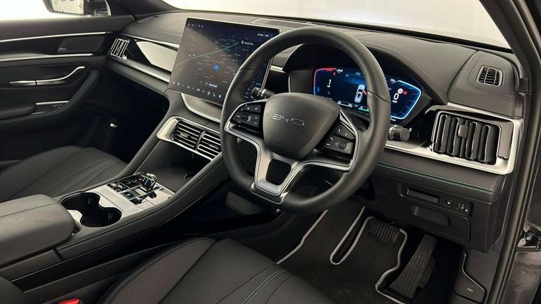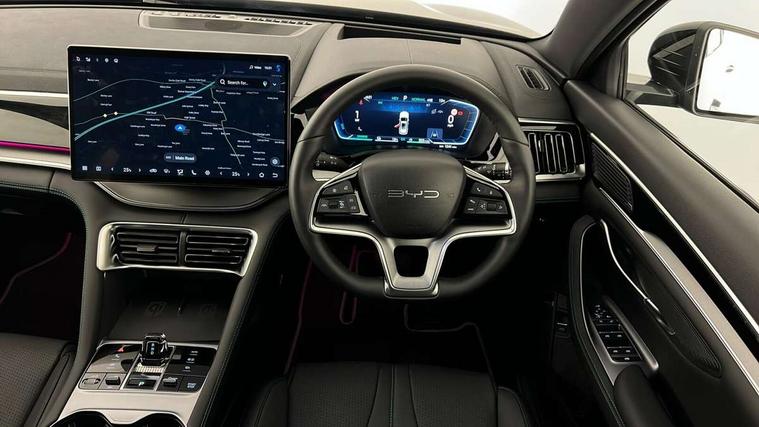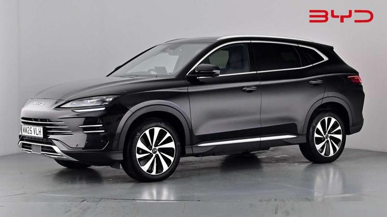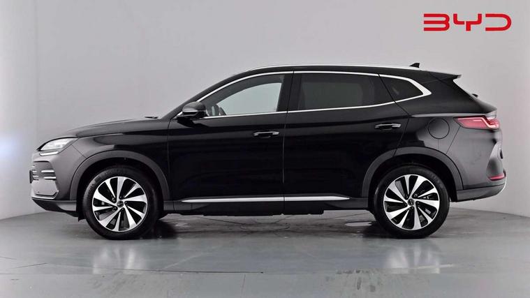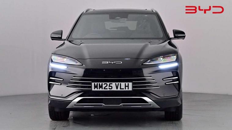 12.3" TFT full LCD instrument panel, 360 camera, Adaptive Cruise Control (ACC) and Intelligent Cruise Control (ICC), Automatic vehicle hold, Blind spot detection, BYD voice control assistant "Hi, BYD", Child presence detection, Controller Deceleration Parking (CDP), Drive mode select (Eco, normal, sport, snow, sand, muddy), e-Call (emergency call), Electric tailgate release, Emergency Lane Keeping Assist (ELKA), Forward collision warning, Front and rear parking sensors, Front cross traffic alert and front cross traffic brake, Head up Display, Indirect driver fatigue management, Intelligent Speed Limit Control (ISLC), Keyless system entry and start, Lane change assist, Lane Departure Assistant (LDA) and Lane Departure Warning (LDW), Lane departure prevention, PAS, Predictive collision warning, Rear collision warning, Rear cross traffic alert and rear cross traffic brake, Rollover Control System (RMI), Smartphone wireless charging, 2 x 15W, Traffic sign recognition (TSR), Vehicle-to-Load (V2L) function, 11kW on board charger, Mode 3 Type 2 charging cable (3 phase), V2L (Vehicle to load) power strip - Type F, 15.6" Electrically rotatable touchscreen, FM/DAB+ radio, Front USB ports, 1 x 18W Type C, 1 x 60W Type C, Infinity sound system with 10 speakers, Rear USB ports, 2 x 18W Type C, Aluminium roof rails, Auto dimming interior rear view mirror, Auto headlamps (on/off), Dynamic welcome light, Electric folding and heated door mirrors, Emergency tow hook, Exterior mirror footlights, Follow me home (The headlights turned on in advance and delayed off function), Front windscreen, UV protection, thermal insulation and sound proofing, High beam assist, LED 3rd brake light, LED daytime running lights, LED Headlights, LED taillights, One touch electric front/rear windows with pinch protection, Panoramic sunroof with anti-pinch sensor and electrically adjustable sunshade, Rain sensor windscreen wipers, Rear fog lights, Rear side wing doors, Rear window and rear windscreen with tinted glass, Rear wiper, 12V power outlet, 3 seat bench in 2nd row, 8 way electrically adjustable drivers seat, Adjustable rear headrests, Boot parcel shelf, Driver and passenger sunvisors with illuminated vanity mirrors, Driver seat memory function, Front centre armrest with 2 cupholders, Front LED reading lights, Front passenger seat with 4-way electric adjustment, Front seat footlights, Heat pump, Heated front seats, Heated steering wheel, Integrated headrest in front seats, ISOFIX and i-Size for front passenger and outer rear seats, LED front door lights, Nylon floor mats, PM2.5 air filter, PM2.5 air purification system, Rear air vents, Rear armrest with 2 cupholders, Rear side LED reading lights, Rhythm-reactive multi-colour ambient lighting, Single front passenger seat, Split folding rear seats - 40/60, Vegan leather multifunction steering wheel, Vegan leather upholstery, Ventilated front seats, 3x3 point rear seatbelts, ABS/EBD, Automatic emergency braking system, Brake override system (BOS), Comfort stop, Door open warning, Driver airbag, Electric parking brake, Force limiting pretensioned front seat belts, Front centre airbag, Front passenger airbag, Front passenger airbag deactivation, Front side airbags, Hill descent control, Hill hold control, Hydraulic Brake Assist (HBA), Hydraulic brake boost, Mechanical child safety lock, Rear middle seat force limiting seat belt, Rear seat belt pretensioners, Reflective vest, Side curtain airbags, Traction control system (TCS), Tyre pressure monitoring system (TPMS), Vehicle Dynamics Control System (VDC), Warning triangle, 2 x Smart key, Anti theft alarm system, Automatic door locking, 19" Bi-colour alloy wheels, Tyre nut covers remover, Tyre repair kit,