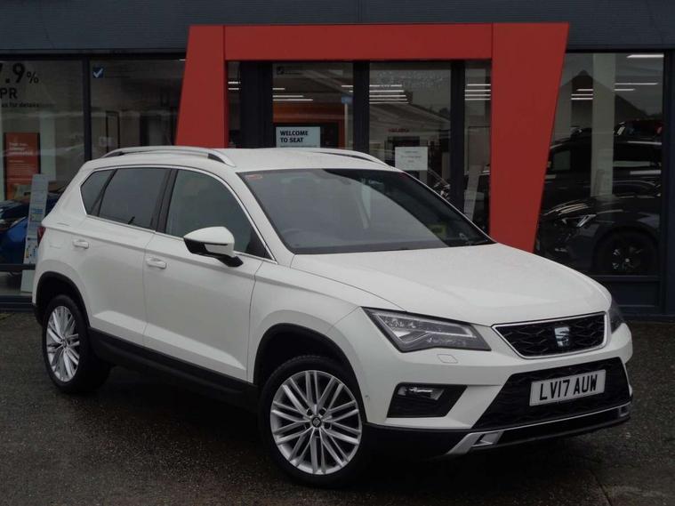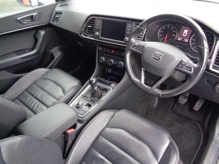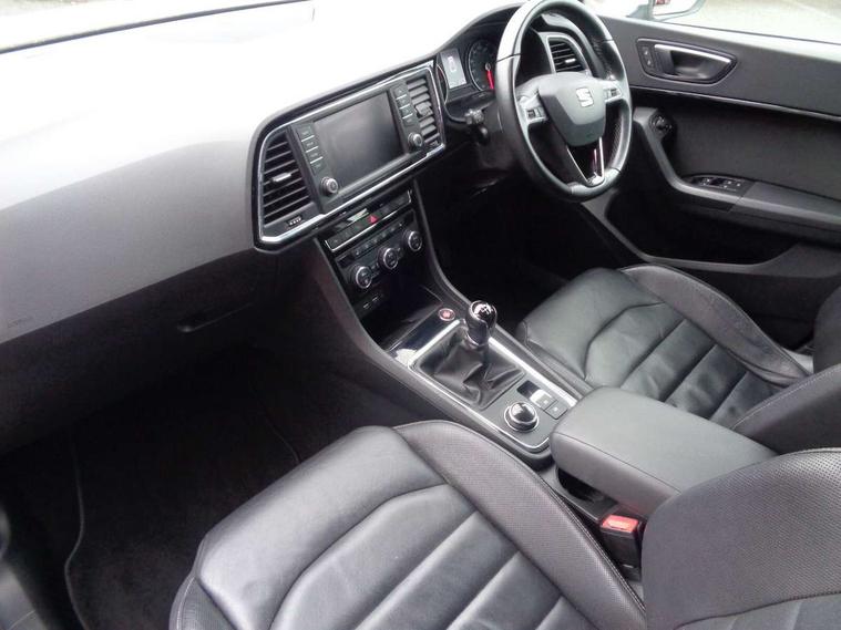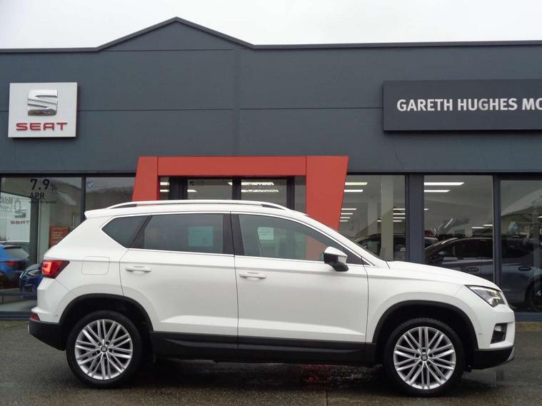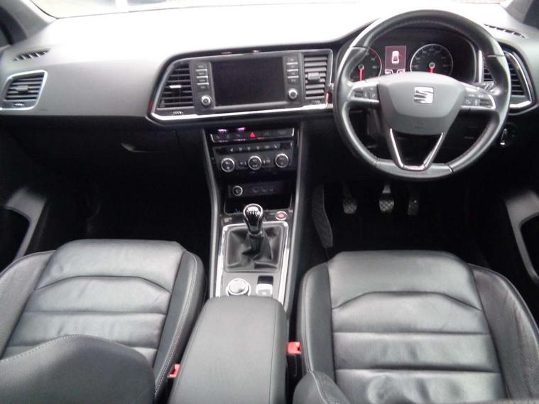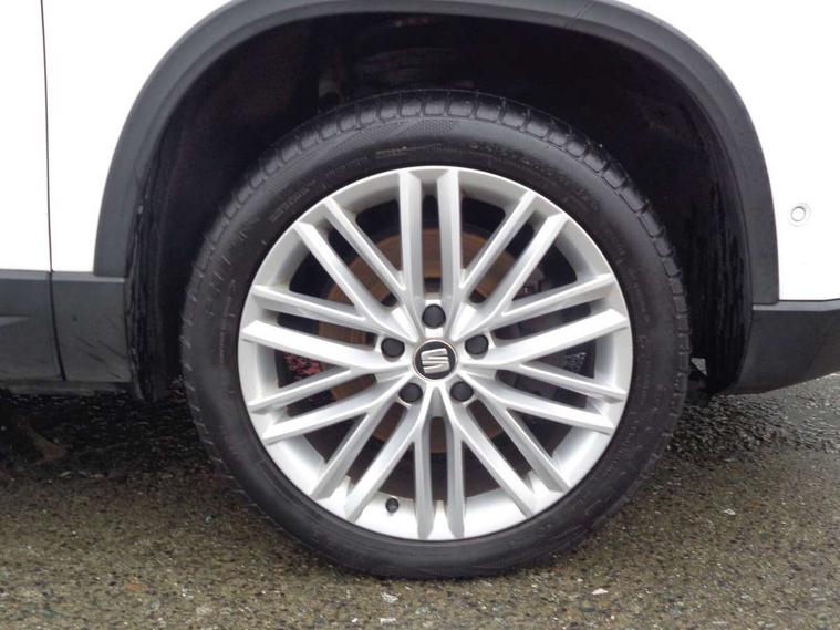 'Lights On' Reminder warning buzzer, Driver alert system, Full Link App interface, Low fuel warning light, Multi function display, Outside temperature gauge, Rear parking sensor, Rear view camera, Remote fuel flap release, SEAT Drive profile, SEAT logo boot release, Trip computer, Comfort suspension, XDS electronic differential lock, Steering wheel mounted audio/phone controls, Aluminium front door sills, Aluminium roof rails, Body colour bumpers, Body colour door handles, Body colour door mirrors, Chrome side window trim, Chromed centre radiator grille surround, Cornering front fog lights, Dark tinted rear windows, Electric folding door mirrors, Electrically adjustable and heated door mirrors, Front and rear electric windows, LED daytime running lights, LED Headlights, LED tail lights, Rear wash/wipe, Twin chromed exhaust pipes, Welcome lighting, 12V power point front, 3 height adjustable rear headrests, 60/40 split folding rear seat, Adjustable front armrest with storage compartment, Driver/passenger lumbar adjustment, Driver/passenger sunvisors with illuminated vanity mirrors, Dual zone climate control, Footwell illumination, Front cupholders x 2, Front reading lights, Front seat back storage pockets, Height adjustable driver's seat, Height adjustable front headrests, Height adjustable passenger seat, Illuminated boot, Illuminated glovebox, Isofix child seat preparation, Leather steering wheel and gear knob, Leather upholstery, Rear armrest, Rear central air outlet, Rear reading lights, Roof mounted sunglasses holder, Storage box under drivers seat, Convenience pack - Ateca, Seat Media System Plus pack - Ateca, Winter Pack - Ateca, 3x3 point rear seatbelts, ABS, Auto hold function, Automatic post collision braking, Curtain airbags, Driver/Front Passenger airbags, Drivers knee airbag, Electronic parking brake, Electronic stability control, ESP+EBA, Front and rear seatbelt reminder, Front assist including city emergency braking, Front passenger airbag deactivation, Front side airbags, Hill hold control, Predictive pedestrian protection, Tiredness recognition system, Traction control, Tyre pressure monitoring system, Immobiliser, Locking wheel bolts, Remote central locking, Volumetric alarm with back up horn, Chrome effect dashboard facia,