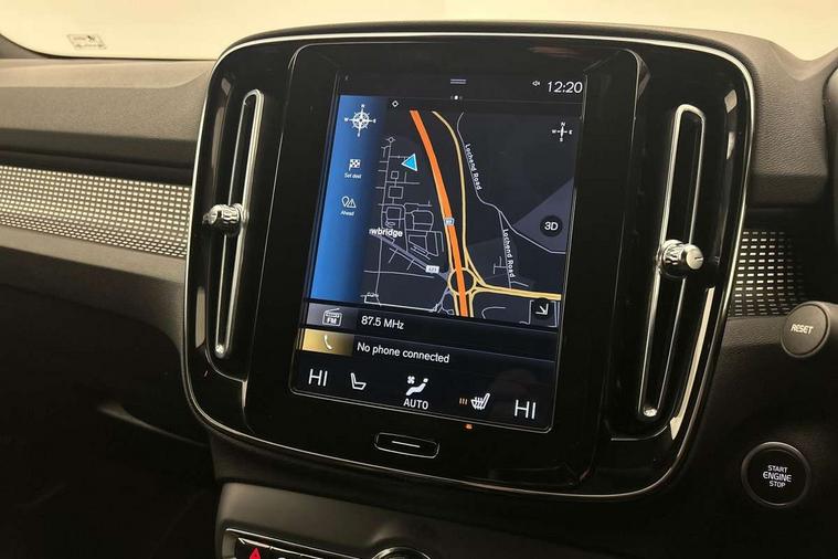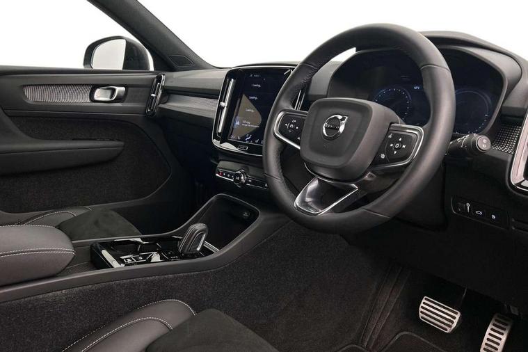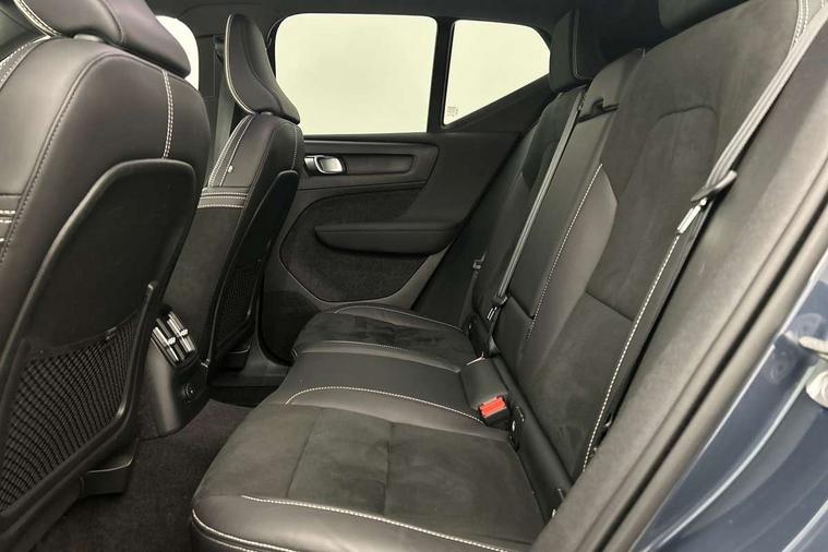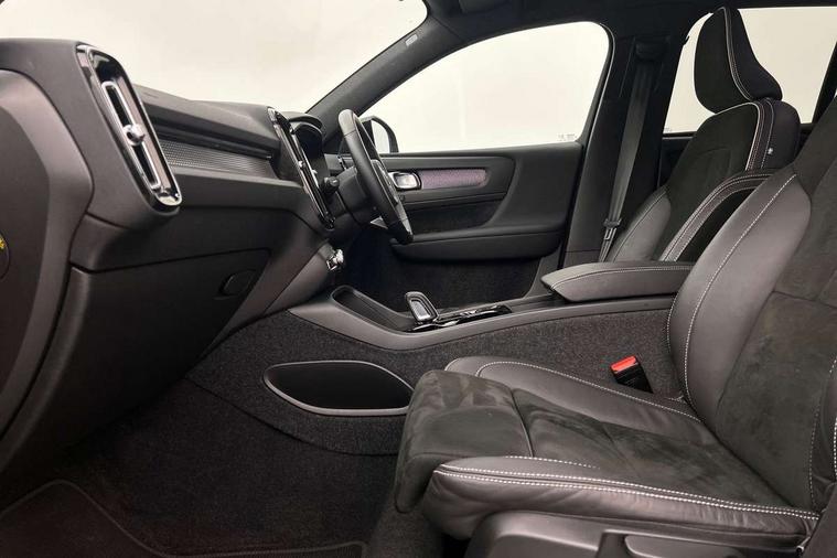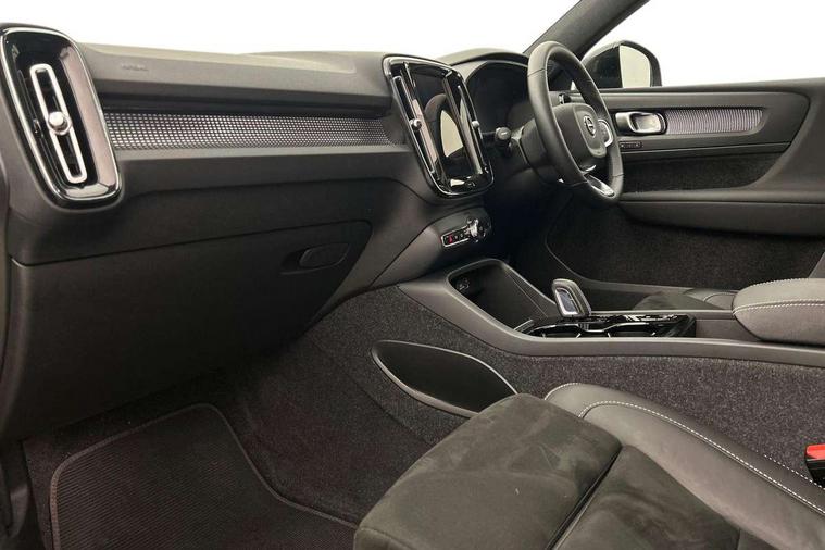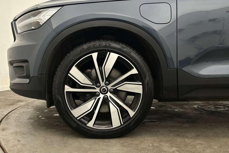 12.3" Active TFT crystal driver's instrument display, 9" centre console portrait touch screen, Adjustable steering wheel force, Bluetooth hands free telephone kit, Drive mode selector, E-call, Lane keep assist with driver alert control, Oncoming Lane Mitigation, Power operated tailgate, Sensus navigation with European mapping and traffic information, Speed limiter, Speed sensitive steering, Voice activated control for key functions, Volvo on call, 7m 10amp charge cable with 3 pin plug and 7m 1 phase 16amp type 2/mode 3 charge cable, Electric front axle drive, Recharging port located in nearside front wing, Sports chassis, DAB Digital radio, Low speed exterior sound speaker, Steering wheel mounted remote controls, Adaptive brake lights with high level LED brake lights, Auto dimming interior mirror, Automatic headlamp levelling, Automatic LED Headlights + Active high beam incorporating daytime running lights, Dark tinted windows for rear door side windows and cargo compartment, Electric adjustable/heated/auto folding door mirrors, Front aluminium tread plates, Front and rear electric windows, Heated front windscreen, High gloss black front and rear skid plate, High gloss black lower front bumper, High gloss black mesh front grille with high gloss black surround, High gloss black sensus surround deco, High gloss black window trim, Home safe and approach lighting, Integrated roof rails in high gloss black, Rain sensor with automatic windscreen wiper activation, Rear side wing doors, Rear wiper, Roof antenna, Roof spoiler, Visible VIN plate, 12V socket in front tunnel console and luggage compartment, 2 zone electronic climate control and rear air vent, 3 seat bench in 2nd row, 60/40 versatile split folding rear seat, A-pillar parking ticket holder, Bright metal luggage threshold, Centre console cupholders and storage, Charcoal headlining, Front footwell illumination, Front headrests, Front reading light and theatre lighting, Front seat cushion extensions, Glovebox bag hook, Heated front seats, Height/reach adjustable steering column, Height/tilt adjustable driver's seat, High gloss centre tunnel deco, Illuminated glovebox, Illuminated luggage compartment, Illuminated vanity mirrors, Isofix attachments on outer rear seats, Leather gearknob, Load protection net, Multi directional lumbar support, Power driver seat with memory + exterior mirrors memory, Rear armrest / integral cup holders / storage tray, Rear coat hook, Single front passenger seat, Sports floor mats, Sports pedals, Sports tailored steering wheel, Underfloor cargo storage, Vanity mirror with ticket holder, Lighting pack - XC40, 3x3 point rear seatbelts, City safety includes pedestrian, cyclist and large animal detection and front collision warning with full auto brake, Drivers knee airbag, Dual stage driver/passenger airbags, Electronic parking brake with auto hold, First aid kit, Front and outer rear seatbelt reminder and pretensioners, Front seats SIPS airbags, Hill descent control, Hill start assist, Inflatable curtain, Passenger airbag cut-off device, Road sign information display, Run off Road Mitigation, Run off Road Protection, SIPS (Side Impact Protection System), Slippery road and hazard light alert, Stability and Traction Control with Spin control, Engine Drag Control and Corner Traction Control, Tyre pressure monitoring system, Vehicle deceleration control with Anti-lock Brake System, Electronic Brake Distribution and Emergency Brake Assist, Warning triangle, WHIPS whiplash protection system - front, Anti-theft alarm including immobiliser/volume sensor + level sensor, Care key with user defined top speed, Key integrated remote control central locking + fuel flap with deadlocking system and auto open/close power windows, Locking wheel nuts, Private locking for tailgate, Cutting edge aluminium inlay, Lower dashboard, tunnel console and door panel in charcoal, 20'' 5 double spoke diamond cut/high gloss black alloy wheels,