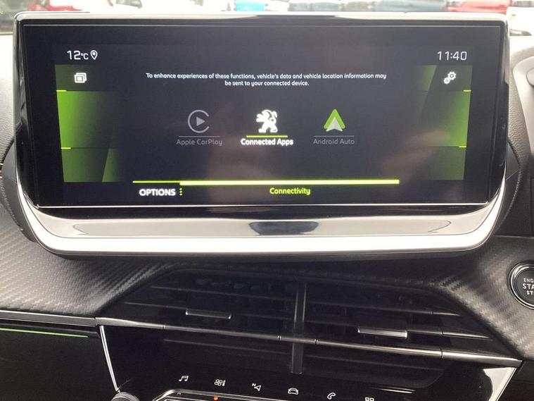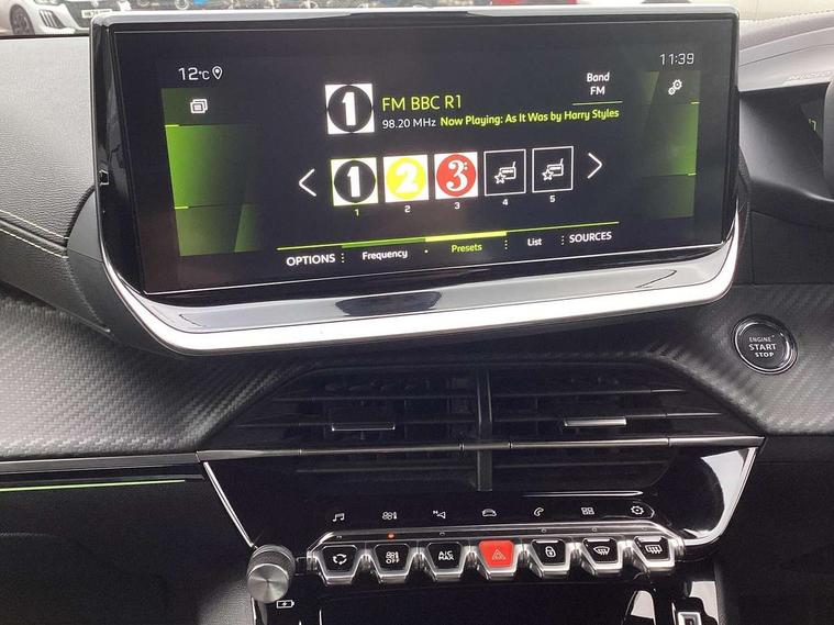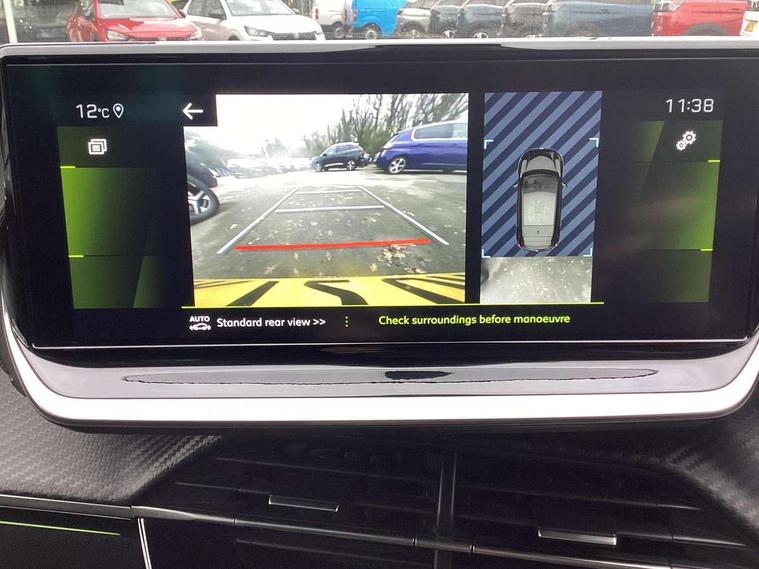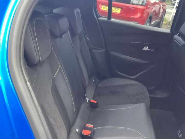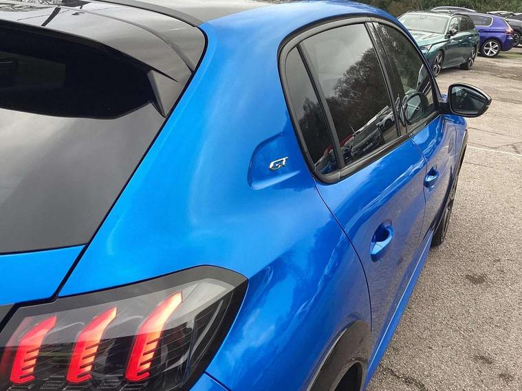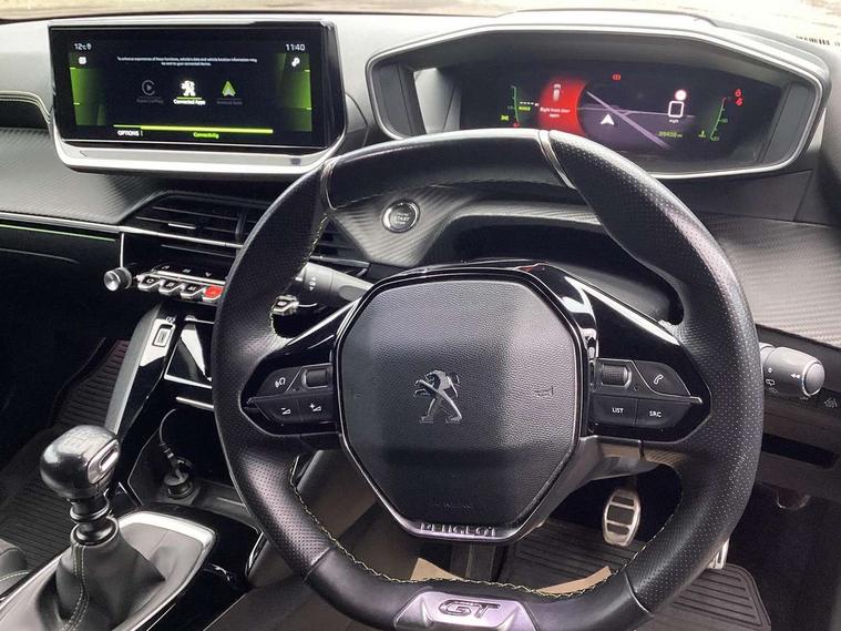 10" Capacitive colour touchscreen with connected 3D navigation, Blind spot monitoring, Bluetooth telephone facility, Driver attention warning, Exterior temperature indicator with ice warning, Lane keep assist, Mirror screen with mirror link, apple carplay and android auto, Multi function trip computer, PEUGEOT i-Cockpit with compact steering wheel, PEUGEOT i-Cockpit with configurable 3D headup instrument panel, PEUGEOT SOS and assistance, Push button start, Smart phone docking station, Speed limit recognition and recommendation, Start/stop system, Visio park assist 180 with colour reversing camera + front and rear parking sensor, 2 front USB socket with USB-C, 2x USB sockets in rear, 6 speakers radio with mp3 compatible, DAB Digital radio, Voice recognition for radio, navigation and telephony features, 2 X Rear number plate lights, Automatic hazard light activation upon heavy brake application, Automatic lights, Automatic windscreen wipers, Body coloured exterior door handles, Dark tinted rear side and tailgate windows, Diamond black rear spoiler (roof), Diamond Black roof, Electric front windows + one touch + anti-pinch, Electric rear windows with one touch/anti-pinch, Electrically adjustable, heated and power folding door mirrors, Follow me home headlights, Frameless electrochrome interior rear view mirror, Full LED headlights with smartbeam assist, Gloss black finish on B pillar, Gloss black rear cluster connecting strip, Gloss black wheel arch extensions, Gloss black window surround, GT model designation badging on C pillar, GT model designation badging on tailgate, Headlights left on audible warning, LED daytime running lights with 3 claw headlight with distinctive tooth design, LED side indicator lights integrated into door mirrors, LED third brake light, Model designation badges front and rear, Nera black door mirror shells, Peugeot scuff plates, Radiator grille - Dark chrome chequered and gloss black edge trim, Rear bumper with gloss black finish, Rear full LED 3D peugeot signature claw effect lights with daylight function, Rear lower bumper diffuser effect trim in gloss black, Rear reversing lights, Rear side wing doors, Rear windscreen wiper triggered automatically in reverse gear, Roof mounted aerial with fin design, Roof spoiler, Single exhaust tailpipe, Tailgate with heated rear windscreen and wiper blade, Variable front intermittent wipers, 1/3 to 2/3 split folding rear seats, 12V socket, 3 seat bench in 2nd row, 8 Colour personalisable ambient lighting, Aluminium pedals and foot rest, Automatic air conditioning, Driver and front passenger seat manual adjustment in longitudinal and back rest angle, Driver and front passenger seat mechanical height adjustment, Driver and front passenger sport seats, Electric power steering with reach and rake adjustable steering column, Front and rear carpet mats in black with lime green stitch detail, Front centre armrest with storage compartment, Front LED interior light with 2 reading spotlights and rear interior light with timer, Gear shift indicator, High centre console with 2 cup holders, ISOFIX child seat mounting points on passenger seat, Lime green contrast stitching to armrest, front centre console, door panels and dashboard facia, Map pockets on the backs of the front seats, Mistral full grain perforated leather steering wheel with aikinite stitch detail and satin chrome 'GT' emblem, Piano keys gloss black plated toggle switches to access main functions of the vehicle, Piano keys gloss black plated toggle switches to access touchscreen functions, Rear centre headrest, Roof lining - Mistral black, Satin chrome gear lever, Seatbelt unfastened on the move audible and visual alert for front and rear seats, Single front passenger seat, Drive assist pack - 208, 3 rear 3 point seatbelts, ABS (Anti-lock Braking System) with EBD (Electronic Brakeforce Distribution) and EBA (Emergency Braking Assistance), Active safety brake with night function/cyclists/pedestrians, Adaptive driver and front passenger airbags with passenger airbag deactivation function, Child locking functionality on rear doors, Driver/front passenger side airbags, Electric parking brake, ESP with Hill Assist, Front and rear curtain airbags, Front and rear disc brakes, Front optimised safety headrests and 3 x rear retractable headrests with height adjustable, Front three point retractable seatbelts with force limiters, Tyre pressure sensor, Acoustic vehicle alert system (AVAS), Automatic door locking when moving off, Deadlock, Electronic code immobiliser, Peugeot Open and Go System, Remote central locking, Thatcham cat. 1 alarm with anti lift sensor, Carbon effect Dashboard, front and rear door panel finish, 17" Bronx two-tone alloy wheels, Space saver spare wheel,
