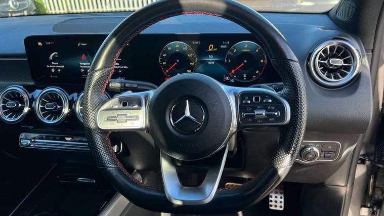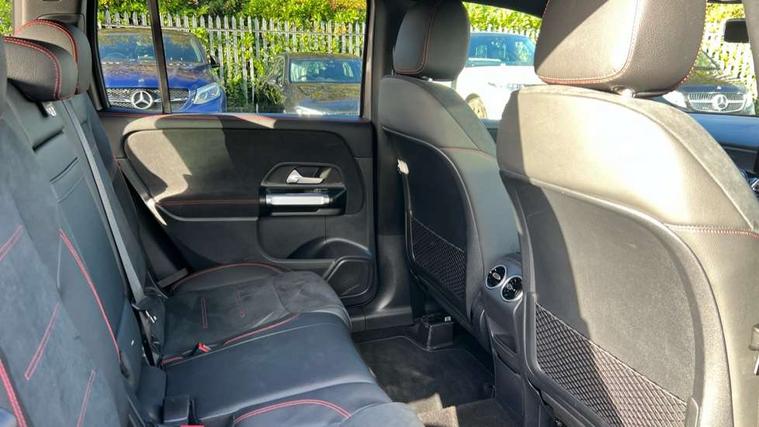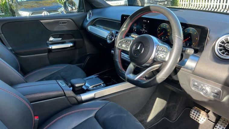 10.25" Digital instrument cluster display screen, 10.25" Digital media screen display, Active lane keeping assist, Attention assist - Monitors steering behaviour and long journey fatigue, Brake pad wear indicator warning light, Car wash mode, Cruise control with limiter, DYNAMIC SELECT with a choice of driving modes (ECO, Comfort, Sport and Individual), ECO start/stop function, Fluid level warning indicator for fuel, oil, coolant and washer fluid, Hard disk navigation, Hey Mercedes Voice activation, Lamp failure indicator, Mercedes me connect including emergency call system, accident recovery, breakdown and maintenance management, Mercedes me remote services, Outside temperature gauge, Owners manual and service booklet in English, Parameter steering system, Pre-installation of private car share, Preinstallation for parking damage notification, Radio aerial integrated into front and rear windshields, Service indicator (ASSYST), Smartphone integration with Apple CarPlay and Android auto, Speed limit assist, Trip computer in multifunction display with current consumption indicator, 23.8 litre AdBlue fuel tank, Comfort suspension, Rear axle multi-link, DAB digital radio tuner, MBUX multimedia system with DAB digital radio and touchpad including satellite navigation, Mercedes Benz sound system (225 W) with 10 speakers, 1 central speaker, speakers on doors, a tweeter on door, one sub woofer + boost amplifier, Pre installation for Mercedes Benz Link, USB (type C) port in front stowage compartment, USB (type C) ports (2) in stowage compartment, Adaptive brake lights, Aerial for GPS, AMG bodystyling door panels black grained with chrome plated inserts, AMG bodystyling front apron with chrome splitter, AMG bodystyling rear apron with diffuser optics and chrome trim element, AMG specific front and rear bumper including underride guard in high gloss chrome, Beltline strips and weather strip in chrome, Body coloured bumpers, Body coloured door handles with chrome insert for keyless entry, Body coloured door mirror caps, Electric adjustable and heated door mirrors with integrated LED side indicators, Exhaust system with dual flow exhaust pipes (non-functional), Front and rear electric windows, Headlamp assist automatic headlamp activation, Heated glass rear windscreen + timer control, High level LED third brake light, Interior mirror with black reading lamps and frameless, LED high performance headlamps with integrated LED daytime running lights, LED tail lamp, Polished aluminium roof rails, Privacy glass with dark tinting on rear side windows and rear window, Radiator grille with pins in chrome and single louvre with chrome insert, Rain sensor windscreen wipers, Rear fog lamp, Rear side wing doors, Rear wiper, Two visible tailpipe trim elements exhaust, 3 seat bench in 2nd row, 3 spoke multifunction sport steering wheel in nappa leather, Air conditioning - Two zone thermotronic luxury automatic climate control with display, AMG sports pedals with brushed stainless steel surfaces and black rubber studs, Artico man-made leather/Microcut microfibre upholstery with red contrast stitching, Automatic child seat recognition sensor, Black floor mats with AMG lettering, Black roof lining, Fore/aft adjustment rear seats, Freight packaging with tie-down hooks, Front centre armrest with stowage, Front door sills with illuminated changeable cover, Front passenger grab handle with brushed side silver chrome, Front sports seats with adjustable head restraints, Galvanished gear shift paddles on steering wheel, Heated front seats, Height/reach adjustable steering column, Interior lighting - 64 colour Ambient lighting, Luggage net on driver/front passenger seat backrest, Net in front passenger footwell, Rear armrest with two integral cup holders for drinks, Rear seat easy entry, Single front passenger seat, Stowage compartment in centre console, Stowage compartment with retractable cover, Third row of seats for two people on rear seat, Touchpad on center console, Twin front cup holders, Two outer rear seat isofix and top tether child seat fixing points, Interior lighting with light and sight pack - GLB, Keyless go comfort pack - GLB with easy pack tailgate, Mirror pack - GLB, Off-road engineering package - GLB, Parking pack - GLB, Seat comfort package - GLB, 3 rear 3 point seatbelts, Active bonnet pedestrain safety measure which detects an impact and raises bonnet by 65mm, Active brake assist includes forward collision warning system with autonomous braking, Adaptive brake assist with hold function and hill start assist, Airbags - kneebag for driver, Anti-lock braking system (ABS) with brake assist, Childproof locks manually operated for rear doors and electrically operated for rear power windows, Crash responsive emergency lighting, Curve dynamic assist, Driver and front passenger head and sidebags, Driver and front passenger windowbags, Dual stage driver and front passenger airbags, Electronic parking brake, Electronic stability programme with acceleration skid control, Front and rear seatbelt reminder, Front brake callipers with Mercedes Benz lettering, Front passenger seat occupancy sensor, Perforated and ventilated front brake discs, Tyre pressure monitoring system, Warning triangle and first aid kit, Guard 360 degree vehicle protection - Anti theft alarm system, tow away protection with visual, acoustic warning and alarm, Interior monitoring system, KEYLESS-GO Spanner communicates with the vehicle within two metres of the door, Remote central locking and crash sensor with emergency opening function, Thatcham category 1 alarm system with immobiliser and interior protection, Vehicle key with decorative surround in chrome, Black air vents with chrome surround, Carbon structure trim, 19" AMG 5 twin spoke light alloy wheels painted in high gloss black with high sheen finish, Summer tyres, Tirefit tyre sealant kit,