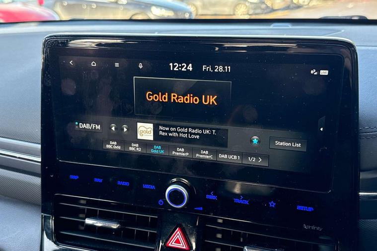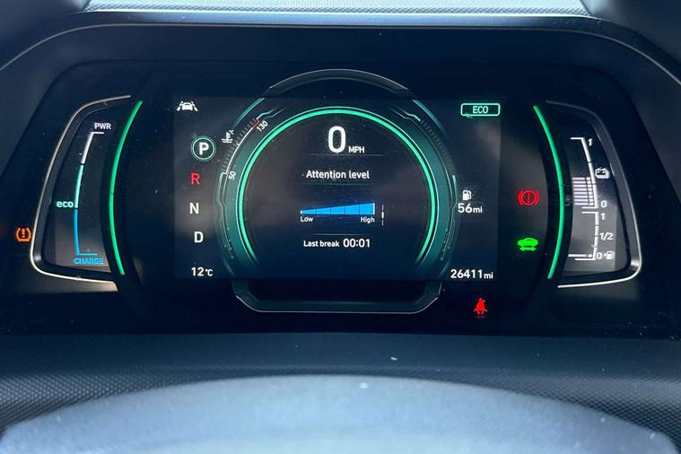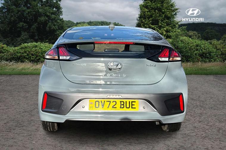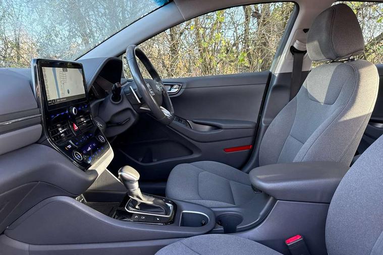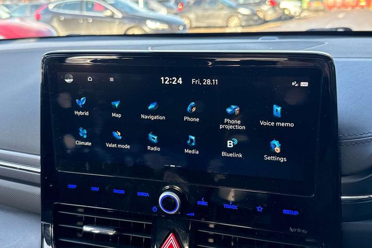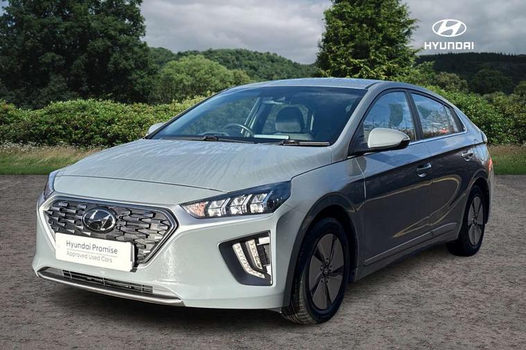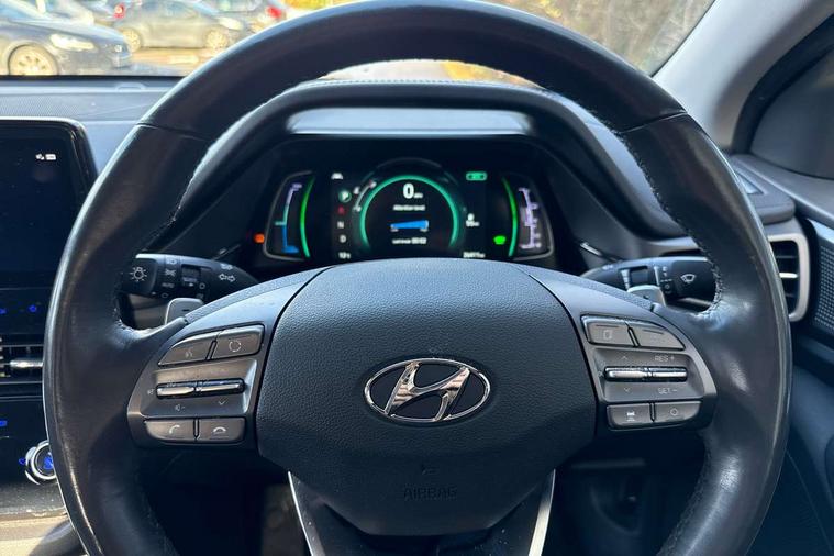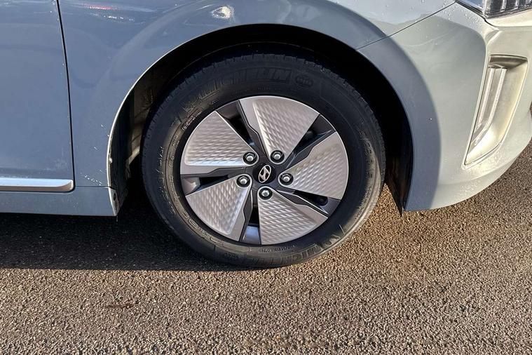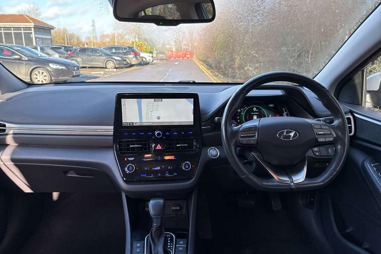 10.25" touchscreen satellite navigation includes traffic messaging channel, mapcare, live services and bluelink, Apple car play/Android Auto, Bluetooth system, Cruise control, Driver attention alert system, E-call, Eco driving assistant system (ECO DAS), Electric power steering with variable drive modes, Gear lever drive mode selector, Lane departure warning system with lane keep assist - LKAS, Parking Brake - Foot Brake, Parking system with rear camera and guidance system, Rear parking sensor, Rear view monitor, Roadside assistance, Supervision cluster with 7" high resolution TFT LCD, Voice recognition, Windscreen washer fluid sensor and warning indicator, Wireless phone charging pad, DAB Digital radio, Infinity sound system includes 1 centre, 2 tweeters, 2 front, 2 rear and 1 ext amp, Radio data system, Steering wheel audio, phone and cruise controls, USB and aux connection in front, Active air flap radiator grille, Auto dimming rear view mirror, Automatic headlights with dusk sensor, Body colour bumpers, Body colour door handles with chrome inserts, Body colour door mirrors, Bodyside mouldings, Chrome door scuff with ioniq logo, Chrome finish window surround, Chrome radiator grille, Door mirror puddle lights, Electric adjustable door mirrors, Electric front windows - anti trap + one touch, Electric heated door mirrors, Heated rear windscreen, High beam assist, LED daytime running lights, LED Headlights, LED indicators in door mirrors, LED rear fog light, Positioning Lights - LED, Power folding door mirrors, Rain sensor, Rear electric windows, Rear LED lights, Rear roof spoiler with integrated LED brake light, Rear side wing doors, Rear wiper, Solar glass with windscreen shade band, Tinted windows, Two tone rear bumper, Variable front intermittent wipers, 12V power outlets, 3 rear seats, 60/40 split folding rear seat, Centre console storage, Centre interior light, Chrome interior door handles, Cloth upholstery, Driver seat height adjust, Driver's electric adjustable lumbar support, Driver/passenger sunvisors with illuminated vanity mirrors, Dual zone climate control, Front centre armrest with storage compartment, Front cupholder, Front head restraints with vertical and horizontal adjustment, Front seat and rear pockets, Heated front seats, Heated steering wheel, Illuminated luggage compartment, Interior mood lighting, Leather wrapped steering wheel, Luggage net, Manual height adjustable front passenger seat, Map and reading lights, Paddle shifter, Rear centre console with air vents, Single front passenger seat, Sunglasses holder, USB - driver arm rest (charging only), Vertical adjustment rear head restraints, 3x3 point rear seatbelts, Airbags - front, front side, curtain and drivers knee airbags, Anti-lock brake system (ABS), Autonomous emergency braking, Electronic stability control, Front passenger airbag deactivation switch, Hill start assist control (HAC), Manual child lock in rear doors, Regenerative braking system, Traction control, Tyre pressure monitoring system with individual tyre pressure display, Deadlocks, Immobiliser, Keyless smart entry with push button start, Remote central locking, 15" Design B alloy wheels, Tyre repair kit,