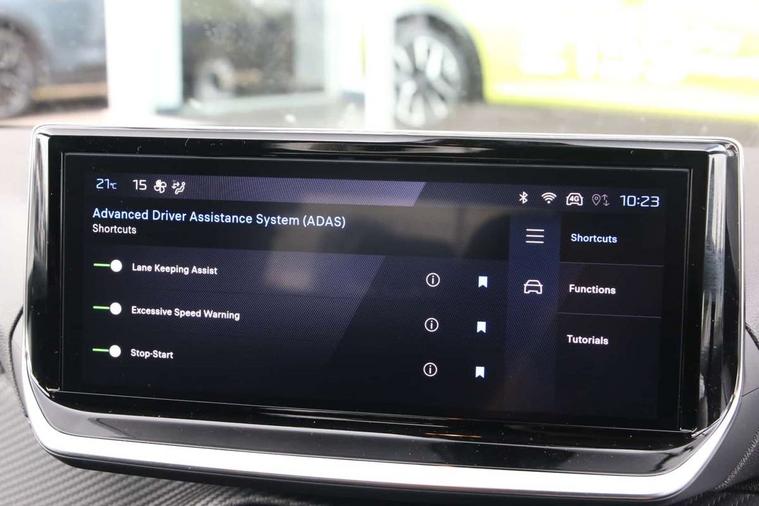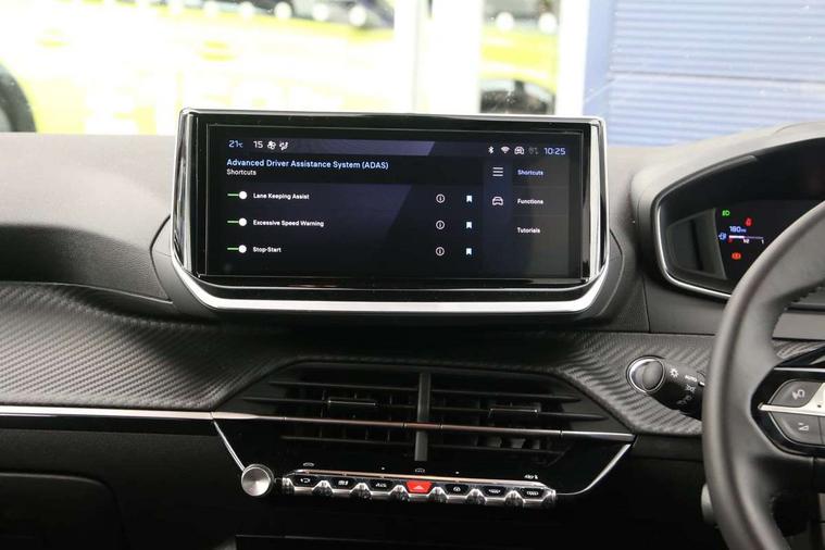 Bluetooth telephone facility, Drive mode selection(Eco/Normal), Driver attention warning, Emergency call service, Exterior temperature indicator with ice warning, Front and rear parking sensors, Multi function trip computer, Pedestrian collison, PEUGEOT i-Cockpit with 10" configurable colour head up instrument panel, PEUGEOT i-Cockpit with 10" HD capacitive colour touchscreen, PEUGEOT i-Cockpit with compact steering wheel, PEUGEOT SOS and assistance, Push button start, Smart phone docking station, Speed limit recognition and recommendation, Start/stop system, Wireless mirror screen with apple carplay and android auto, 6 Speakers - 2 tweeters and 4 door speakers, DAB Digital radio, Peugeot i-connect infotainment system - 10in HD touchscreen, AM/FM/DAB digital radio, Wifi Mirroring, Bluetooth & 2 USB connection, USB-A socket (x1) and USB-C socket (x1) - rear, USB-C data and charge socket and USB-C charge socket in front, Voice recognition for radio, navigation and telephony features, 2 X Rear number plate lights, Acoustic windscreen, Antenna - Gloss Black 'fin' design, Automatic hazard light activation upon heavy brake application, Body coloured exterior door handles, Dark tinted rear side and tailgate windows, Diamond black rear spoiler (roof), Eco LED headlights with electric height adjustment, Electric heated and power folding door mirrors with courtesy floor lighting, Electrochrome rear view mirror, Gloss black B pillar, Gloss black door mirror shells, Gloss black front bumper grille with body colour accents, Gloss black rear cluster connecting strip, Headlights left on audible warning, LED 3 claw horizontal rear lighting signature with daylight function and LED brake lights, LED daytime running lights with distinctive 3 claw signature, LED Rear lighting with distinctive 3 claw horizontal signature with daylight function, LED third brake light, Model designation badges front and rear in basalt grey, One touch electric front/rear windows with pinch protection, Rear bumper with gloss black finish, Rear reversing lights, Rear side wing doors, Rear windscreen wiper triggered automatically in reverse gear, Roof spoiler, Tailgate with heated rear windscreen and wiper blade, Variable front intermittent wipers, 1/3 to 2/3 split folding rear seats, 12V socket, 3 seat bench in 2nd row, Automatic mono zone climate control air condition, Boot lighting, Driver and front passenger comfort seats, Driver and front passenger seat manual adjustment in longitudinal and back rest angle, Driver seat mechanical height adjustment, Electric power steering with reach and rake adjustable steering column, Front centre armrest with storage compartment, Front interior light with 2 reading spotlights, Gear shift indicator, Grained black DRL and lower/upper bumper trim, High centre console with 2 cup holders, Map pockets on the backs of the front seats, Multifunction leather steering wheel, Piano keys gloss black plated toggle switches to access main functions of the vehicle, Quartz contrast stitching to front and rear door armrest, Rear centre headrest, Roof lining - light grey, Seatbelt unfastened on the move audible and visual alert for front and rear seats, Single front passenger seat, Tri material cloth/leather upholstery, Visibility pack - 208, 2x Isofix child seat fitting on outer rear seats, 3 rear 3 point seatbelts, ABS (Anti-lock Braking System) with (EBD) Electronic Brakeforce Distribution, Advance emergency braking system, Child locking functionality on rear doors, Driver and front passenger airbag with passenger airbag deactivation, Driver/front passenger side airbags, Electric parking brake, ESP with Hill Assist, Front and rear curtain airbags, Front and rear disc brakes, Front optimised safety headrests and 3 x rear retractable headrests with height adjustable, Front three point retractable seatbelts with force limiters, Remote plip(x2) for locking, unlocking, includes emergency key blade, Tyre pressure monitoring system, Acoustic vehicle alert system (AVAS), Alarm - Connected, volumetric , perimetric, anti lift sensor, Automatic door locking when moving off, Deadlock, Electronic code immobiliser, General safety regulation, Remote central locking, Carbon effect Dashboard, front and rear door panel finish, 16" Noma two tone diamond cut alloy wheels, Tyre puncture repair kit,