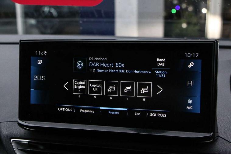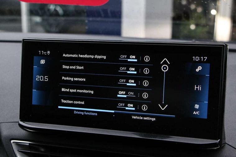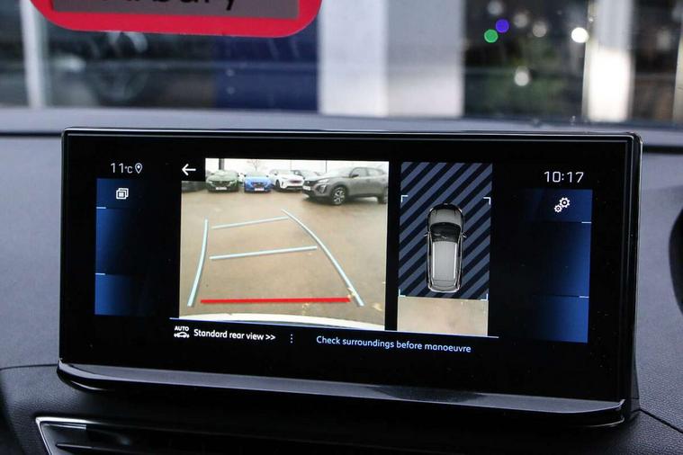 3D connected navigation with 10" HD touchscreen + voice recognition system, Bluetooth telephone facility, Driver attention alert system, Extended traffic sign recognition, Exterior temperature indicator with ice warning, Front parking sensors, Lane departure warning system, Mirror screen with mirror link, apple carplay and android auto, Multi function trip computer, Passive blind spot monitoring without Steering correction, PEUGEOT i-Cockpit with 8.0" capacitive touchscreen in centre console, Peugeot i-cockpit with compact multi-function sports steering wheel, PEUGEOT i-Cockpit with configurable 12.3" Head-up digital instrument panel, PEUGEOT SOS and assistance, Programmable cruise control and speed limiter, Rear parking aid, Speed limit recognition and recommendation, Dynamic stability control and electronic anti-skid system, Stop/start function, 6 speakers radio with mp3 compatible, DAB Digital radio, USB socket, Aluminium longitudinal roof bars, Automatic hazard light activation upon heavy brake application, Automatic triggered rear windscreen wiper in reverse gear, Black rubber side window trim, Body colour door handles, Body colour door mirror shells, Body colour rear roof spoiler with stainless steel edging trim, Body protectors (bottom of front and rear bumpers + wheel arches + protection at bottom of doors) in black, Chrome front wing trim, Chrome rear bumper facia, Dark tinted rear side windows + tailgate window, Eco LED headlights, Electric folding door mirrors, Electric operated/heated door mirrors, Front and rear door and sill protectors with polished stainless steel insert, Front windscreen wiper with magic wash cleaning system, Gloss black B and C pillar and aerodynamic deflector trim, Gloss black front bumper air scoops, Gloss black rear cluster connecting strip, Headlights left on audible warning, Heated rear windscreen with integrated antenna, LED daytime running lights, LED rear number plate lighting, LED side indicator lights integrated into door mirrors, LED third brake light, One touch electric front/rear windows with pinch protection, Radiator grille in chrome edge trim and facets, Rear LED Peugeot signature 'Claw Effect' lights, Rear side wing doors, Stainless steel roof arches, 1/3 to 2/3 split folding rear seats, 12V Sockets in dashboard, rear cabin and load area, 2 cupholders in front centre console, 2x Rear coat hooks, 3x Isofix child seat fittings in the front passenger and outer rear seats, 4 Grab handles retractable and damped, Blue ambient lighting for connecting zone, Blue ambient lighting to front door panels, central storage and cupholders, Brumeo fabric trimmed door armrests, Centre front armrest with butterfly wing opening and illuminated storage compartment, Dual zone automatic climate control, Electric power steering with reach and rake adjustable steering column, Flocked glovebox interior, Foldable front passenger seat, Footwell illumination, Front interior light with 2 reading spotlights and rear interior light with timer, Front seat back map pockets, Gear shift indicator, Height adjustable front seats, Illuminated glovebox, Individual left and right controls in boot for seat folding, Leather steering wheel with detail stitch, LED interior lighting in storage spaces and load area, Rear bench seat with central armrest and ski hatch, Rear centre console ventilation system, Roof lining - Salin light grey, Satin chrome dashboard trim, Satin chrome digital instrument panel and touchscreen trim, Satin chrome front door panel recess trim, Satin chrome interior door handles, Satin chrome scorpion's tail and toggle switch trim, Seatbelt not fastened audible and visual alert for front seats, Seatbelt unfastened on the move audible and visual alert for front and rear seats, Sunvisors with illuminated vanity mirrors, Two position boot floor, Safety pack with emergency braking system - 3008, Safety plus pack with high beam assist - 3008, Visibility pack - 3008, 3x Rear three-point retractable seatbelts with force limiters in the outer rear seats, ABS (Anti-lock Braking System) with EBD (Electronic Brakeforce Distribution) and EBA (Emergency Braking Assistance), Adaptive driver and front passenger airbags with passenger airbag deactivation function, Driver and front passenger side airbags, Electric child locking functionality on rear windows and doors, Electric parking brake, Front and rear curtain airbags, Front optimised safety headrests and 3 x rear retractable headrests with height adjustable, Front three point retractable seatbelts with pre tensioners and force limiters, Front ventilated disc brakes and rear disc brakes, Hill start assist, Two tone horn, Automatic door locking when moving off, Electronic immobiliser, key operated exterior door lock from the left hand door, Perimetric and volumetric alarm with lift and tilt sensor, Peugeot Open and Go System, Remote control central locking with two plip keys, Brumeo fabric Dashboard, front and rear door panel finish, Puncture repair kit including compressor, sealant cartridge and towing eye,