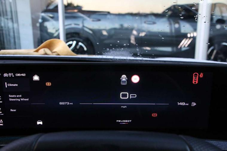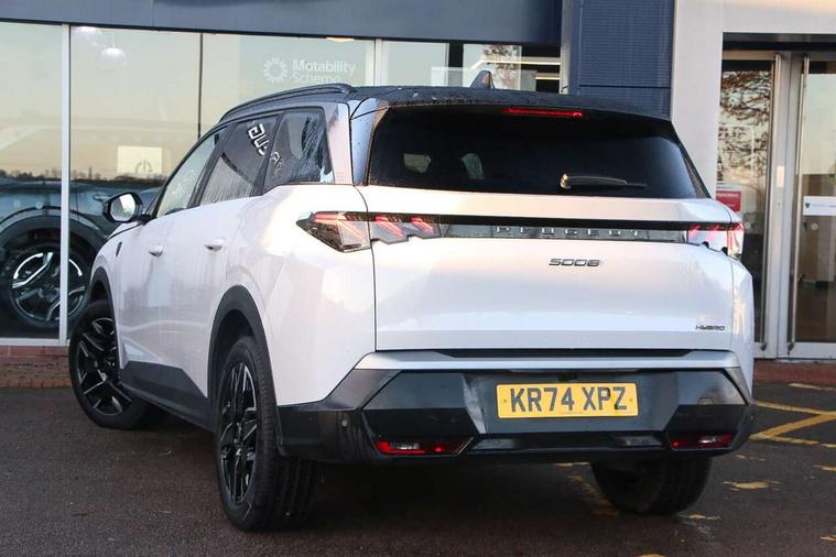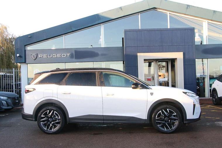 Adaptive cruise control with Stop and Go, Bluetooth with two microphones (Connect up to 2 phones), Drive modes select (Eco, normal and sport) with configurable ambient lighting, Driver foot rest, Driver profile selection, E-call, Exterior temperature indicator with ice warning, Front parking sensor, Front passenger seat detection, Hands free Smart Electric Tailgate (foot operated), Lane keep assist, Manual gear changes via steering mounted paddles, Multi function trip computer, Natural voice recognition, PEUGEOT i-Cockpit - 21" HD panoramic curved display incorporating instrument panel and touchscreen with 3colour themes, PEUGEOT i-connect advanced HD fully customisable touch screen, Navigation with Tom Tom Live updates and over the air map updates, PEUGEOT SOS and assistance, Rear parking sensor, Speed limit and traffic sign recognition and recommendation, Wireless mirror screen with apple carplay and android auto, Wireless smartphone charger with status light and ambient lighting, Dynamic stability control and electronic anti-skid system, 1x USB-C port in front, 6 speakers, AM/FM bi-tuner, DAB Radio (Digital Audio Broadcasting), Peugeot customisable virtual iToggles, 5008 model designation badges front and rear in basalt grey, Acoustic windscreen, Automatic hazard light activation upon heavy brake application, Automatic headlamp activation, Automatic windscreen wiper activation with interval wiping intensity control, Black diamond roof and floating effect rear spoiler finished in nera black metallic, Body coloured exterior door handles, Dark tinted privacy glass for rear door, Tailgate and Quarter windows, Door mirrors - Welcome lighting and integrated LED indicators, Electric adjustable/heated/folding door mirrors, Flat blade wipers with magic wash integrated nozzles, Frameless electrochrome rear view mirror, Front and rear electric windows with one touch, Front grille with body coloured accents, Gloss black connecting strip between rear lights, Gloss black finish B pillar, Gloss black roof rails, Grained black lower door claddings and wheel arches, Hybrid rear badging in basalt grey, Laminated windscreen, LED exterior lighting, LED third brake light, Lower front and rear bumper trims in meteor grey, Orbital gloss black door mirrors, Peugeot 3-claw signature front and rear daytime running lights, PEUGEOT shield on front wings, Pixel LED Technology headlights with adaptive high beam assist, Rain sensor, Rear full LED 3D peugeot signature claw effect lights with daylight function, Rear side wing doors, Rear wiper, Tailgate with heated rear window, 2 cupholders in front centre console with closed storage, 2 seat bench in 3rd row, 2nd Row Manual Window Blinds, 3 seat bench in 2nd row, 3x 12V sockets (Cabin front and rear and boot), 4 Grab handles retractable and damped, 4 tie down luggage rings, 40/20/40 folding 2nd row seat backrest with 60/40 base with easy access to 3rd row seat, Additional rear blower, Aluminium pedals, Arch design central console with concealed storage, Central front armrest with ventilated storage compartment and LED lighting, Chrome finish interior door handles, Compact heated multifunction steering wheel with full grain leather Iced Clay stitching, gloss black and satin chrome detailing and GT badge, e-Toggle compact gear selector, Electric power steering with reach and rake adjustable steering column, Glasses storage box, roof mounted, LED boot light, LED footwell lights, LED front and rear roof lights, LED Glovebox light, LED illuminated driver and passenger concealed sunvisor mirrors, Luggage cover, Luxury front and rear carpet mats with Iced Clay stitching and GT logo, Mistral black pillars and headlining, Quick launch cabin heating/cooling function, Rear air vents, Rear centre 3 point seat belt, Roll up awning fitted to tailgate, Roof lining - Meteor grey, Seatbelt unfastened on the move audible and visual alert for front and rear seats, Single front passenger seat, Stainless steel PEUGEOT door sill trims, Tri zone climate control, Twin USB charging ports in the rear (Type C), Two bag hooks, Under floor storage in boot, 2x Isofix child seat fitting on outer rear seats with zipped cover, 3x3 point rear seat belts, ABS (Anti-lock Braking System) with (EBD) Electronic Brakeforce Distribution, Adaptive driver and front passenger airbags with passenger airbag deactivation function, Advanced Emergency Braking System with radar (AEBS3) providing night detection of pedestrians and cyclists, Child locking functionality on rear doors, Electronic parking brake, Emergency Brake Assist (EBA), Front and rear curtain airbags, Front and rear side airbags, Front optimised safety headrests and 3 x rear retractable headrests with height adjustable, Front/rear disc brakes, Hill start assist, Post collision safety brake, Seatbelts - Front and rear outer seats with pyrotechnic pretensioners and force limiters, Tyre under inflation monitoring and detection (Indirect), 2x Keys (Lock, Unlock, Boot release function with concealed key), Acoustic vehicle alert system (AVAS), Automatic door locking when moving off, Deadlocking system, Electronic code immobiliser, Exterior passenger door lock, Locking wheel nuts, Peugeot Open and Go (keyless entry and push button start), Seatbelts reminder and unfastend warning indicator, Thatcham category 1 Perimetric and volumetric alarm with anti-lift detection, Aluminium printed dashboard and front door panel Alcove decor, Textile decor for dashboard, door panels and centre console arch, 19" YARI diamond cut alloy wheels with star center cap in orbital black, Michelin e-primacy class A tyres, Tyre repair kit includes 12V compressor, Sealant and storage box,