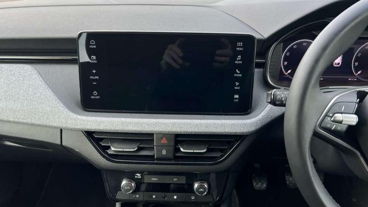 Advanced driver attention and drowsiness monitor, Bluetooth, e-Call (emergency call), Front assist system, PAS, Rear parking sensors, Rear view camera, Speed limiter, Tailgate, Traffic sign recognition, Virtual Cockpit - 10.25" digital display, Voice control system, Wireless smartlink, 4 USB C ports, 8 Speakers, 9.2" Skoda navigation display, DAB radio, Auto dimming rear view mirror, Automatic headlamp activation with Coming home and Leaving home feature, Automatic high/low beam, Body colour bumpers, Body colour door mirrors and handles, Chrome moulding around grille, Front and rear electric windows, Full LED headlights, Heated rear window, LED 3rd brake light, LED brake lights, LED daytime running lights, LED front turning lights, LED high beam, LED low beam, LED taillights, Rear LED fog light, Rear side wing doors, Rear wiper, Tinted windows, Unique dark chrome design logo on alloy wheels, 12V socket in luggage compartment, 3 seat bench in 2nd row, Black / Grey armrest stitching, Black hotstamping, Cargo elements, Chrome inner door handles, Door inserts in satin black, Driver and passenger sun visors with vanity mirror, Dual zone climate control, Front and rear roof lights, Front centre armrest, Front head restraints, Glasses storage in roof liner, Height adjustable driver seat, Height adjustable passenger seat, Ice scraper, Illuminated glove compartment, Inner circulation control with pollen filter, ISOFIX for front passenger seat, Isofix preparation for back seats, Leather gearknob and handbrake lever, Loft cloth upholstery, Luggage net under rear parcel shelf, Manual lumbar support for front seats, Net package and top tether hooks in boot space, Pearl grey ceiling, Pocket on the back of both front seats, incl. mobile phone pockets, Single front passenger seat, Skoda lettering on steering wheel, Textile floor mats, Third rear headrest, Ticket holder, Top tether for front passenger seat, Umbrella in driver's door, 3x3 point rear seatbelts, ABS, Child locks, Curtain airbags and front side airbags, Disc brakes, Driver and front passenger airbags, ESP, Hill hold control, Manual leather parking brake, One tone horn, Passenger airbag switch off function, Seatbelt reminder for driver and front passenger, Tyre pressure monitoring system, Anti theft alarm system with interior monitoring, backup horn and towing protection, Anti-theft wheel bolts, Remote central locking with 2 remote folding keys, SAFE function for remote central locking, Decord pad, door inserts Kota uni,