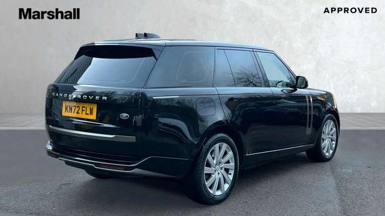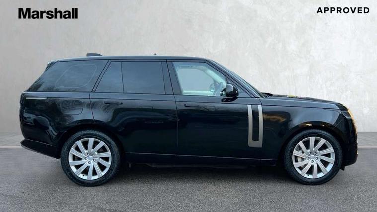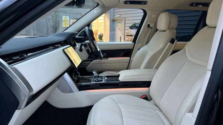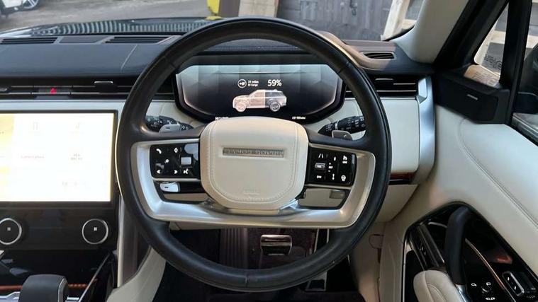 13.1" Touchscreen, 3D surround camera inc frwd traffic detection, vehicle clearance guidance, 3D view, clearsight ground view, manoevure light, 360 parking aid, wade sensing, Adaptive cruise control with steering assist, All Terrain Info Centre, All wheel steering, Android Auto, Apple car play, Blind spot assist, Bluetooth connectivity streaming, Driver condition response, Eco mode, Electric power assisted steering (EPAS), Emergency call service, Front and rear parking aid, Interactive driver display, Lane keep assist, Powered gesture tailgate/boot lid, Rear collision monitor, Rear traffic monitor, Remote, Traffic sign recognition with adaptive speed limiter, Wi-Fi Enabled with data plan, Wireless device charging with phone signal booster, 7 kW onboard charger, 8 speed automatic transmission, Active damper technology system, Adaptive dynamics, All terrain progress control, All Wheel Drive (AWD), Automatic access height, Home charging cable 5m Mode 2 including plugs, Public charging cable 5m Mode 2 including plugs, Terrain Response 2 Auto, Twin speed transfer box, Digital Audio Broadcast radio-DAB, Pivi pro including smart settings, Connected navigation pro, nuance speech, USB socket, Acoustic laminated windscreen, Animated directional indicators, Automatic headlights, Automatic levelling headlights, Centre high mounted stop light, Electric windows with one touch open/close and anti trap, Flush deployable exterior door handles, Front and rear recovery eyes, Front fog lights, Headlamp power wash, Heated rear window, Heated washer jets, LED tail lights, Power fold, auto-dimming, heated door mirrors with approach lights, Rain sensing windscreen wipers, Range rover badge, Rear boot, Rear fog lights, Rear side wing doors, Rear wash/wipe, Side repeater indicators in mirror, Trailer stability assist, Winter wiper park position, 12V power sockets, 3 seat bench in 2nd row, Air quality sensor, Bright metal pedals, Cabin lighting, Customer configurable single point entry, Driver and passenger front seat armrests, Easy boot loading, Ebony Carpet, Front and rear cupholders, Front and rear grab handles, Front head restraints, Gearshift paddles, Heated steering wheel, Hook in load space, Loadspace light, Luggage tie down in loadspace, Multifunction steering wheel, Rear centre armrest, Rear head restraints, Rear ISOFIX, Single front passenger seat, Twin blade sunvisors with Illuminated vanity mirrors, Upper and lower glovebox, Online pack with data plan - Range Rover, 3x3 point rear seat belts, Anti-lock braking system (ABS), Brake hold function, Cornering brake control (CBC), Customer configurable autolock, DSC - Dynamic Stability Control, Electronic brake force distribution, Electronic parking brake, Electronic traction control, Emergency brake assist, Emergency braking, Front airbags with passenger seat occupant detector, Front side airbags, Hill descent control, Hill launch assist, Low traction launch, Occupant protection assist, Power operated child locks, Roll stability control, Tyre pressure monitoring system (TPMS), Immobiliser, Intrusion sensor and alarm, Keyless entry, Locking wheel nuts, Remote central locking, Noble chrome controls,