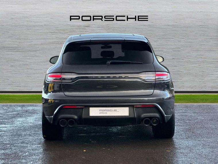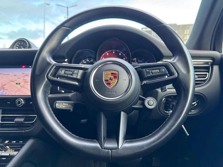 Analogue clock on dashboard, Automatic start/stop system, Automatic tailgate, Digital boost pressure gauge on colour display of instrument cluster, eCall emergency call system, Instrument cluster with high resolution 4.8-inch TFT display, gear indicator for PDK, service interval display, external temperature indicator, fuel gauge, Off-road button, On board computer, Porsche Communication Management (PCM) including online navigation module, mobile phone preparation, audio interfaces and voice control system, Sports button in centre console, 7-Speed Porsche Doppelkupplung (PDK) with automatic mode and manual controls (gearshift paddles) on steering wheel, 75 litre fuel tank, Direct fuel injection (DFI), Gasoline particulate filter, VarioCam Plus variable valve timing and switchable valve lift, 2 USB sockets in rear centre console, Apple CarPlay with Siri voice recognition, Connect Plus including online navigation, LTE communication module with SIM card reader, wireless internet access, Porsche Car Connect services, DAB Digital radio, Porsche Vehicle Traking System Plus (PVTS Plus), Two USB C charging and connectivity ports in the front centre console storage compartment, Active radiator grille shutters, Automatic headlight activation including welcome home lighting, Bumper system with high strength cross members and two deformation elements + One threaded fixture point for towing eye contained in onboard tool kit, Dynamic cornering lights, speed-sensitive headlight and dynamic range control, adverse weather function, four-point LED daytime running lights, Electric front and rear windows with remote closing function + anti trap + one touch, Electrically folding and heated exterior mirrors, Front light modules with LED position lights and direction indicators, Front windscreen wipers with two speeds, intermittent wipe and rain sensor, Front with integrated cooling air intakes, Fully galvanised body, Heated rear window with automatic switch off, High gloss black side window trims, High level 3rd LED brake light integrated into roof spoiler, Loading edge protection in aluminium, Rear side wing doors, Rear window wiper with intermittent function and washer jet, Roof spoiler with fixed double wing design and fin like look in high gloss black, Switchable sports exhaust system, Tinted LED taillights with three-dimensional lighting graphics, integrated fourpoint brake lights and light strip, Towbar preparation, Twin sports tailpipes in black with sports exhaust, 3 adjustable rear headrests, 3 rear seats, 4 way adjustable front head restraints, 40:20:40 split folding rear bench seat, Cloth hook b-pillar, Fold up centre console armrest with fore/aft adjustment, Front and rear bottle holders in door panels, Front passenger seat, Glove compartment, Isofix fastening system for child seats on outer rear seats, Luggage compartment cover, Particle/pollen filter with active carbon filter, Rear armrest with 2 cupholders, Storage bin in centre console, Storage compartment in side of luggage compartment and storage compartment in spare wheel recess, Storage pocket in front and rear doors, Two integrated cup holders in front with variable diameter, Two socket 12V power outlets in front console and luggage compartment, Uncovered storage compartment in centre console, Ambient comfort lighting pack - Macan, Lower exterior trim package in painted exterior colour - Macan, 3-point automatic seatbelts with front and outer rear seats pretensioners and force limiter + manually height adjustable seatbelt + reminder warning, 6-piston aluminium monobloc fixed caliper brakes at front, internally vented brake discs, Auto hold function, Brake discs with diameter of 390mm at front and 356 mm at rear, Child locks on rear doors, Curtain airbags along entire roof frame and side windows from A pillar to the C pillar, Electronic parking brake, Front passenger airbag deactivation facility for installation of child seats indicator in overhead console, Front side airbags integrated into seat, Full size driver and passenger airbags, Multi-Collision braking, Porsche hill control (PHC), PTM(Porsche Traction Management) and All-wheel drive with map-controlled multi-plate clutch, Roll over sensor for curtain airbag and seatbelt pretensioners, Side impact protection in doors, Tyre pressure monitoring system, Vehicle stability system, Porsche stability management (PSM) including ABS, ASR, ABD, MSR and trailer stability management, Vented discs brake with combination floating calipers at rear, Alarm system with ultrasonic interior surveillance, Engine immobiliser with key transponder, Remote control central locking, Accent trims with silver coloured finish, Wheel centres with full colour Porsche crest,