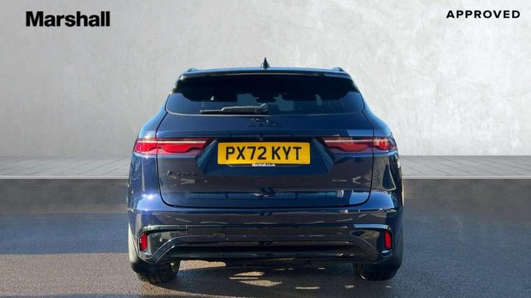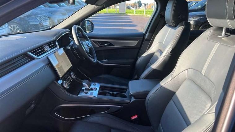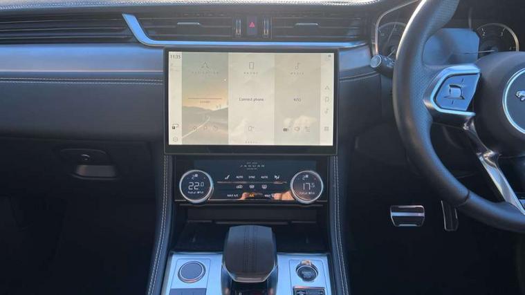 11.4" touchscreen, Android Auto, Apple car play, Blind spot assist, Bluetooth connectivity, Clear exit monitor, Driver alert system, Driver condition monitor, eCall emergency call system, Eco driving style assistant, Electric power assisted steering, InControl remote, Jaguar Toggle shift selector, Lane departure warning system, Lane keep assist, Outside temperature gauge, Personalisation profile management, Pivi pro connected navigation system with app interface and media storage, Pro services and wifi hotspot, Push button starter, Rear traffic monitor, Service interval indicator, Speed proportional steering, Start up sequence with movement in dials and lighting, Traffic sign recognition with adaptive speed limiter, Trip computer, Voice control system, 8 speed automatic transmission, All terrain progress control, All Wheel Drive (AWD), Open differential with torque vectoring by braking, AM/FM radio, Bluetooth streaming, DAB Radio (Digital Audio Broadcasting), Dynamic volume control, InControl apps, InControl protect, iPod integration, 3 flash lane change indicators, Animated directional indicators, Approach Illumination, Auto dimming rear view mirror, Automatic headlights, Body colour door mirrors, Electric heated/power fold memory door mirrors with approach lights and auto dimming driver side, Electric windows with one touch open/close and anti trap, F-Pace and R Dynamic badge, Green tinted glass, Heated front windscreen + heated washer jets, Heated rear window with timer, Jaguar script and leaper, LED High level third brake light, LED tail lights, Non acoustic front windscreen, R Dynamic badge on side door, Rain sensor windscreen wipers, Rear fog lights, Rear metal tread plates, Rear side wing doors, Rear wiper, Trailer stability assist, Variable front intermittent wipers, 12V power point front, 3 rear headrests, 3 seat bench in 2nd row, Air distribution speed, Bright metal foot pedals, Centre armrest console, Centre console with side storage, Deletion loadspace storage rails, Door sill tread plates, Fold flat front seats, Front centre armrest with storage compartment, Front door storage space, Glovebox finisher with jaguar script, Heated steering wheel, Hooks in loadspace, Illuminated glovebox, Interior front door handles with separate locking switches, ISOFIX on outer rear seats, Jaguar sense, Luggage tie downs in loadspace, Mist sensing, Multifunction steering wheel, Overhead lighting console, Overhead stowage for sunglasses, Passive front head restraints, Premium cabin lighting, Premium carpet mats, R-Dynamic branded leather steering wheel, Rear air vents, Rear armrest with twin cupholders, Rear centre headrest, Rear door storage space, Reversible boot floor, Satin chrome gearshift paddles, Shopping bag hook, Single front passenger seat, Sunvisors with illuminated vanity mirrors, Twin front cupholders with cover, Online Pack with data plan - F-Pace, 355mm front brakes and 325mm rear brakes, 3x3 point rear seatbelts, ABS, All surface progress control (ASPC), Brake pad warning light, DSC - Dynamic Stability Control, Electric parking brake (EPB), Emergency brake assist, Front airbags with passenger seat occupant detector, Front and rear seatbelt reminder, Front side airbags, Full length side window curtain airbag, Hill launch assist, Power operated child locks, Torque vectoring brake, Traction control, Tyre pressure monitoring system, Immobiliser, Keyless entry, Keyless Start, Locking wheel nuts, Perimeter alarm, Remote central locking, Valet mode,