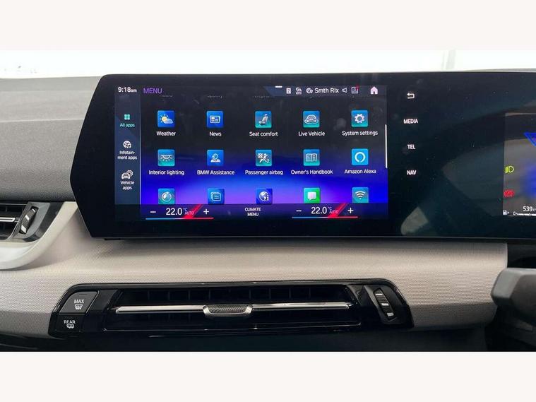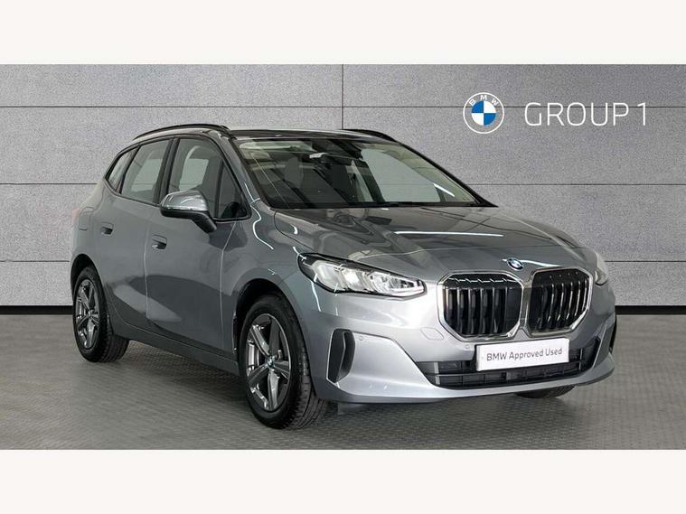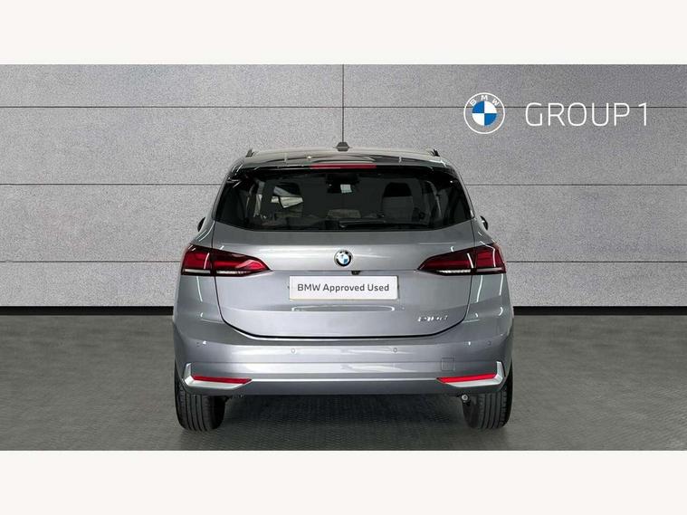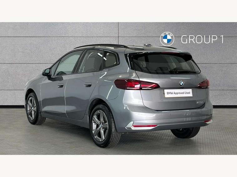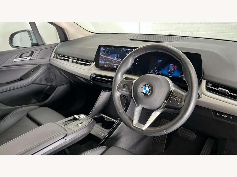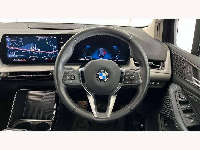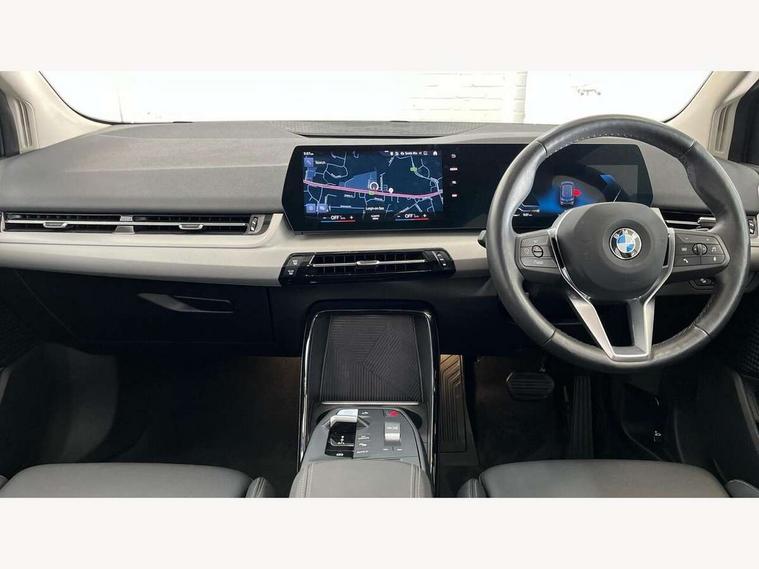 Active Guard incl speed limiting and lane departure functions with auto steering, and front collision warning with brake intervention, Automatic powered tailgate, Automatic start/stop function, BMW Online services, BMW Teleservices, Brake pad wear indicator in front and rear, Condition based service, Drive off assistant, Flat air vents on instrument panel in high gloss black, adjustable slats with elements in pearl chrome, iDrive controller, Language version English, On board computer - average speed+fuel consumption, service interval, clock/date, odometer/trip meter, outside temperature display and ice warning, Parking assistant with active park distance control, reversing assistant, lateral parking aid and rear view camera, Servotronic variable electric power steering (EPS), Smartphone integration, Widescreen display, Diesel particulate filter, Diesel with SCR emission control system, Drive performance control with ECO PRO comfort + sport mode, Gear selector switch with toggle operation, Standard suspension, Steptronic transmission with double clutch, 2x USB Type C ports in front centre console for charging and data transfer, 2x USB Type C ports in rear centre console for charging, DAB Digital radio, Welcome sound upon opening of the front driver or passenger door, Automatic headlights, BMW emblem, engine compartment lid and tailgate, BMW radiator grille with grille struts, end face black high-gloss, radiator grille frame chrome high-gloss, Body colour sill covers, Body coloured door mirror caps, Contoured rear roof spoiler in vehicle colour with side aeroblades in black high-gloss, Driver side exterior mirror lighting with BMW logo projection, Dynamic brake lights, Electric adjustable heated door mirrors, Electric windows - front and rear, with open/close fingertip control, anti-trap facility and comfort closing, Folding door handles integrated flush with surface, Front and rear windscreen wipers with heated front washer nozzles, Front bumper cover with air inlet trims for air curtains in matt black, Front door exit lights, Heated rear window, Hidden exhaust pipe, High gloss shadow line, High gloss shadowline roof rails, LED Daytime running lights and parking lights with turn indicators, LED number plate light, LED third brake light in rear spoiler, Manual headlight range control, Matt black roof strips, Model inscription on right tailgate, Rain sensor, Rear bumper cover with two L-shaped trims in Pearl chrome, Rear side wing doors, Shark fin antenna, Trailer stabilisation logic, Visible VIN plate, Welcome lighting, Windscreen washer nozzle for rear view camera, 12V power socket in luggage compartment and front centre console, 12V socket in right side trim panel, 2 bag hooks in luggage compartment, 2 front reading lights, 2 open cup holders in front centre console, 3 seat bench in 2nd row, 40:20:40 split folding rear seat backrests, Ambient lighting front and rear, Automatic two zone climate control air conditioning, Bottle trays in all doors, Child seat ISOFIX attachment for two outer rear seats and front passenger seat with anchorage points, Driver and front passenger sports seats, Footrest and pedals in black plastic, Four grab handles integrated in roof lining, Front and rear door pockets, Front and rear footwell lighting, Front and rear side armrest integrated into door trim, Front and rear velour floor mats in anthracite, Front centre console storage compartment, Front head restraints, Glovebox with light, Height adjustable 3 rear head restraints, Interior door handle recess light on all doors, Luggage compartment lighting, Map pockets, Mechanical rear seats with fore/aft adjustment, Multi-function controls for steering wheel, One piece parcel shelf opens together with tailgate and removable, Rear cloth hooks, Single front passenger seat, Sliding rear seat bench, Steering wheel column manual adjustment, Storage compartment lighting in centre console and storage tray in centre stack, Storage compartment net in left side trim panel, Storage compartment with folding cover under centre console armrest cushion, Storage tray in right side trim panel, Sunvisors with illuminated vanity mirrors, Three spoke sport leather steering wheel, Connected pack professional - 2 Series Active Tourer, 3 point seatbelts on all seats, front pyrotechnic belt tensioners, stopper and belt force limiters, rear coded belt buckles, Airbag - Front driver and passenger, front and rear head, front side, curtain head protection, manual deactivation of front passenger airbag possible, Anti lock braking system (ABS) with brake assist, Automatic hold function, BMW emergency call, Brake drying, Braking readiness, Child proof locking system in rear door, Cornering brake control, Crash Sensor - activates hazard/interior lighting + unlocks doors, DSC - Dynamic Stability Control, Dynamic brake control, Dynamic Traction Control - DTC, Electromechanical parking brake, Energy recovery system, Front disc brakes, Integrated braking system, PC iBrake PostCrash approach control warning with light braking function, Rear disc brakes, Tyre pressure monitoring system, Warning triangle and first aid kit, Anti theft alarm system, Closing system with central locking, Engine immobiliser, Locking wheel bolts, Front centre console trim in high gloss black with my mode expressive, Reduced rolling resistance tyres,