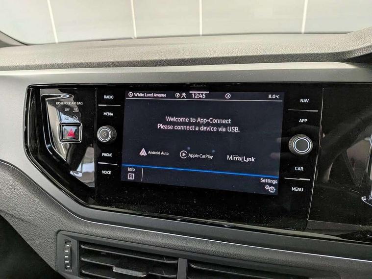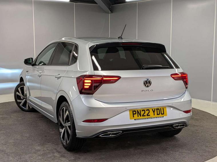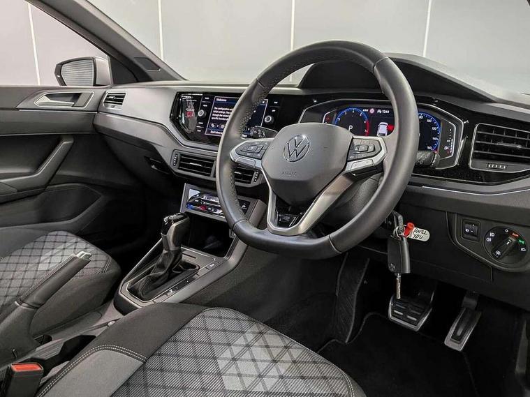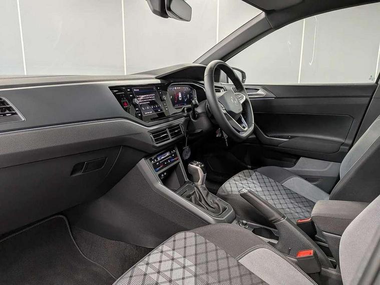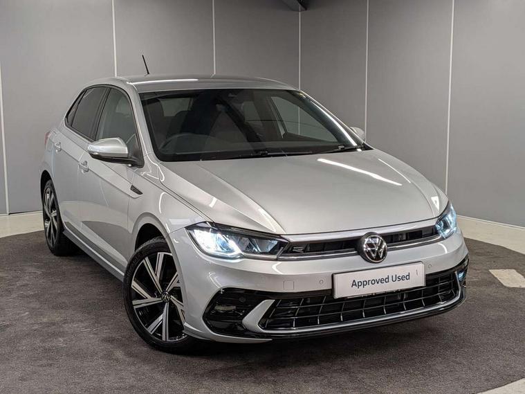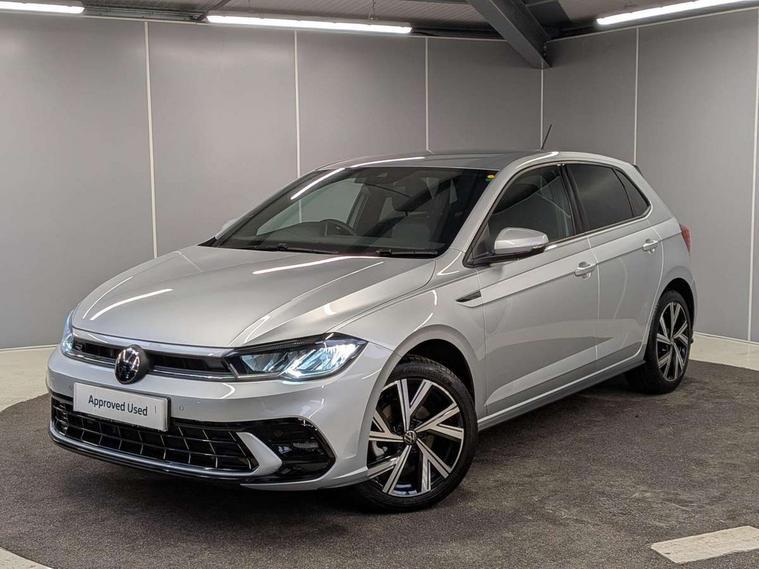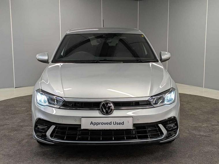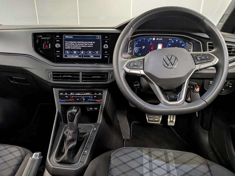 Adaptive cruise control with follow-to-stop and speed limiter, Bluetooth mobile phone interface, Digital Cockpit Pro with 10.25" Display, Driver alert system, Dynamic road sign display, Emergency call service, Power assisted speed sensitive steering, Preparation for We connect and We connect plus, Speedo and rev counter, electronic odometer, trip, service interval display and fuel gauge, Standard rear axle, Travel Assist - Lane keeping system and traffic jam assist, Travel assist including emergency assist, Trip computer, Warning signal and warning light for front and rear seatbelts not fastened, Washer fluid level indicator, Wireless app connect, Front wheel drive, Rear shock absorpion, Start-stop system with battery regeneration (recuperation - energy recovery during braking), DAB Digital radio, Diversity antenna for FM reception, Front and rear 6 speakers, Body colour bumpers, Body colour door handles, Body colour door mirrors, Electric front windows, Front scuff plates with R-Line logo, Heat insulating darkened glass in side and rear windows, Heat insulating glass windscreen, Power folding adjustable/heated exterior mirrors and front passenger exterior mirror lowering function, Rear electric windows, Rear fog light, Rear side wing doors, Rear tinted glass from B-pillar backwards approx 65% tinted, Rear windscreen washer and wiper with interval delay, Third brake light, 12V power socket in centre console, 2 USB-C ports in the front, 2 USB-C charging sockets on the center console in the rear, 3 rear head restraints, 60/40 split folding rear seat and rear seat bench not split, Air care climatronic air conditoning system with active combination filter and 2-zone temperature control, Black roof lining, Ceramique headliner, Chrome plated radiator grille inserts, air vent surrounds and light switch surrounds, Door and side trim panel, Driver and front passenger seat height adjustment, Driver/passenger sunvisors with illuminated vanity mirrors, Front + rear carpet mats, Front centre armrest, Front footwell illumination, Front seat backrest storage pockets, Front sports comfort seats, Handbrake lever handle in leather, Isofix child seat preparation easy-fit (for two outer rear seats, and front passenger seat) compatible with I-size, Karoso artvelours cloth upholstery, Leather trimmed gear knob, LED interior light with switch off delay and dimmer, 2 reading lights front and rear, Luggage compartment cover, Luggage compartment floor, Luggage compartment lighting, Lumbar adjustment for front seats, Single front passenger seat, Stainless steel pedals, Standard pedal cluster, Three spoke leather wrapped multifunction steering wheel with shifting paddles, Light and sight pack - Polo R-Line/Black Edition, 3 point height adj front seatbelts + pretensioners, 3x3 point rear seatbelts, ABS, Driver and front passenger airbag with front passenger airbag deactivation, Drivers and front passengers safety optimised head restraints, ESC (Electronic stability control) + EDL (Electronic Differntial lock) and ASR (Traction control), Extended and predictive pedestrian/ cyclist protection, Front curtain and side airbags with center airbag, Front/rear disc brakes, Hill hold control, Manual child lock in rear doors, Single tone horn, Tyre pressure loss indicator, Alarm with interior protection, Anti-theft alarm system with interior monitoring, backup horn, and towing protection, Anti-theft wheel bolts, Electronic engine immobiliser, Chrome applications on rotary light, mirror adjustment, window regulator switches, outlet with frame in black, Dark grey anodised matt decorative inserts in dash and front door panels, Low rolling resistance tyres,