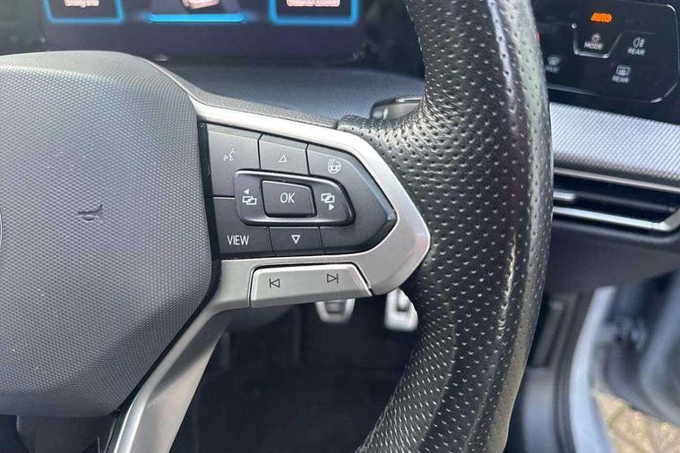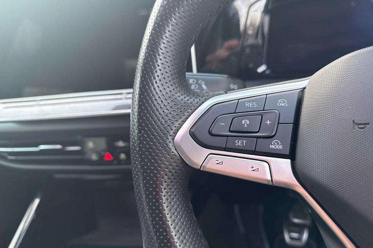 Activated carbon canister, Adaptive cruise control (ACC), Advanced driver attention and drowsiness monitor, Dynamic road sign display, Dynamic steering, E-Sim card for online connectivity, eCall emergency call system, Multi-color Digital cockpit pro, selection of different info profile possible, Multifunction front facing camera for distance control, Navigation system, Oncoming vehicle braking when turning including swerve support, Preparation for light assist system, Speed limiter, Speedo, rev counter, electronic odometer, trip, service interval display, exterior temperature and fuel gauge, Traffic jam assist, Voice enhancer and voice control, Warning signal and warning light for front and rear seatbelts not fastened, We connect plus preparation, We connect preparation, Wireless app connect, Petrol Particulate Filter, Start-stop system with battery regeneration (recuperation - energy recovery during braking), XDS electronic differential lock for improved traction and handling, 2 USB C ports in front, 2 USB charging sockets on the centre console in the rear charging capacity upto 45W, Comfort telephony + wireless charging, without wireless aerial connection, Digital radio reception (DAB), Diversity antenna for FM reception, Gaming platform via car app, Infotainment system with 12.9" display, Mobile phone interface with inductive charging feature, 3rd brake light, Auto headlights, Automatic headlamp activation with Coming home and Leaving home feature, Body colored bumpers in R-Line style, Body colour door handles, Exterior ambient lighting with illuminated door handles, Exterior mirrors convex on the left and aspherical on the right, Front and rear electric windows, Heat insulating windshield made of laminated glass, LED daytime running lights, Rear exhaust tailpipe, Rear fog light on one side and reversing lights on both sides, Rear side wing doors, Rear windscreen washer and wiper with interval delay, Remote electrically foldable door mirrors, puddle lights and reverse activated passenger's door mirror, Welcome light with surround lighting, 12V socket in front centre console, 12V socket in luggage compartment, 3 rear head restraints, 3 seat bench in 2nd row, Ambient lighting with 30 colour including LED light unit in front footwell with selectable light colour, Brushed stainless steel pedals, Carpet mats, front and rear, Chrome plated radiator grille inserts, air vent surrounds and light switch surrounds, Front centre armrest, Integrated front head restraints, ISOFIX anchors for child seats on outer rear bench seats and on front passanger seat compatible for i-Size, Leather gearshift handle, Luggage compartment lighting, Premium sports seats in front, Rear cupholder and loadthough, Single front passenger seat, Soul black instrument panel, Split folding backrest with centre armrest and unsplit rear seat bench, Storm grey roof lining, Sun visors with illuminated vanity mirrors, 3 point height adj front seatbelts + pretensioners, 3 rear three point seatbelts, ABS, Autonomous emergency braking front assist with pedestrian and cyclist monitoring, Child locks on rear doors, Driver and front passenger airbag with front passenger airbag deactivation, Electronic parking brake with auto hold, ESC (Electronic Stability Control), Extended pedestrian protection measures, Rear disc brakes, Two tone horn, Tyre pressure loss indicator, Volkswagen roadside assistance, Anti theft wheel bolts, Preparation for alcohol interlock, Decorative inserts carbon grey for dashboard and front door trim panels,