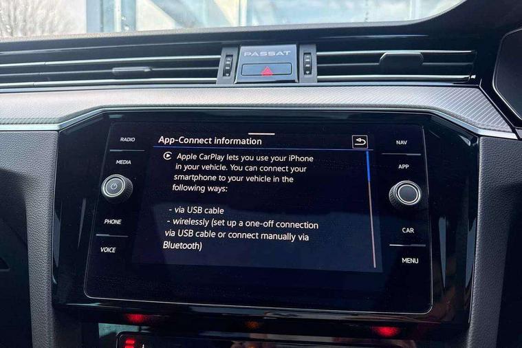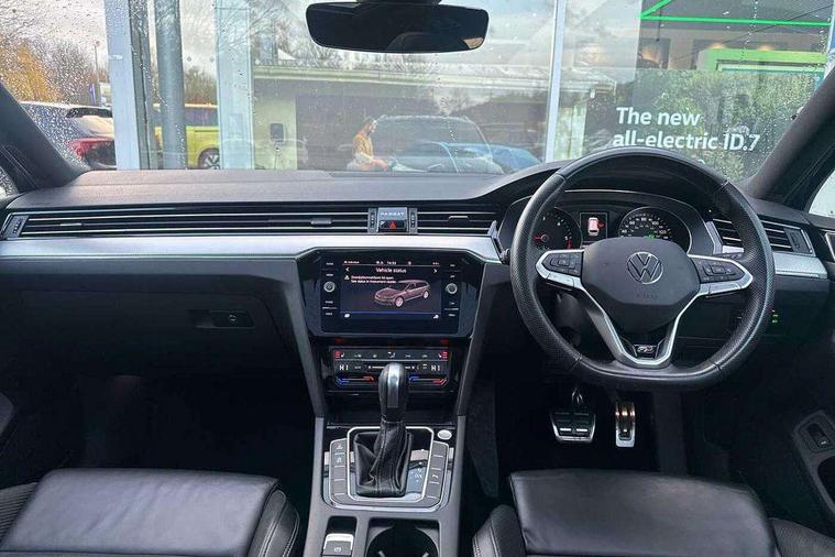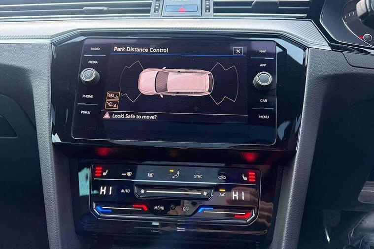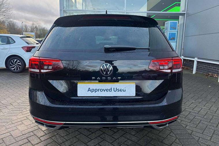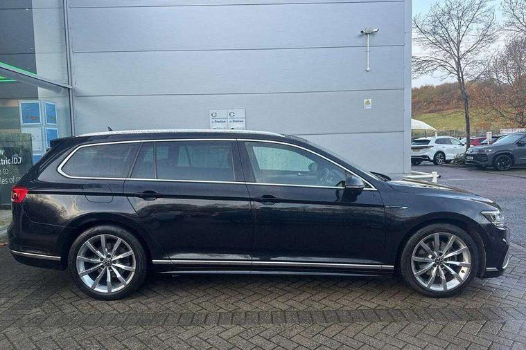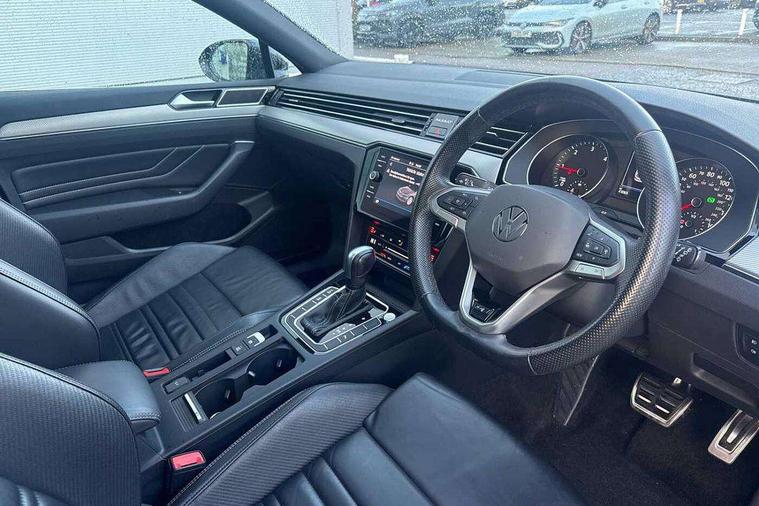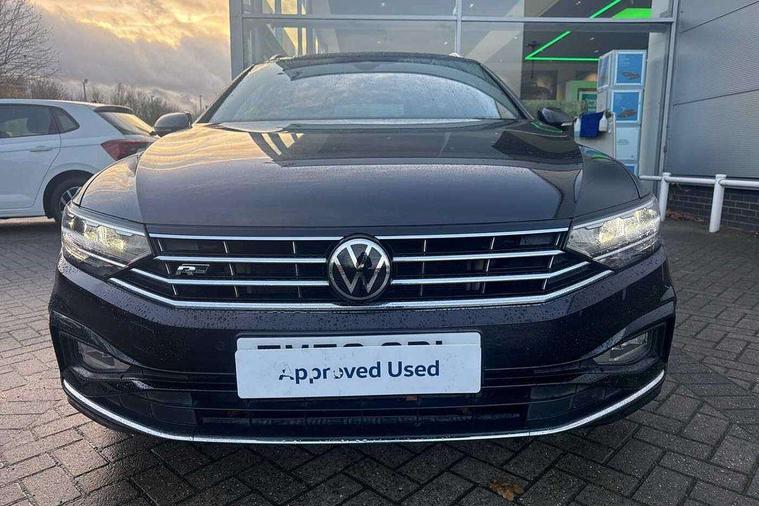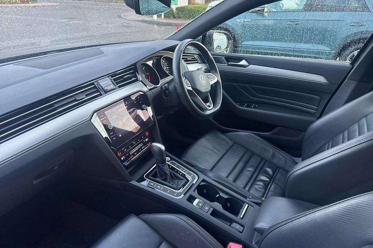 Adaptive cruise control including Front Assist, radar sensor controlled distance monitoring system, City emergency braking system, Driver alert system, Driver profile selection, Exterior temperature gauge with frost alarm, Lane assist, Low washer fluid warning light, Multifunction computer includes visual gear, One touch indicator turn signal, Proactive occupant protection, Security and service including e-call, Speed sensitive power steering, Speedo and rev counter, electronic odometer, trip, service interval display and fuel gauge, Start/Stop function, Traffic jam assist, Voice activation, Warning buzzer and light for front seatbelts unfastened, We connect plus, Battery regeneration during braking, Diesel particulate filter, Misfuel prevention device, Aerial for radio integrated into rear windscreen, DAB Digital radio receiver, External, USB type C data sockets with increased charging performance front (45 Watt), All LED headlights range adjustable with reflector technology Including 12 separate LED daytime running lights with indicator function, Auto dimming interior rear view mirror, Automatic headlights with dusk sensor, Automatic leaving home and manual coming home lighting functions, Black radiator grille with chrome louvres, Body colour bumpers, Body colour door handles, Body coloured door mirrors with intergrated indicators, Chrome side window surrounds, Electric heated windscreen washer jets, Front and rear electric windows, Front fog lights with static cornering function and chrome trimmed surround, Fully galvanised body, Gloss black finish on B pillar, Heated rear window, LED rear lights, LED rear number plate lights, LED third brake light, Plastic load sill protection, Rain sensor, Rear side wing doors, Rear tinted glass from B pillar backwards, approx 65% tinted, Rear window wash/wipe, Remote electrically adjustable and foldable heated door mirrors including automatic dimming function on drivers side door mirror puddle lights, Silver anodised roof rails, Warning lights for open tailgate and doors, White instrument lighting, Windscreen wipers/ intermittent wipe + 4 position delay, 12V socket in front centre console, 12V socket in luggage compartment, 3 seat bench in 2nd row, 40:20:40 split folding rear seat backrests, Carbon optic side bolsters, Climate control - 3 Zone electronic air conditioning with automatic air recirculation, Driver's door storage compartment for 1.0 litre bottle, Extending luggage compartment cover with convenience opening, stowable, Front and rear interior lighting with delay and dimming function, Front centre armrest with storage compartment and two rear air vents, Front cupholders x2 with covers, Front passenger storage compartment for 1.5 litre bottle, Front seats with embroidered R Line logo on backrest, Height adjustable and removable variable boot floor, Height adjustable rear seat head restraints (x3), Height/reach adjust steering wheel, Illuminated vanity mirrors, Isofix child seat preparation, outer rear seats, Load lashing points x 4 in luggage compartment, Load through provision, Lockable, illuminated, cooled glovebox, Luggage compartment lighting, Nappa leather upholstery, Rear seat centre armrest with storage compartment, Single front passenger seat, Stainless steel pedals, Storage compartment in rear doors, Storage compartment in roof console with cover, Unique R Line door sill protectors, Unique R Line front and rear carpet mats, Easy open package with full electric tailgate/ boot - Passat (Estate), R line styling pack - Passat (Estate), 3x3 point rear seatbelts, ABS (Anti locking brake system) includes BAS (Brake assist) and EBD (Electronic brake pressure distribution), Automatic post collision braking, Disc brakes front and rear, Door open warning reflectors, Driver/Front Passenger airbags, Drivers and front passengers safety optimised head restraints, longitudinal and height adjustable, Drivers knee airbag, Electronic parking brake with auto hold, First aid kit and warning triange with 2 face masks, Front and rear passenger curtain airbags, Front passenger airbag deactivation switch, Front side impact airbag, Height adjustable front 3 point seatbelts + pretensioners, Hill hold function, Pre crash preventive occupant protection, Rear door child safety locks, Rear seat side impact airbags, Rigid safety cell with front and rear crumple zones, Tyre pressure loss indicator, Volkswagen roadside assistance, Warning light for rear seat belts if unfastened, Alarm with interior protection and deactivation via infotainment system, Electronic engine immobiliser, Locking wheel nuts, Remote central locking, Chrome air vent and instrument surround, Unique R Line dark diamond flag decorative inserts in dash and door panels,