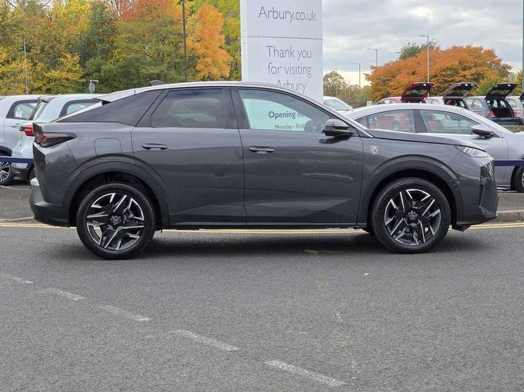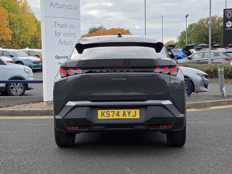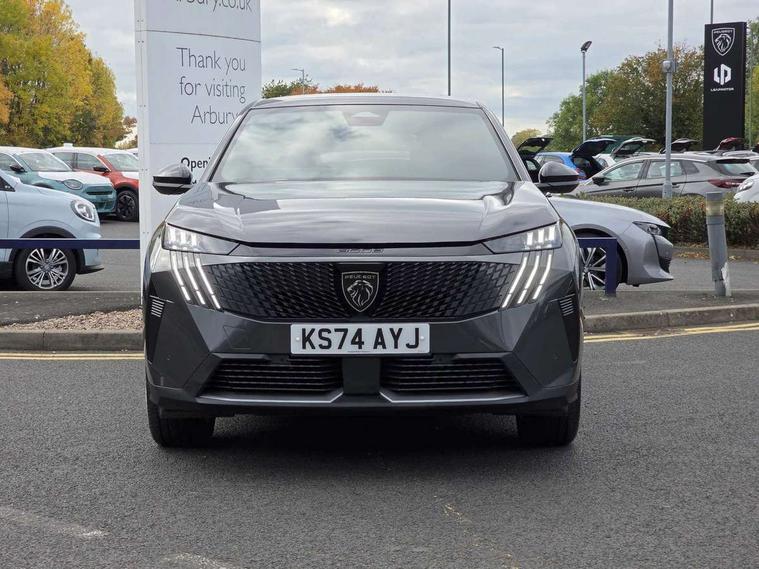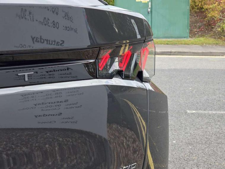Adaptive cruise control with Stop and Go, Bluetooth with two microphones (Connect up to 2 phones), Drive modes select (Eco, normal and sport) with configurable ambient lighting, Driver foot rest, Driver profile selection, E-call, Exterior temperature indicator with ice warning, Front parking sensor, Front passenger seat detection, Hands free Smart Electric Tailgate (foot operated), Lane keep assist, Manual gear changes via steering mounted paddles, Multi function trip computer, Natural voice recognition, PEUGEOT i-Cockpit - 21" HD panoramic curved display incorporating instrument panel and touchscreen with 3colour themes, PEUGEOT i-connect advanced HD fully customisable touch screen, Navigation with Tom Tom Live updates and over the air map updates, PEUGEOT SOS and assistance, Rear parking sensor, Speed limit and traffic sign recognition and recommendation, Wireless mirror screen with apple carplay and android auto, Wireless smartphone charger with status light and ambient lighting, Dynamic stability control and electronic anti-skid system, AM/FM bi-tuner, DAB Radio (Digital Audio Broadcasting), Peugeot customisable virtual iToggles, USB-C sockets (2 x front and 2 x rear), 3008 model designation badgers front and rear in basalt grey, Acoustic windscreen, Automatic hazard light activation upon heavy brake application, Automatic headlamp activation, Automatic windscreen wiper activation with interval wiping intensity control, Black diamond roof and floating effect rear spoiler finished in nera black metallic, Body coloured exterior door handles, Dark tinted privacy glass for rear door, Tailgate and Quarter windows, Door mirrors - Welcome lighting and integrated LED indicators, Electric adjustable/heated/folding door mirrors, Flat blade wipers with magic wash integrated nozzles, Frameless electrochrome rear view mirror, Front and rear electric windows with one touch, Front grille with body coloured accents, Gloss black connecting strip between rear lights, Gloss black finish B pillar, Grained black lower door claddings and wheel arches, Heated rear window, Hybrid rear badging in basalt grey, Laminated windscreen, LED daytime running lights, LED exterior lighting, LED third brake light, Lower front and rear bumper trims in meteor grey, Orbital gloss black door mirrors, PEUGEOT shield on front wings, Pixel LED Technology headlights with adaptive high beam assist, Rain sensor, Rear full LED 3D peugeot signature claw effect lights with daylight function, Rear side wing doors, 2 cupholders in front centre console, 2 rear cupholders, 3 seat rear bench, 3x 12V sockets (Cabin front and rear and boot), 4 Grab handles retractable and damped, 4 tie down luggage rings, 40/20/40 folding rear seat backrest with fixed base, Aluminium pedals, Arch design central console with concealed storage, Cabin high efficiency filter, Central front armrest with ventilated storage compartment and LED lighting, Chrome finish interior door handles, Compact heated multifunction steering wheel with full grain leather Iced Clay stitching, gloss black and satin chrome detailing and GT badge, Dual zone climate control, Dynamic front seats, e-Toggle compact gear selector, Electric power steering with reach and rake adjustable steering column, Glasses storage box, roof mounted, LED boot light, LED footwell lights, LED front and rear roof lights, LED Glovebox light, LED illuminated driver and passenger concealed sunvisor mirrors, Luggage cover, Luxury front and rear carpet mats with Iced Clay stitching and GT logo, Mistral black pillars and headlining, Quick launch cabin heating/cooling function, Rear air vents, Rear smartphone holder, Roof lining - Meteor grey, Seatbelt unfastened on the move audible and visual alert for front and rear seats, Single front passenger seat, Stainless steel PEUGEOT door sill trims, Two bag hooks, Two position boot floor, 2x Isofix child seat fitting on outer rear seats with zipped cover, 3x3 point rear seat belts, ABS (Anti-lock Braking System) with EBD (Electronic Brakeforce Distribution) and EBA (Emergency Braking Assistance), Adaptive driver and front passenger airbags with passenger airbag deactivation function, Advanced Emergency Braking System with radar (AEBS3) providing night detection of pedestrians and cyclists, Child locking functionality on rear doors, Driver and front passenger side airbags, Electric parking brake, Front and rear curtain airbags, Front optimised safety headrests and 3 x rear retractable headrests with height adjustable, Front/rear disc brakes, Hill start assist, Post collision safety brake, Seatbelts - Front and rear outer seats with pyrotechnic pretensioners and force limiters, Tyre under inflation monitoring and detection (Indirect), 2x Keys (Lock, Unlock, Boot release function with concealed key), Acoustic vehicle alert system (AVAS), Automatic door locking when moving off, Deadlocking system, Electronic code immobiliser, Exterior passenger door lock, Locking wheel nuts, Peugeot Open and Go (keyless entry and push button start), Seatbelts reminder and unfastend warning indicator, Thatcham category 1 Perimetric and volumetric alarm with anti-lift detection, Aluminium printed dashboard and front door panel Alcove decor, Textile decor for dashboard, door panels and centre console arch, 19" YARI diamond cut alloy wheels with star center cap in orbital black, Michelin e-primacy class A tyres, Tyre repair kit includes 12V compressor, Sealant and storage box,