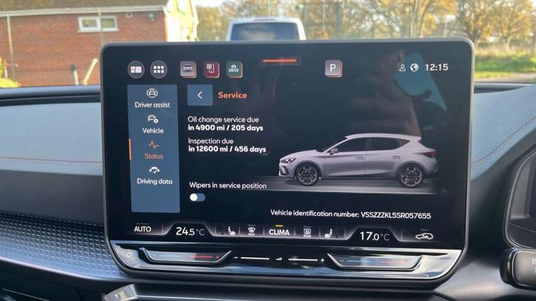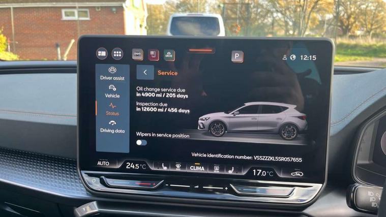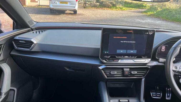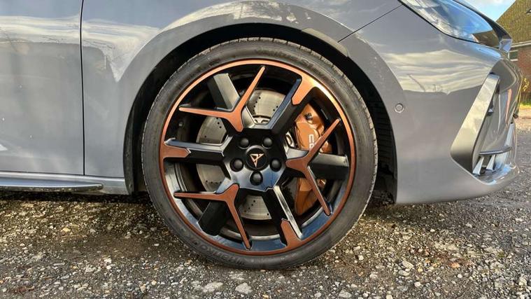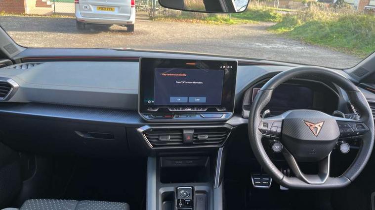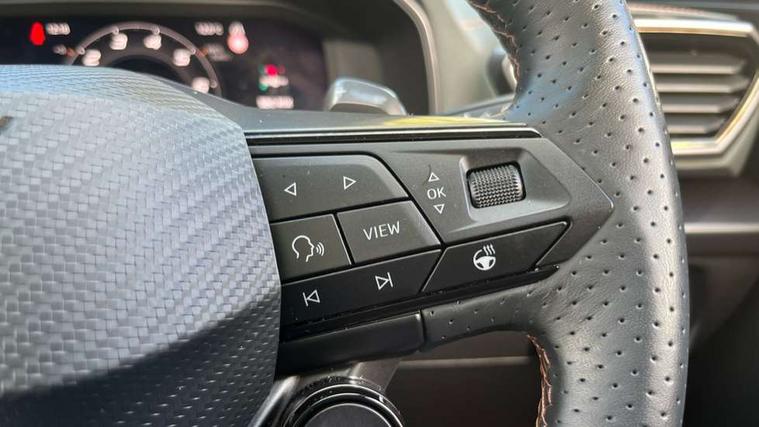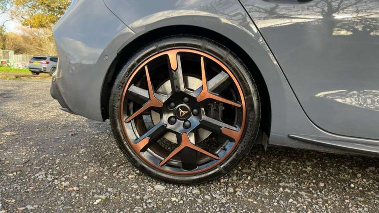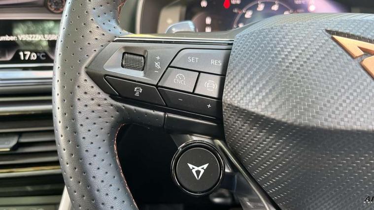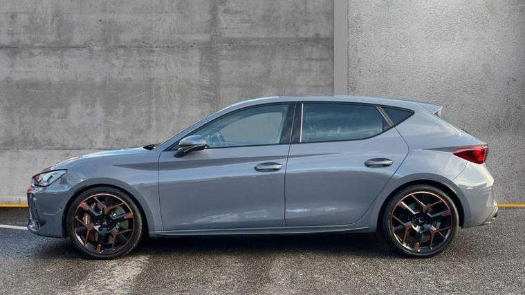Adaptive cruise control with follow-to-stop and speed limiter, CUPRA drive profile selection with (Comfort/Sport/Individual), throttle response and gearshift mode, Digital cockpit, Dynamic road sign display, E-call, Four x USB Type C ports (2 in front and 2 in rear), Front and rear parking sensors, Front assist with forward collision warning braking reaction to vehicles, pedestrians and cyclists, Full link smartphone integration with Mirror Link, wireless Apple CarPlay and wired Google Android Auto, Intelligent park assist, Lane change assist with emergency assist, Lockable tailgate, Rear view camera, RPM, trip computer, outside temp gauge, instrument light brightness, low fuel warning light, lights on reminder, gearshift indicator, Service interval indicator, Side and exit assist, Start/stop system with regenerative braking, Wireless phone charger, Auxiliary input socket, Immersive by Sennheiser TM - 10 speakers, 1 central speaker, 1 subwoofer, Auto dimming rear view mirror, Body colour door handles, Body coloured bumpers, Cupra sports bumpers, Dark tinted rear windows, Electric front/rear windows, Electrically adjustable, heated and folding door mirrors, High beam assist, LED front fog lamps with cornering function, LED rear fog lamp, Matrix LED Headlights with variable light distribution, Matrix Beam and Dynamic headlight range control, Rain sensing wipers, Rear side wing doors, Rear wash/wipe, Separate daytime running light with automatic headlight control and coming home feature, Third brake light, Welcome light with logo projector in door mirrors, 12v power supply in centre console, 3 seat bench in 2nd row, 5 headrests, 60/40 split rear bench seat with armrest, Ambient lighting (glovebox, footwell, ambient lighting multicoloured), Black headlining, Cupra sports pedals, CUPRA Supersports, heated steering wheel with satellite buttons, Electrically adjustable driver seat and lumbar support with memory function + manually adjustable passenger seat, Folding boot cover, Front and rear reading lights X 4, Front centre armrest, Heated front seats, Height/reach adjust steering wheel, Illuminated interior front door sills, Interior wraparound lighting, ISOFIX points in outer rear seats with top tether anchorage points, Single front passenger seat, Sunvisors with illuminated mirror, Textile cloth upholstery, Three zone climate control, Dynamic and comfort pack - Leon Cupra, Media system plus with 12.9" display + navigation pack - Leon Cupra, 3 point seatbelts on all rear seats, ABS, Akebono performance brake calipers, Brake control system - ESC and brake booster, Child proof door locks, Driver and front passenger airbags with front passenger airbag de-activation, front side and curtain airbags, Electronic parking brake, Hill hold control, Pre-crash front and rear seat belt tensioner, window closure and hazard lights, Rear disc brakes, Seat belt reminder for front and rear seats, Tiredness recognition system, Tyre pressure monitoring system, Anti theft alarm system with interior monitoring in cab, backup horn and towing protection, KESSY Advanced - Keyless start, keyless entry, Locking wheel bolts, Chrome and copper interior detailing, 19" Hailstorm forged machined R black and copper alloy wheel with 91Y tyres, Breakdown kit, Tool kit,