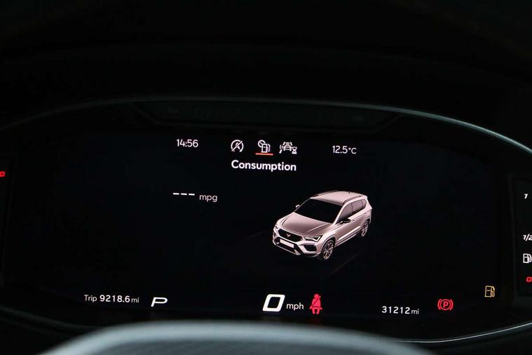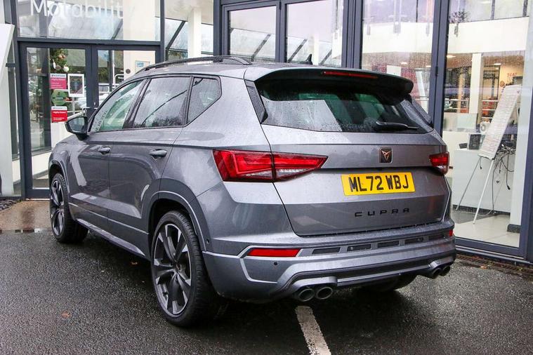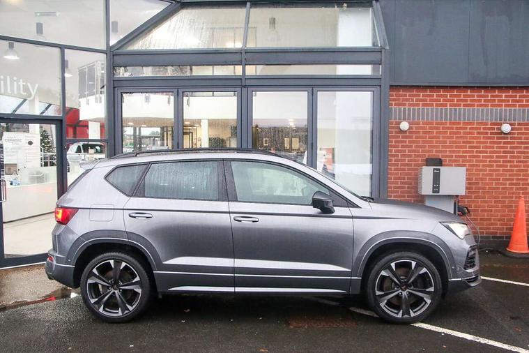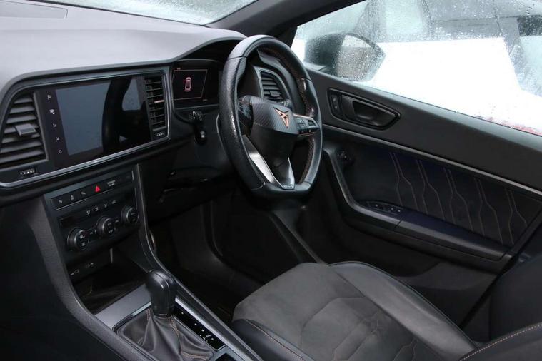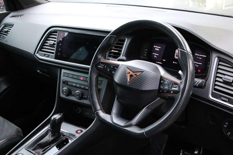 Cruise control system with speed limiter, CUPRA drive profile -Normal, Sport, CUPRA and Individual modes, steering/throttle response, gearshift mode, sound actuator and dynamic chassis control, Digital cockpit, E-call, Front and rear view camera, Outside temperature gauge, Progressive power assisted steering, Self parking functionality (includes front and rear parking sensors), Top view camera, Trip computer, Wireless full link smartphone integration, Wireless phone charger, CUPRA sport suspension, Beats audio system, Steering wheel mounted audio/phone controls, Body colour bumpers with dark aluminium diffusor, Body coloured wheel arch surrounds, Dark tinted rear windows, Daytime running lights, Door mirrors with welcome CUPRA light silhouette, Dynamic headlight range control with self adjusting whilst driving, Electric adjustable/heated/folding door mirrors, Front and rear electric windows, Front grille frame in chrome, Full LED headlamps with lens and LED front fog lamps with cornering function, Gloss black door mirrors, Gloss black roof rails, Gloss black side mouldings, Gloss black side window trim, Illuminated aluminium front door sill, LED rear tail lights with dynamic indicators, Rear fog lights, Rear side wing doors, Rear spoiler, Rear wash/wipe, Specific CUPRA design front bumper, Third brake light, Visible twin black exhaust pipes in both sides with dark aluminium diffuser, 12V socket in front, 3 seat bench in 2nd row, 60/40 split folding rear seat, Aluminium pedals, Bucket sport seats in dinamica upholstery, Cupra steering wheel emblem, Document holder under left front seat, Dual zone climate control, Front and rear head restraints, Front centre armrest, Front seat back storage pockets, Heated steering wheel, Height adjustable driver and passenger seat with lumbar adjustment, ISOFIX points in outer rear seats with top tether anchorage points, Leather steering wheel and gear knob, Multicoloured ambient lighting with LED interior illumination, Pedal cluster, Rear armrest and easy back seat release mechanism from boot, Single front passenger seat, Steering wheel mounted gearshift paddles, Storage compartment in roof console for sunglass, Storage compartment under driver's seat, Convenience pack - Ateca, Interior lighting pack - Ateca, Navigation system plus pack with DAB - Ateca, 3x3 point rear seatbelts, ABS, Traction control system (TCS), Electronic stability control (ESC) and Electronic differential lock system (XDS), Airbags - Driver and front passenger airbag with deactivation, front side, two curtain and driver's knee airbags, Black brake callipers with CUPRA logo, Electric parking brake with auto hold function, Front and rear seatbelt reminder, Front assist with autonomous emergency braking, Hill hold control, Manual rear child locks, Single tone horn, Tiredness recognition system, Tyre pressure monitoring system, Alarm, Keyless entry, Locking wheel bolts,